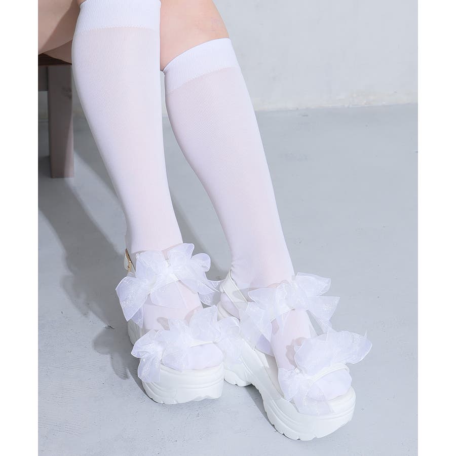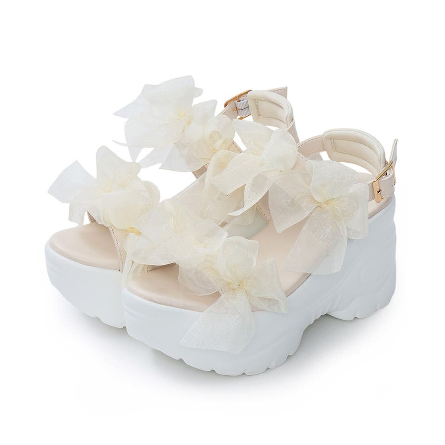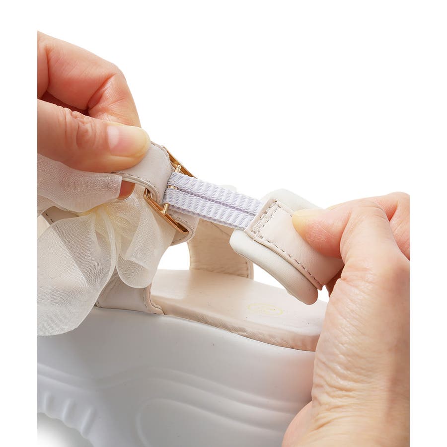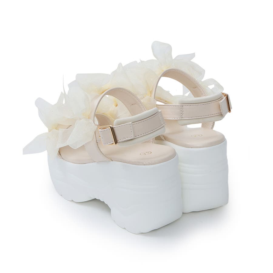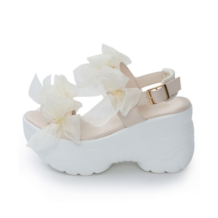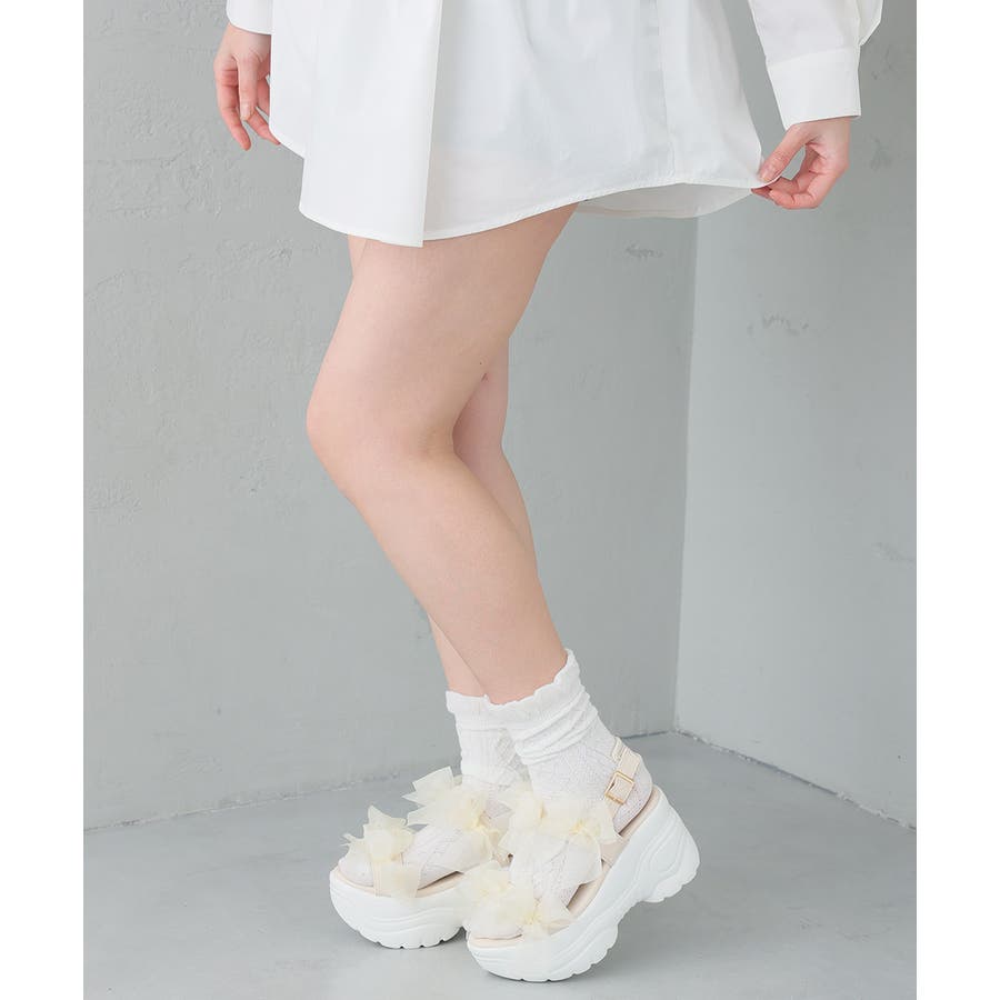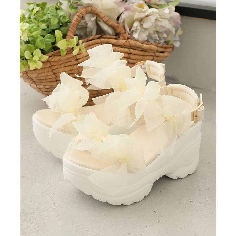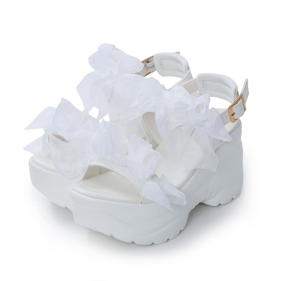 甘さと存在感を両立♪チュールリボンが愛らしい、厚底スポーツサンダル!!