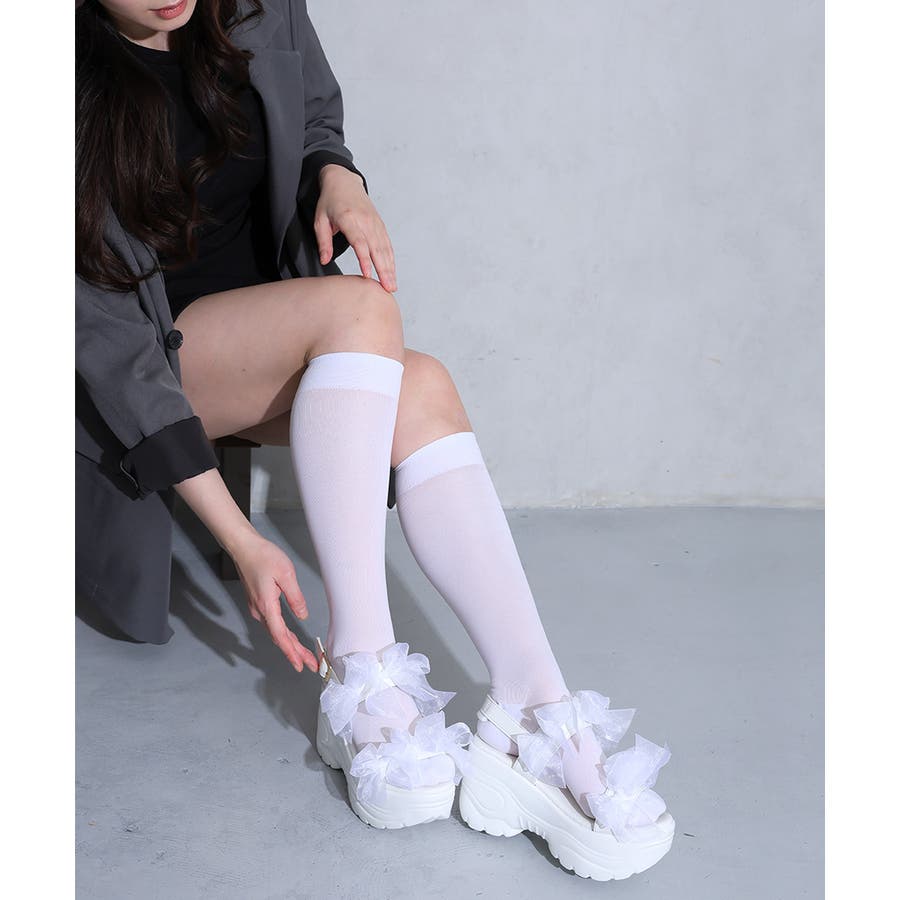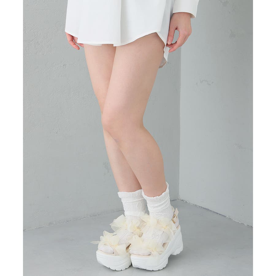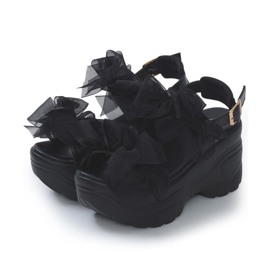 【26年春夏新作】軽量厚底 チュールリボン ダブルベルト
