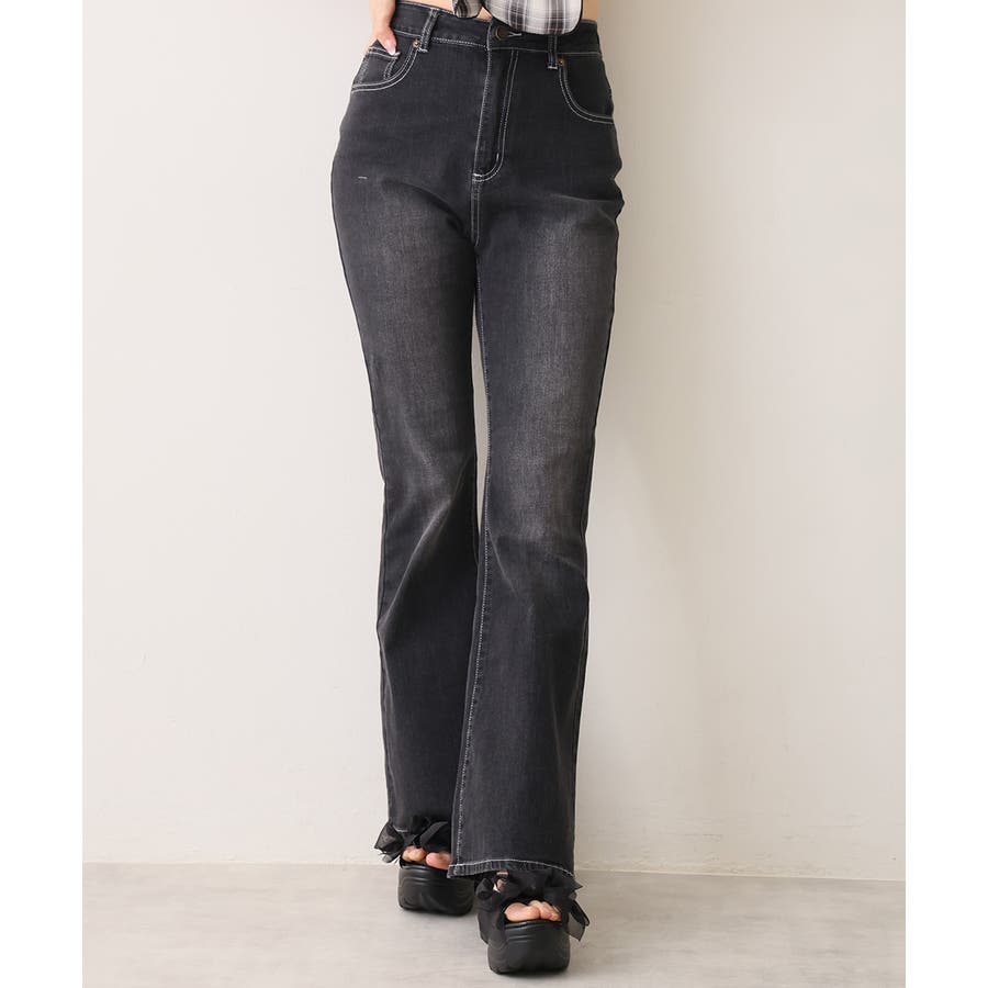 ガーリーなリボンと滑らかラインソールが映えてトレンド感たっぷりの足元に。