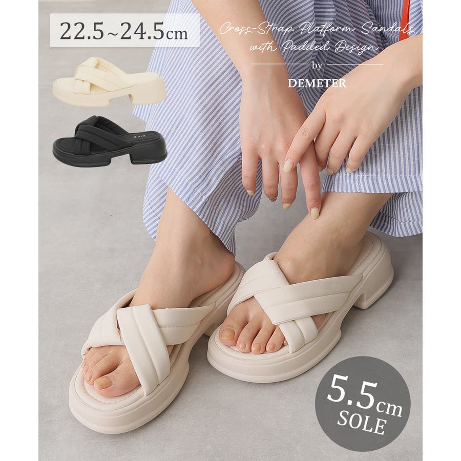 レディース/DMTR/DEMETER/デメテル/シューズ/靴/パンプス/スニーカー/ダッドスニーカー/ボリュームスニーカー/サンダル/ローファー/マニッシュ/ブーツ/ショートブーツ/ロングブーツ/ヒール/チャンキーヒール/太ヒール/厚底/厚底ソール/ボリュームソール/プラットフォーム/バルキー/美脚/脚長/人気/プチプラ/韓国/韓国ファッション/おすすめ/カジュアル/キレイめ/おしゃれ/オシャレ/お洒落/秋/冬/秋冬/秋物/冬物/春/夏/春夏/春物/夏物/新作/AW/SS/セクシー/大人/ストリート/シンプル/クロスデザイン/パテッド/パテッドサンダル/リゾート/リゾートコーデ/デイリー/安定感/厚底サンダル/軽量/軽い/歩きやすい/履きやすい/黒/BLACK/ブラック/アイボリー/IVORY