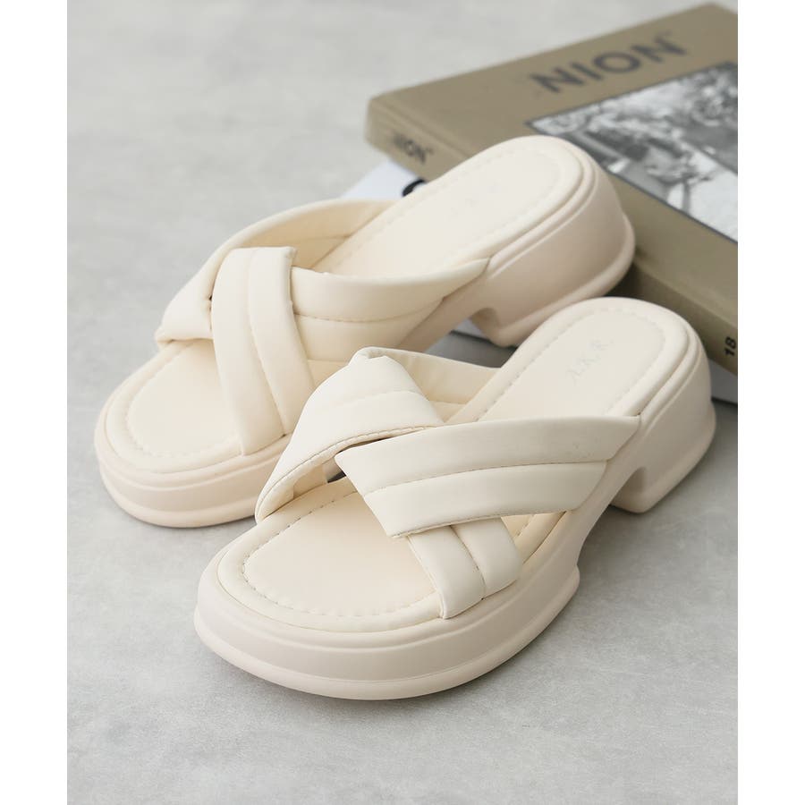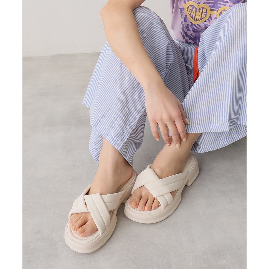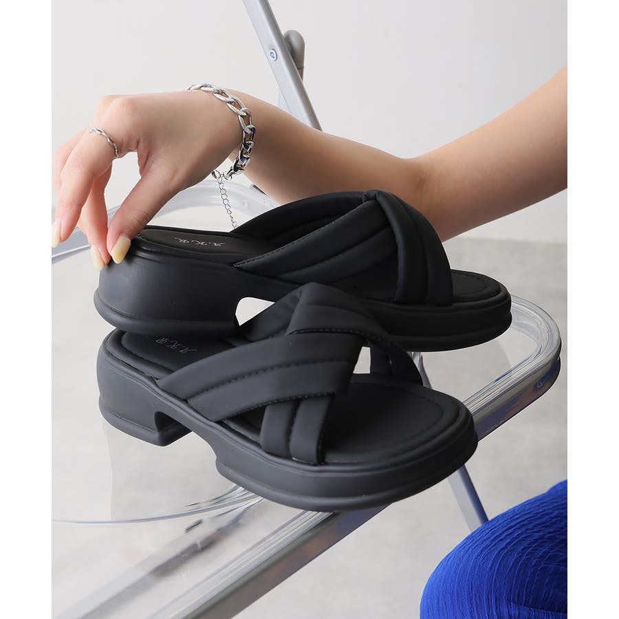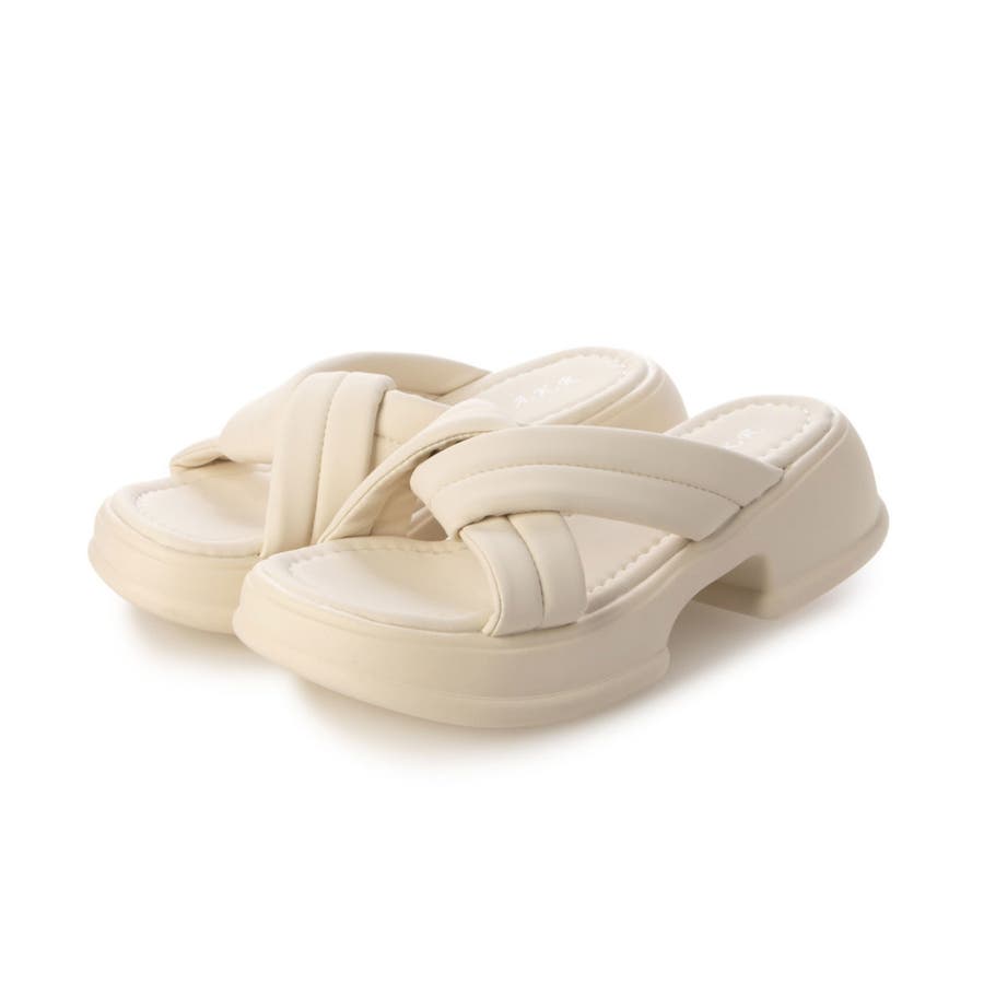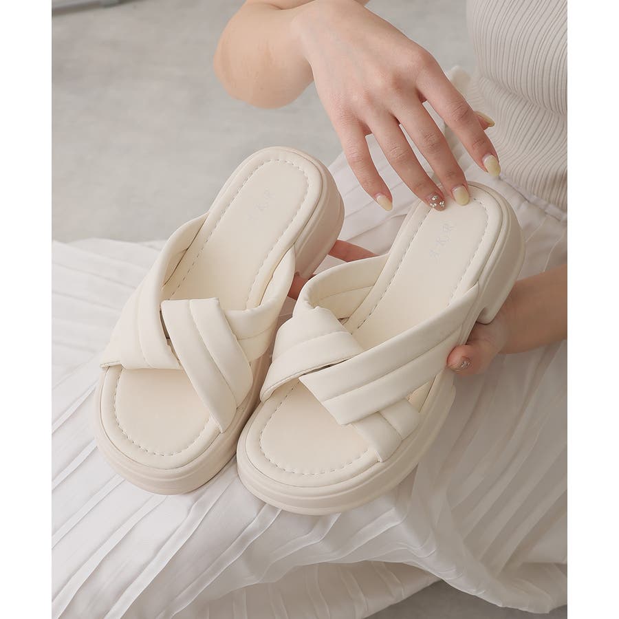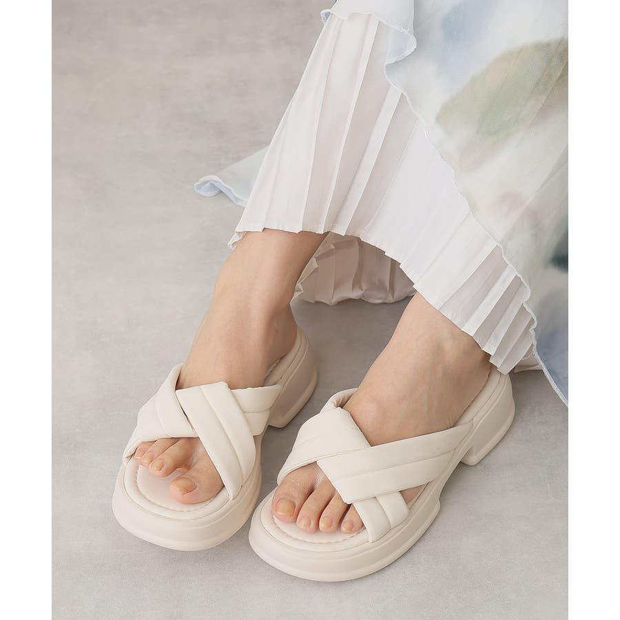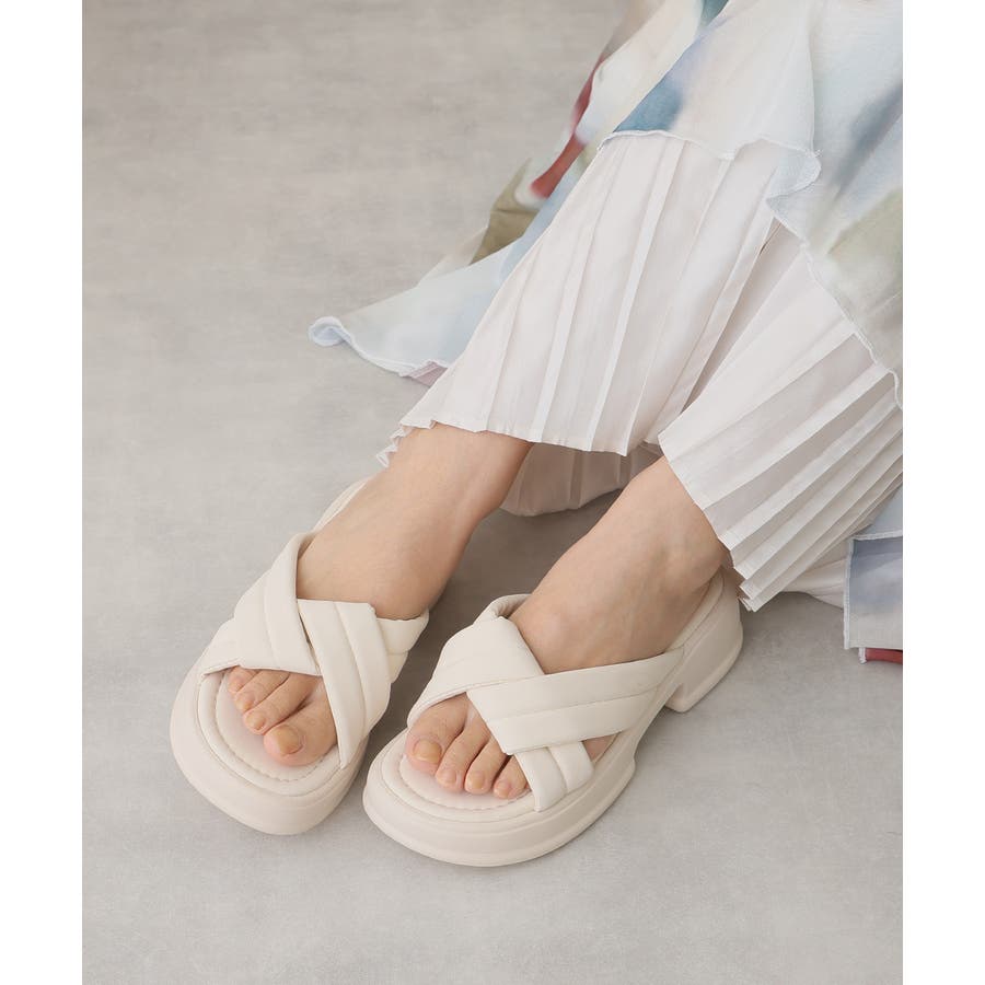 【25年春夏新作】軽量厚底 クロスデザイン パテッドサンダル