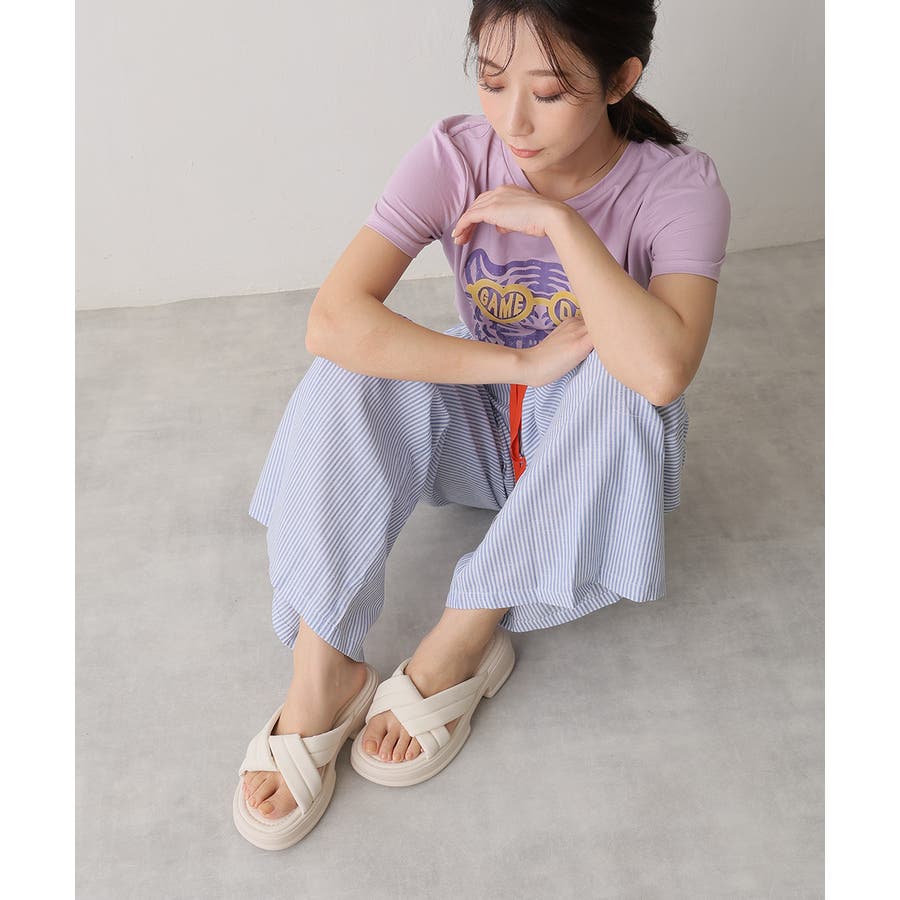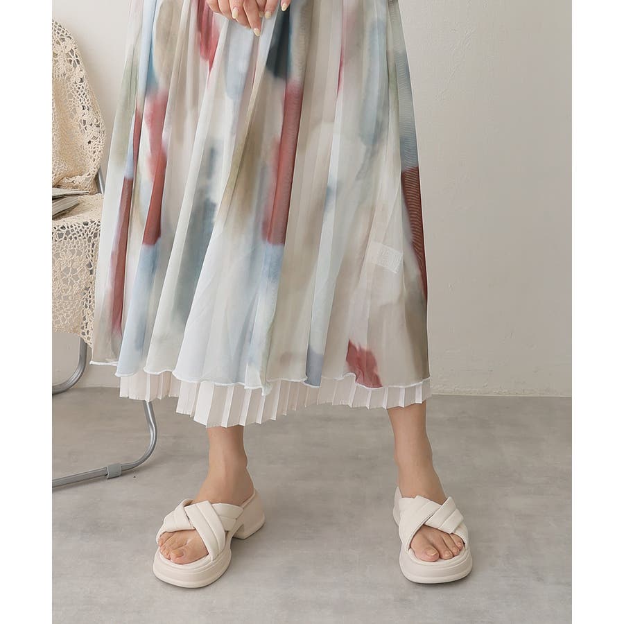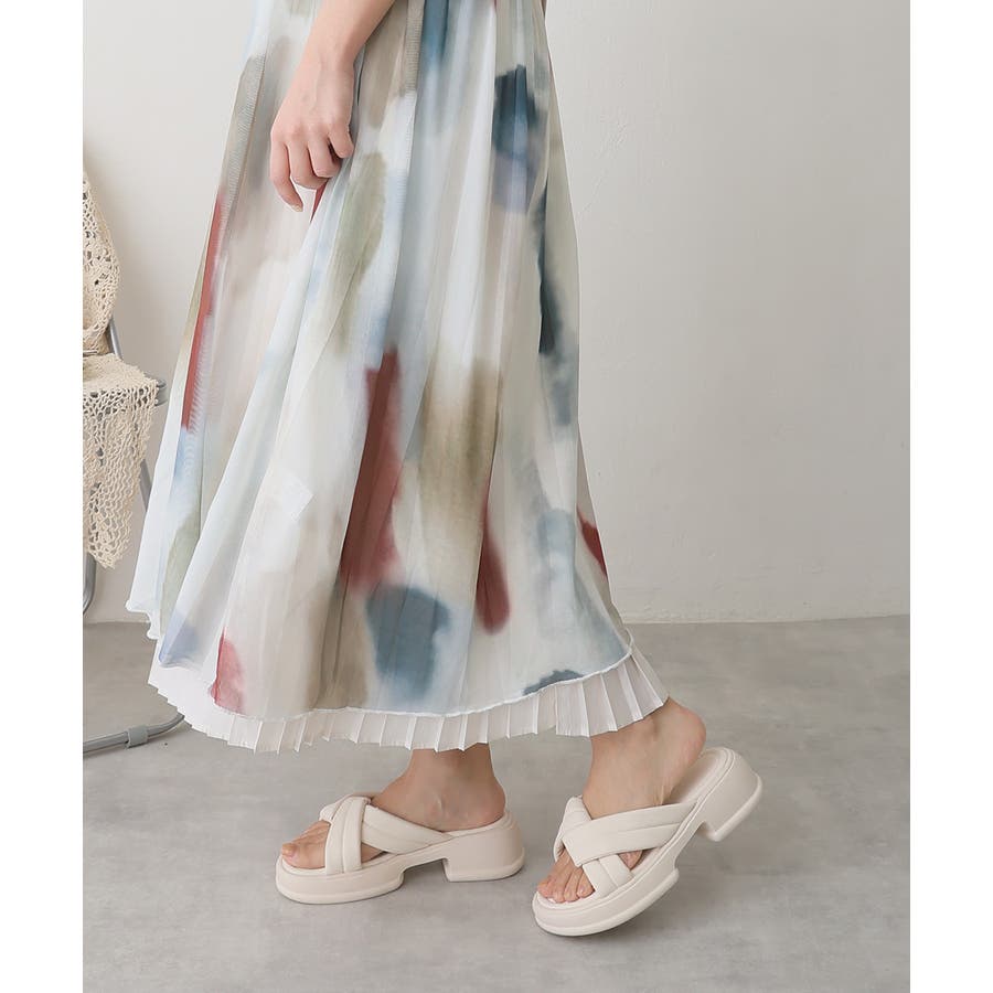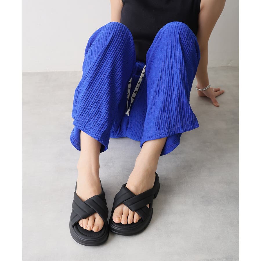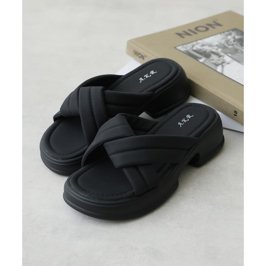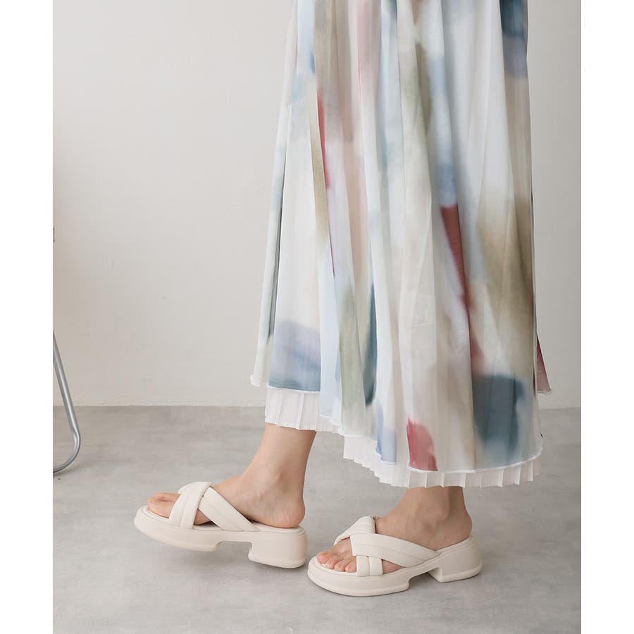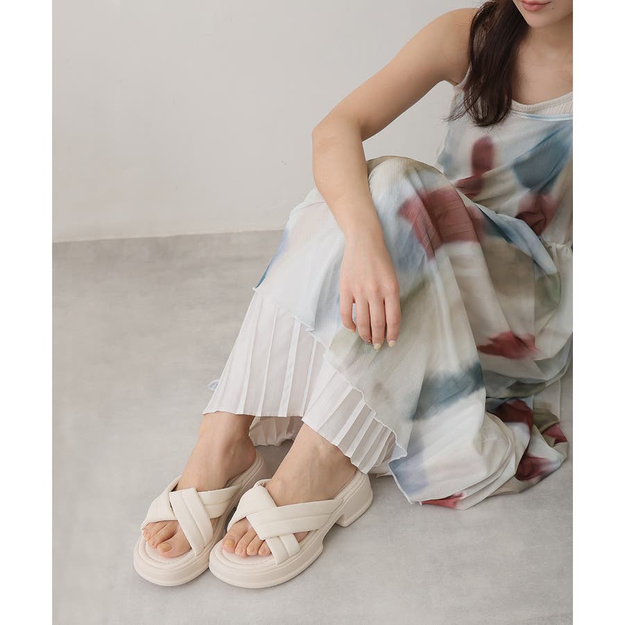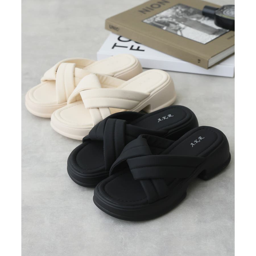 【25年春夏新作】軽量厚底 クロスデザイン パテッドサンダル