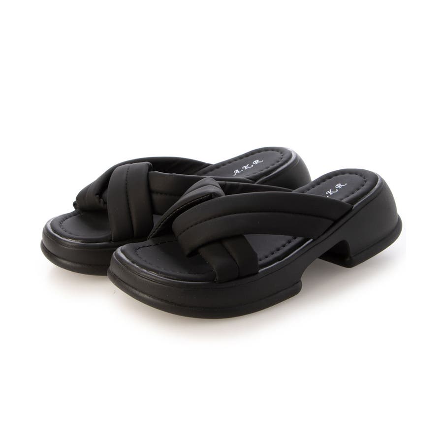 【軽量厚底 クロスデザイン パテッドサンダル】