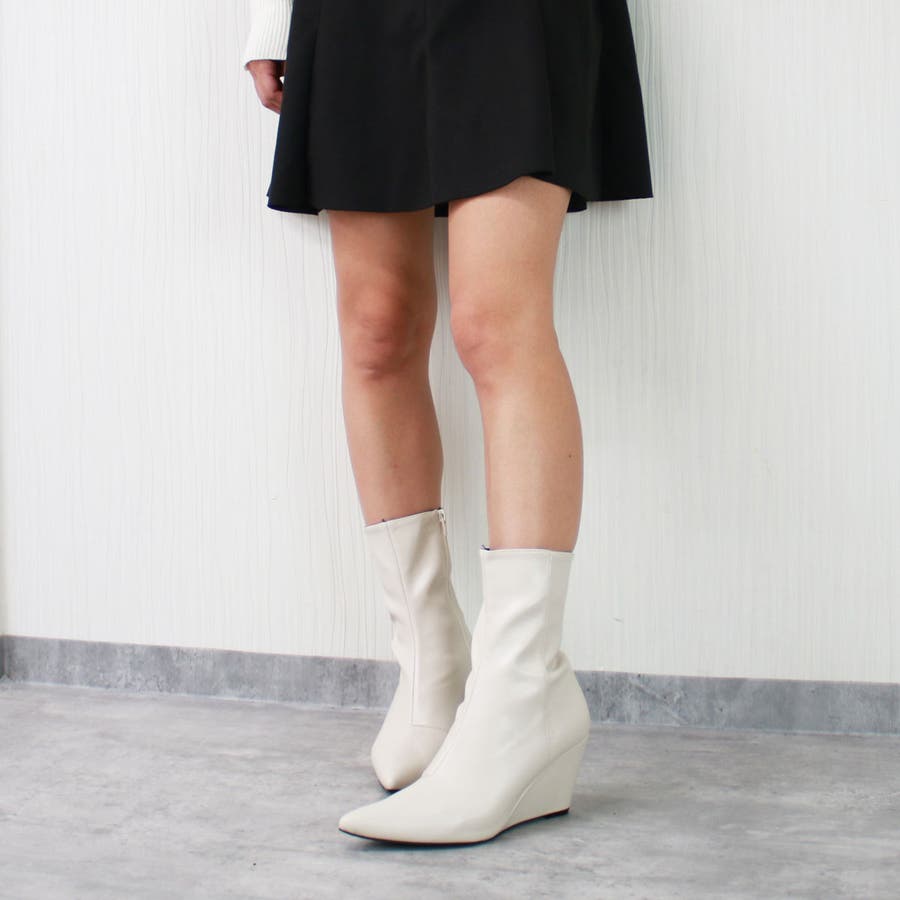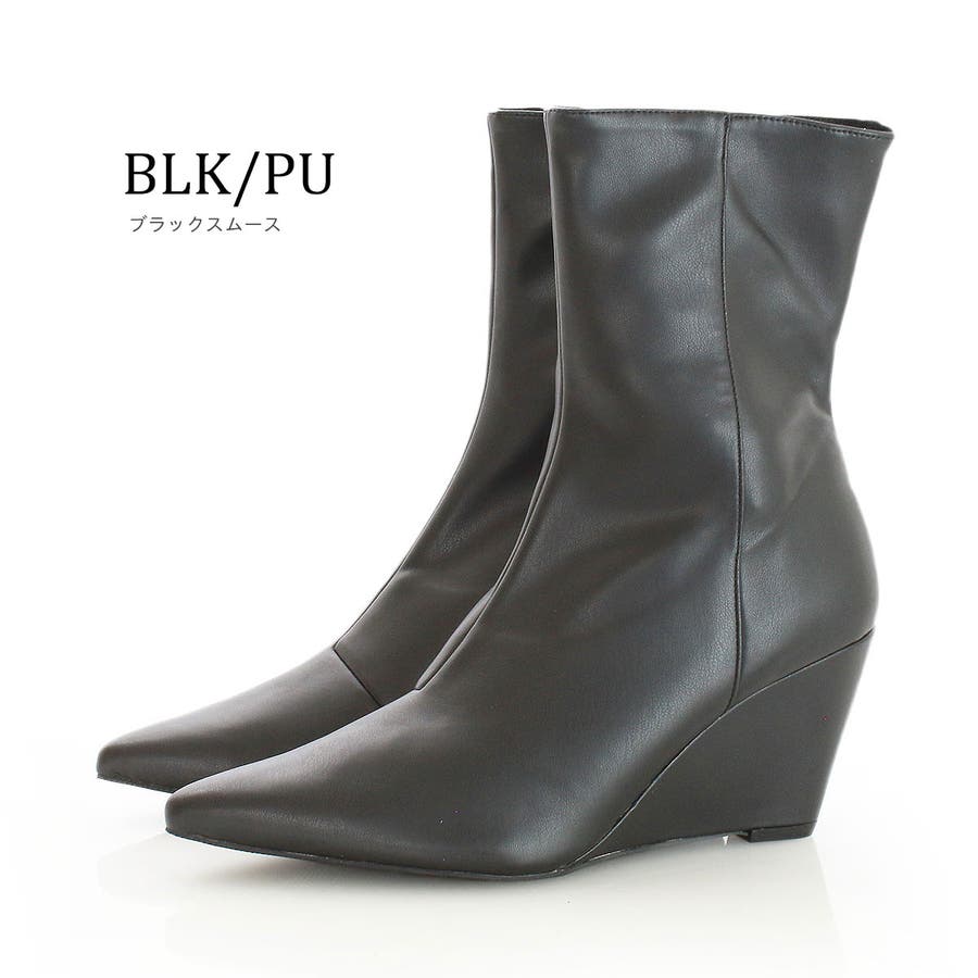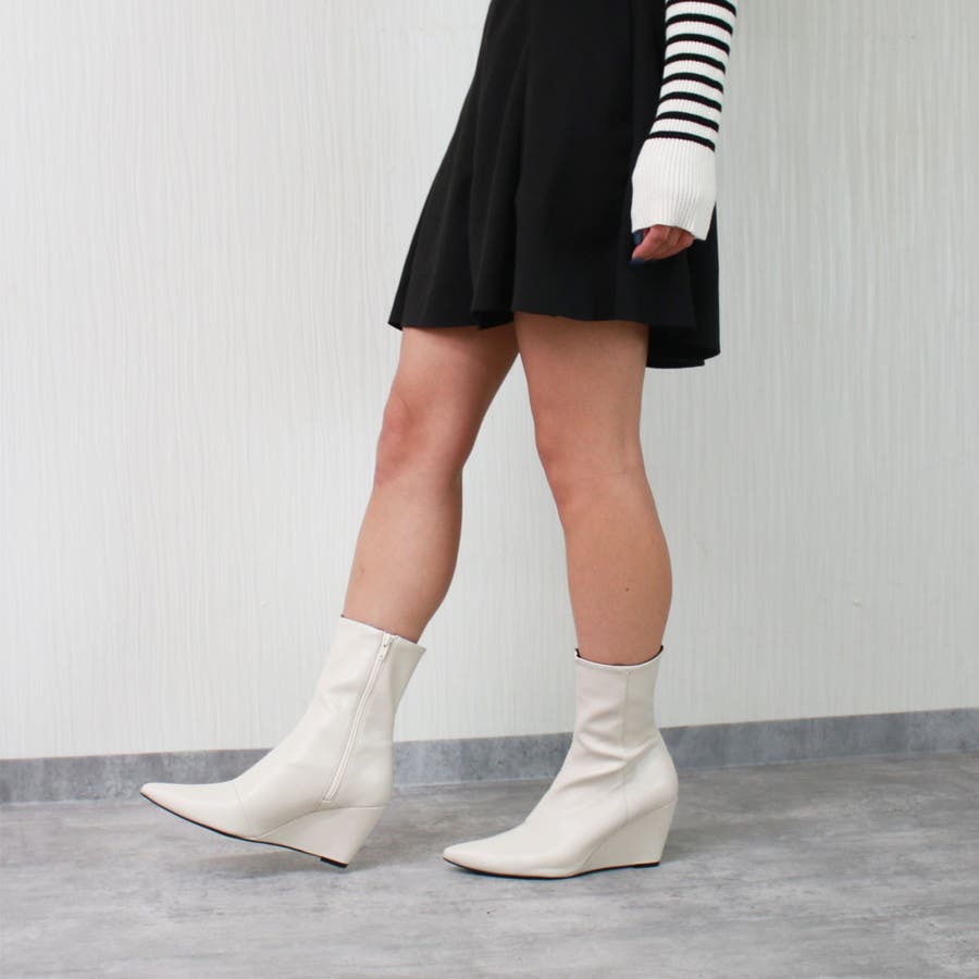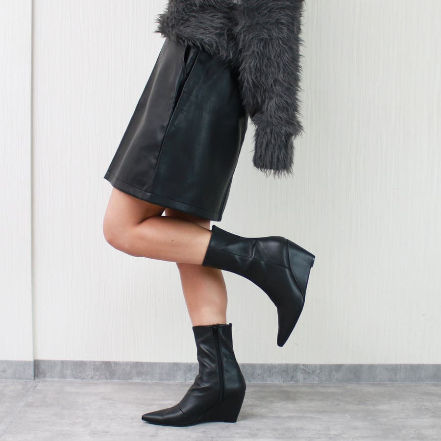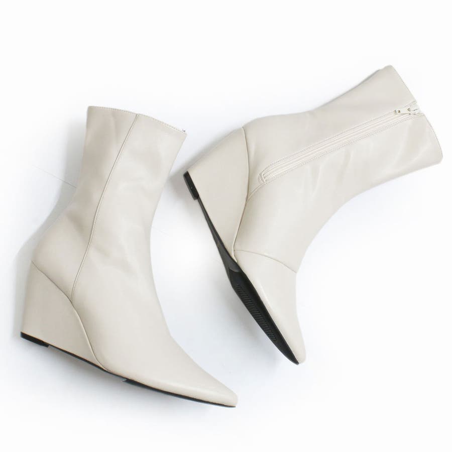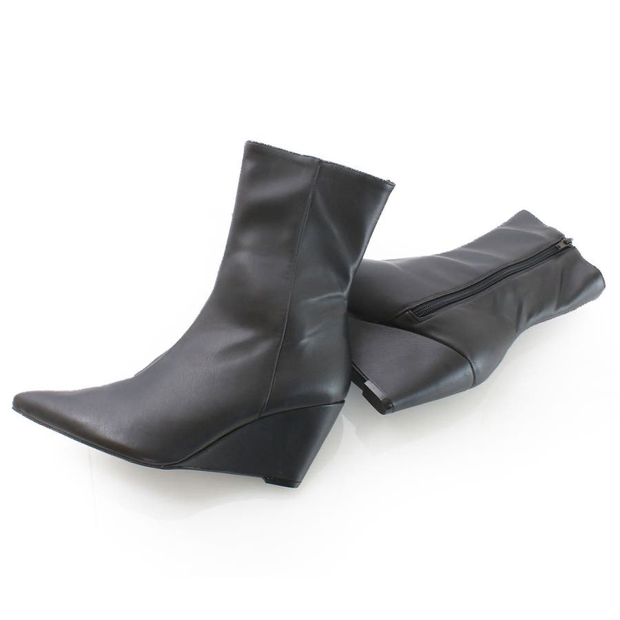 7.5cm☆ポインテッドトゥ ウェッジソール ショートブーツ