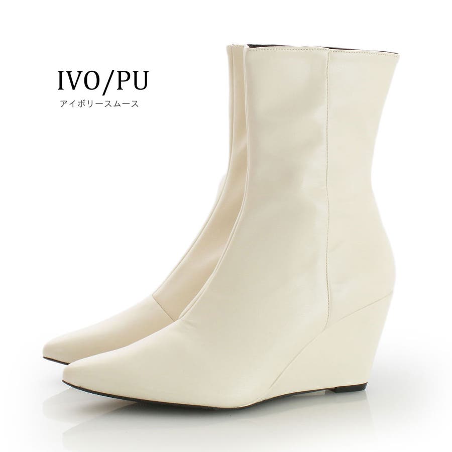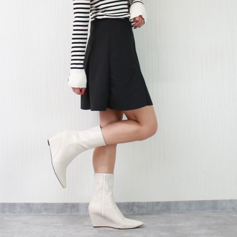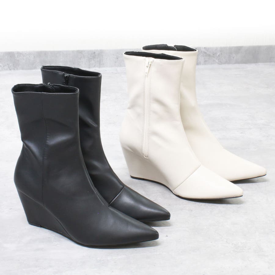 【7.5cm☆ポインテッドトゥ ウェッジソール ショートブーツ】