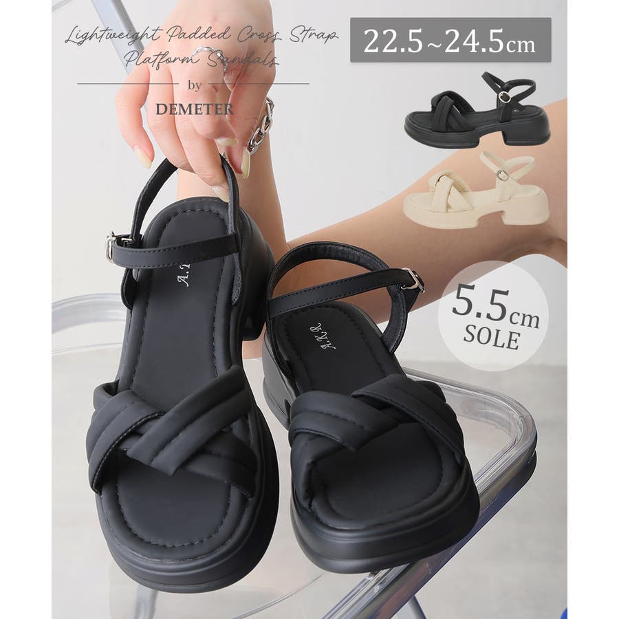レディース/DMTR/DEMETER/デメテル/シューズ/靴/パンプス/スニーカー/ダッドスニーカー/ボリュームスニーカー/サンダル/ローファー/マニッシュ/ブーツ/ショートブーツ/ロングブーツ/ヒール/チャンキーヒール/太ヒール/厚底/厚底ソール/ボリュームソール/プラットフォーム/バルキー/美脚/脚長/人気/プチプラ/韓国/韓国ファッション/おすすめ/カジュアル/キレイめ/おしゃれ/オシャレ/お洒落/秋/冬/秋冬/秋物/冬物/春/夏/春夏/春物/夏物/新作/AW/SS/セクシー/大人/ストリート/シンプル/アンクルストラップ/ストラップサンダル/ストラップ/クロスデザイン/パテッド/パテッドサンダル/リゾート/リゾートコーデ/デイリー/安定感/カジュアル/厚底サンダル/軽量/軽い/歩きやすい/履きやすい/黒/BLACK/ブラック/アイボリー/IVORY