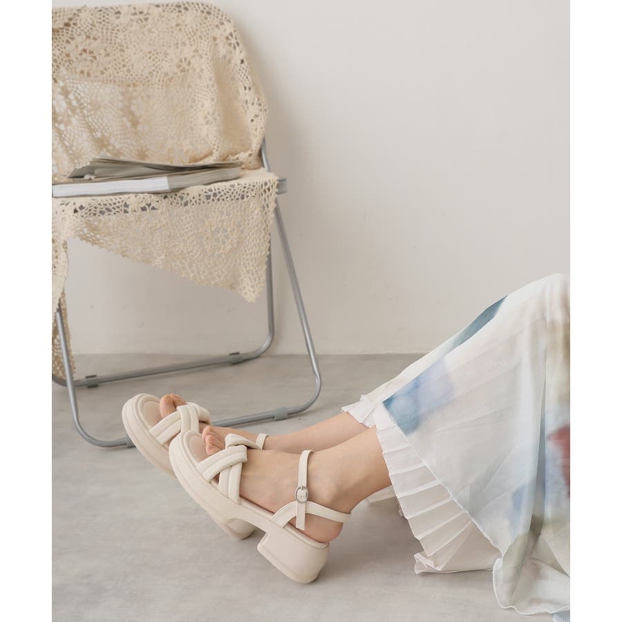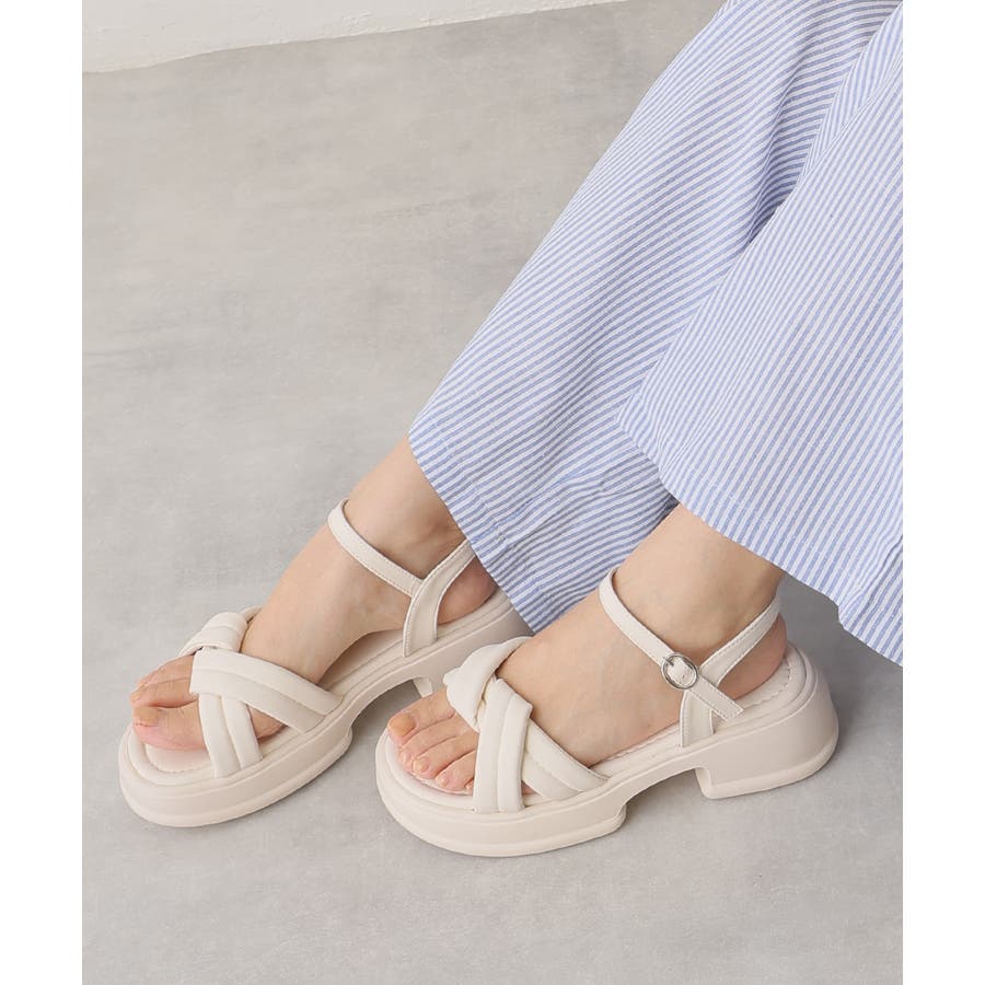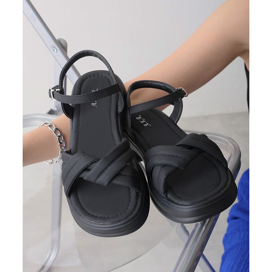 【軽量厚底 クロスデザイン アンクルストラップ パテッドサンダル】