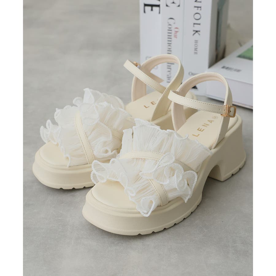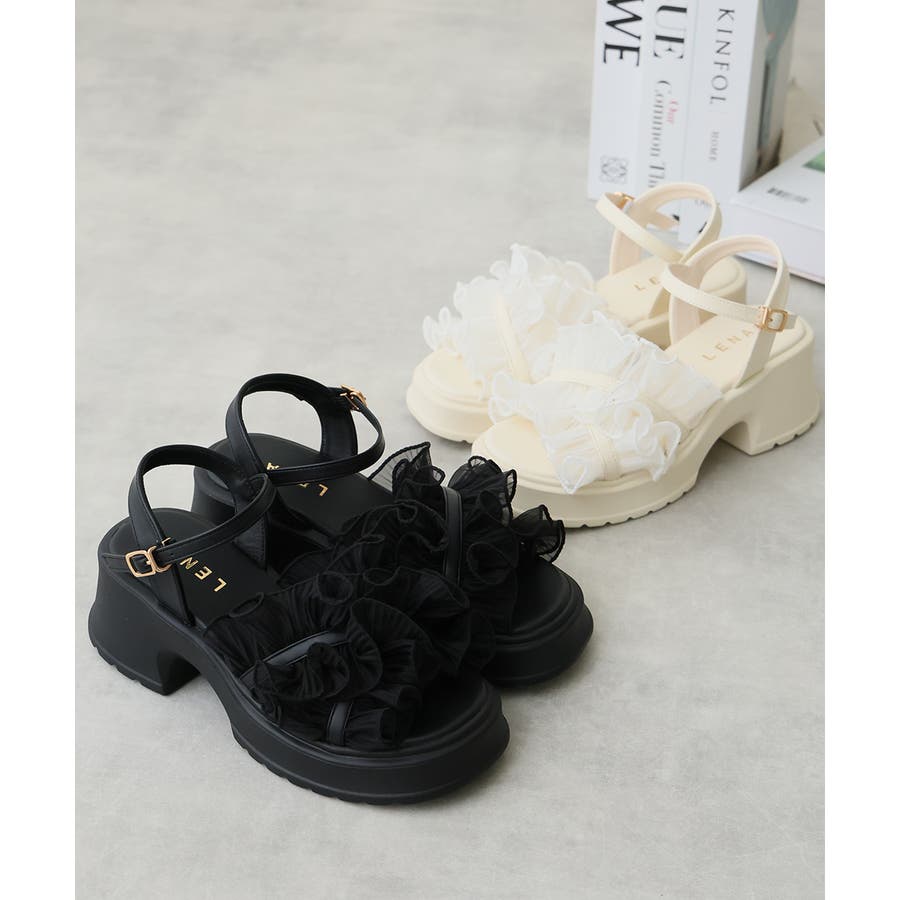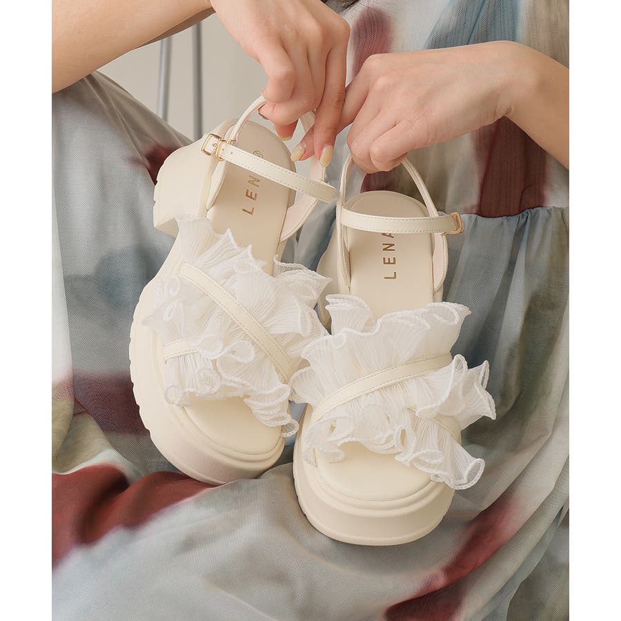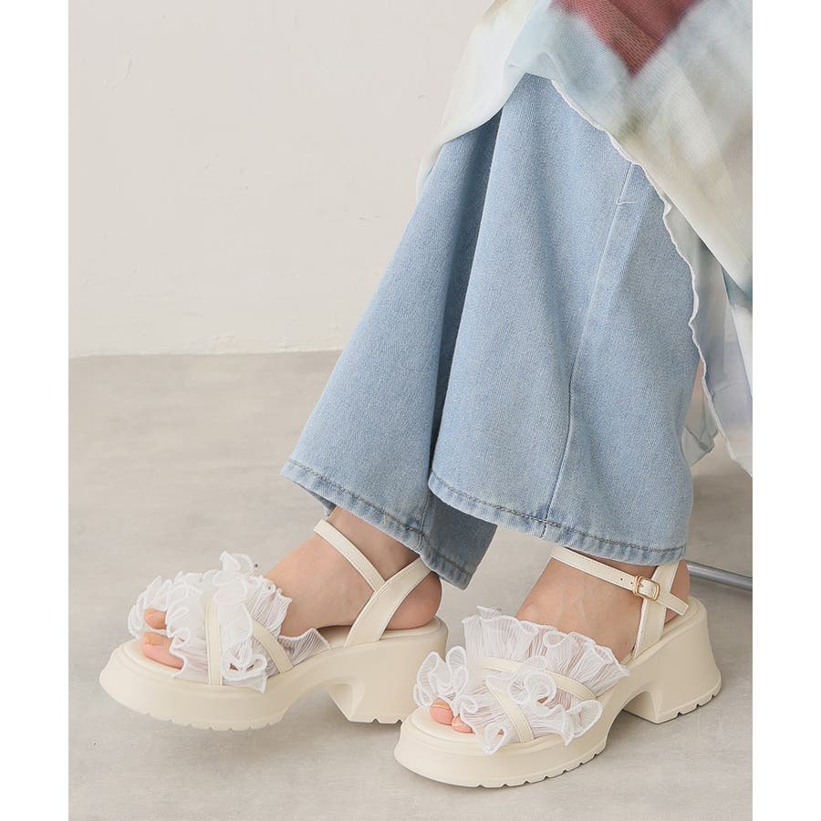 甘すぎない上品なフリルとさりげないボリューム感の厚底で、足元からおしゃれ度を格上げしてくれます♪