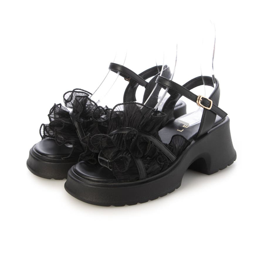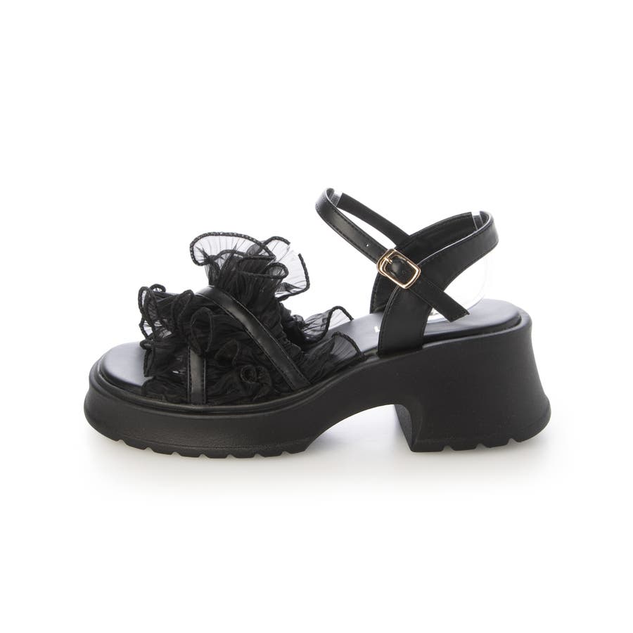 【25年春夏新作】厚底 プラットフォーム フリルデザイン ストラップサンダル