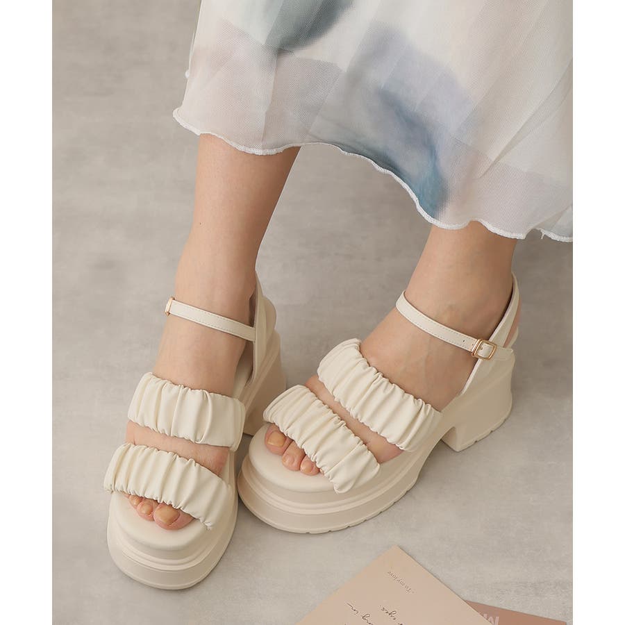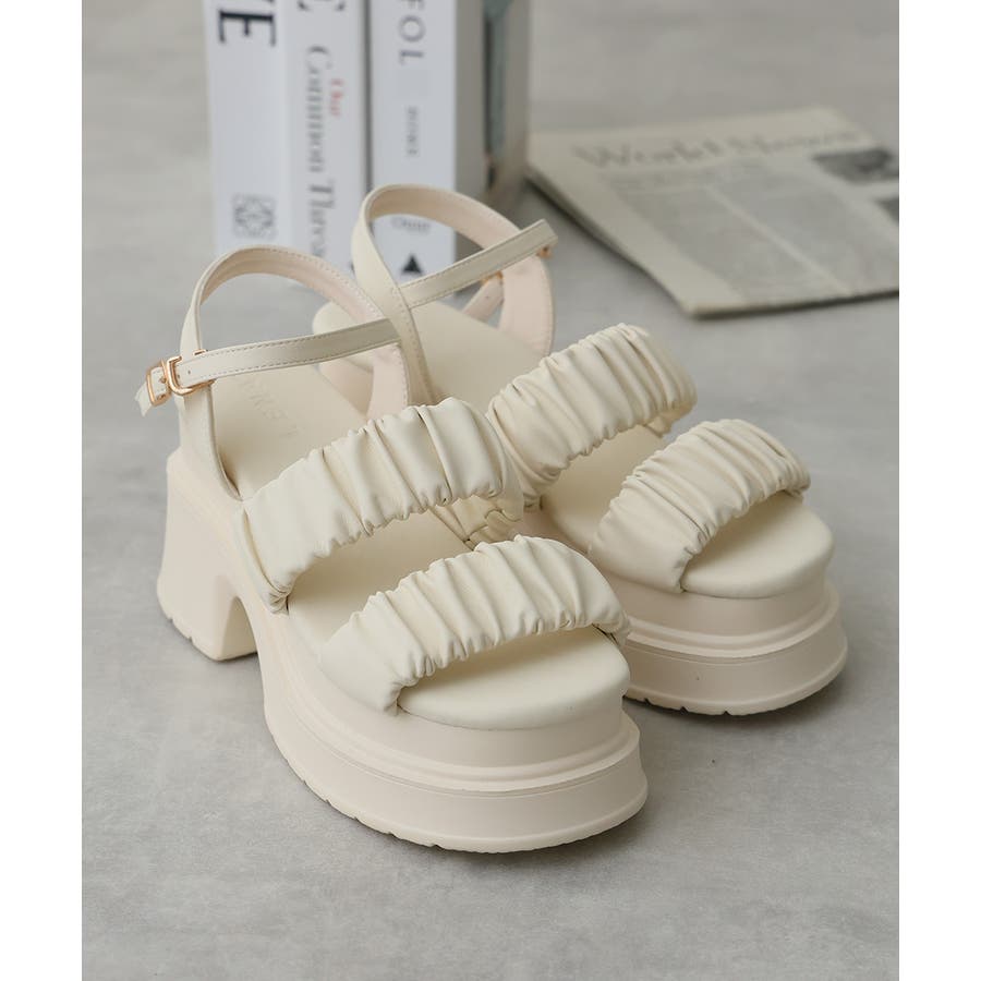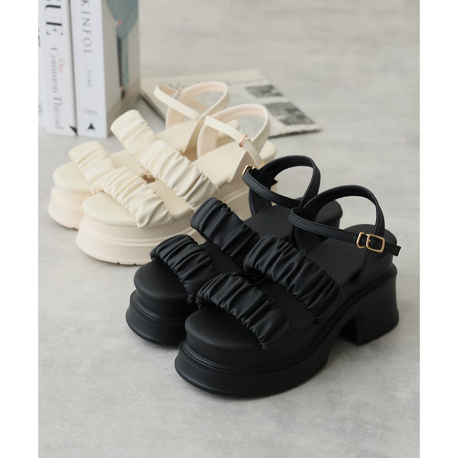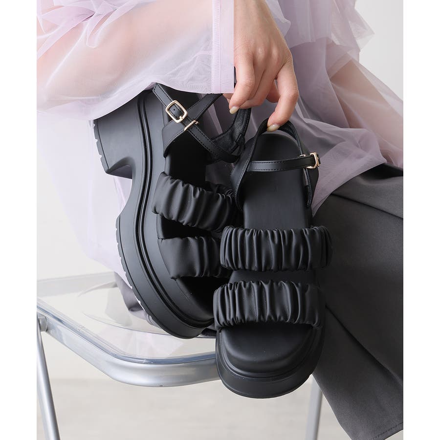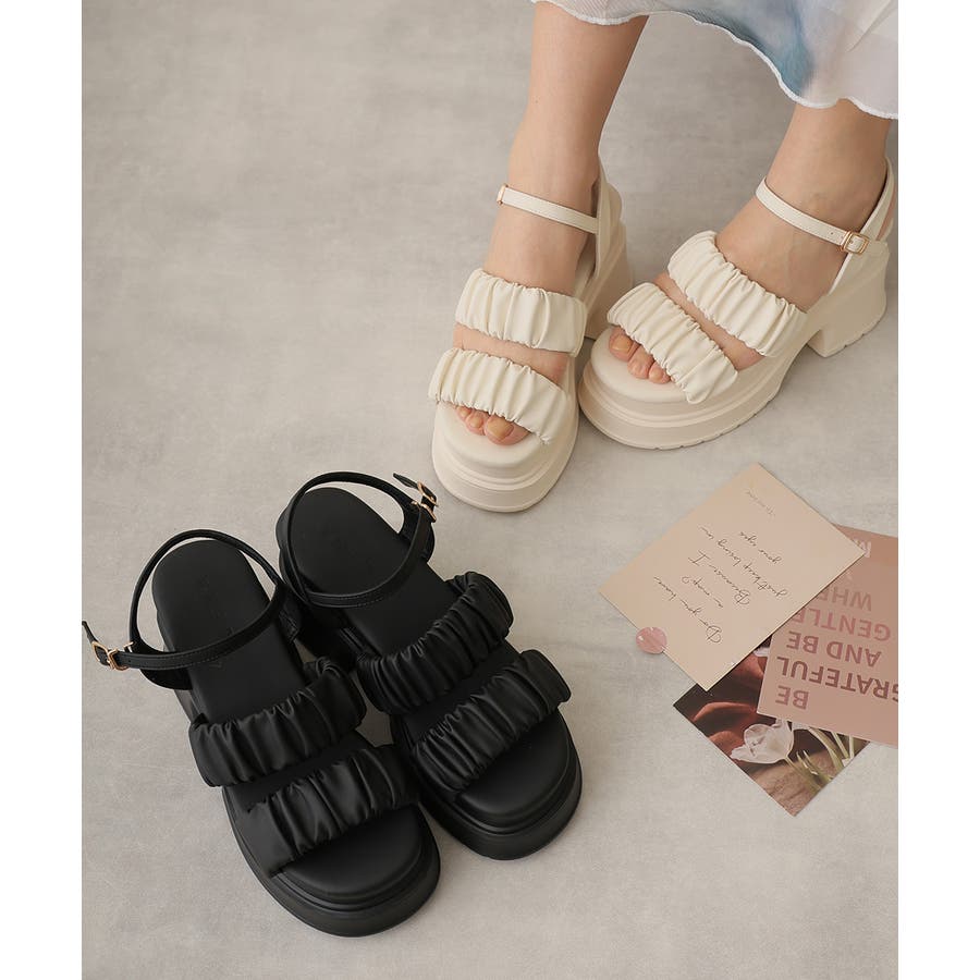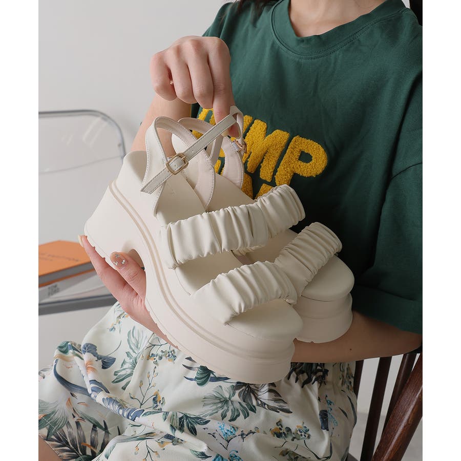 今トレンドのギャザー入りデザインで足元にアクセントを添える、主役級の厚底サンダル!!