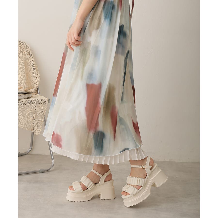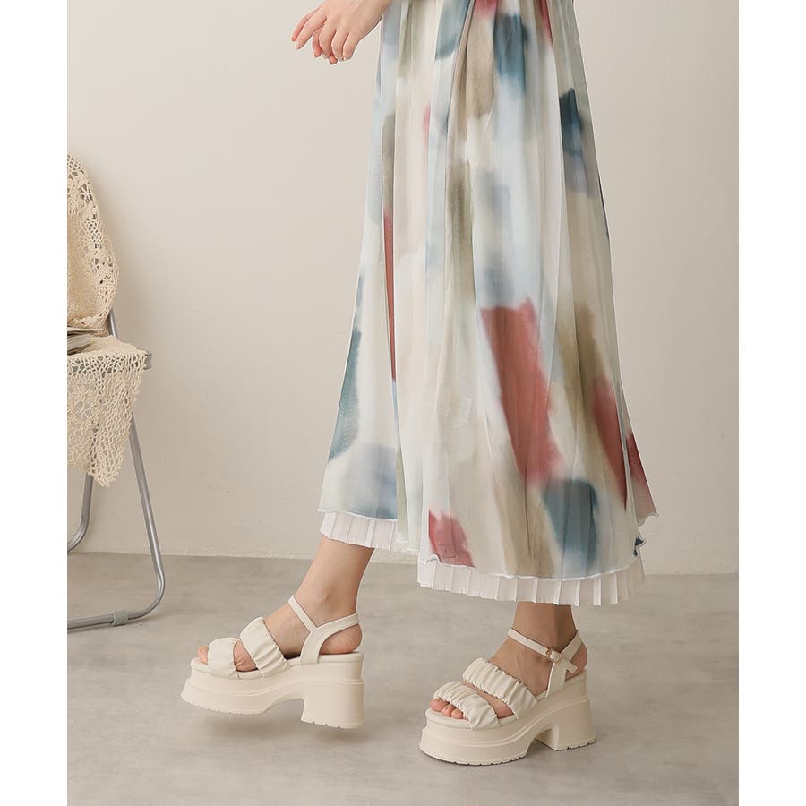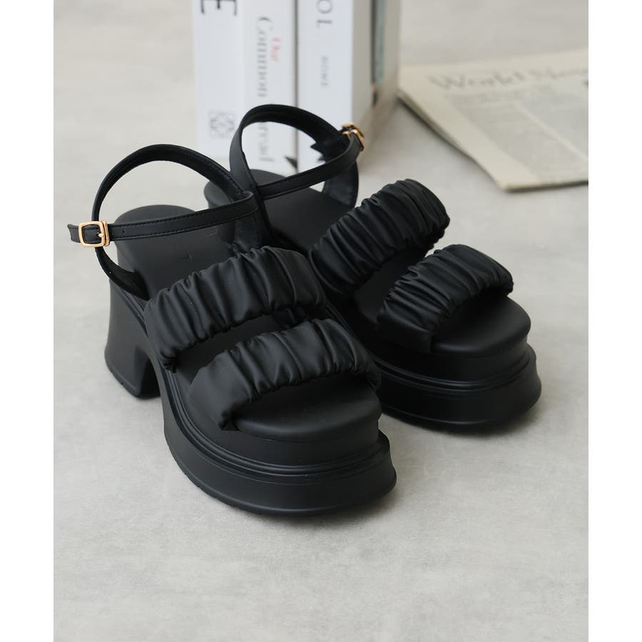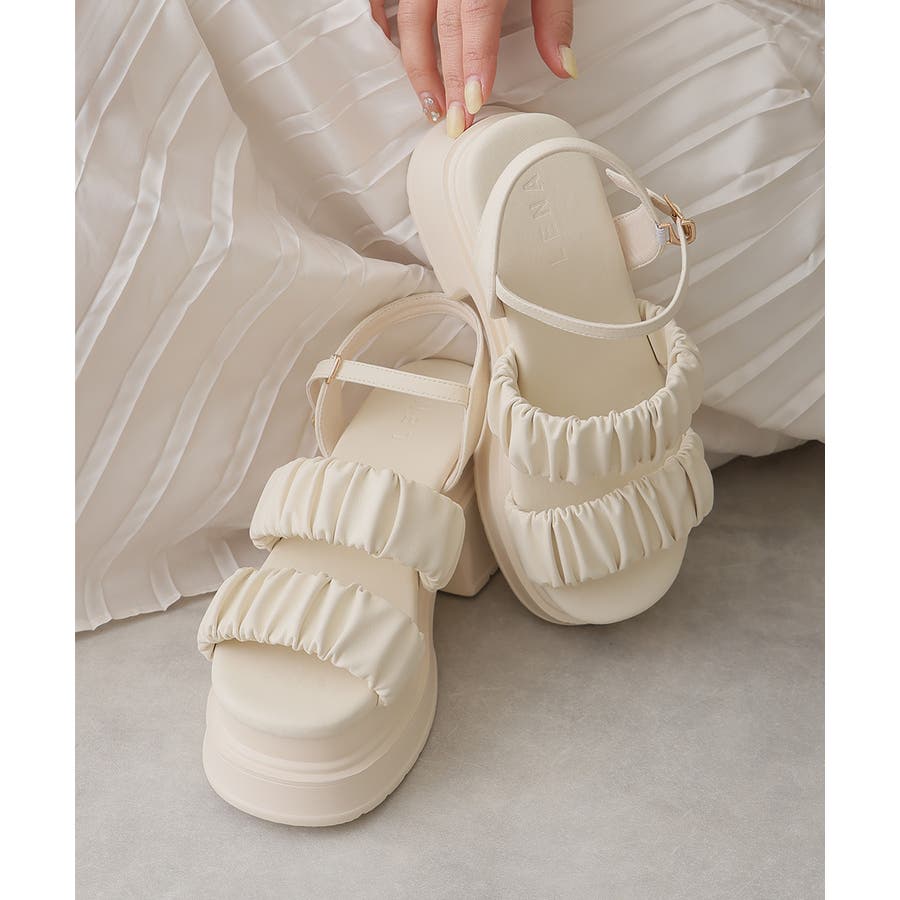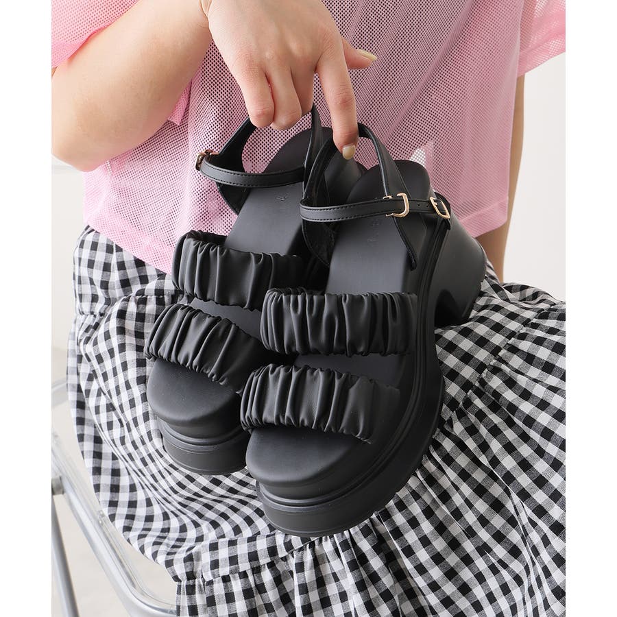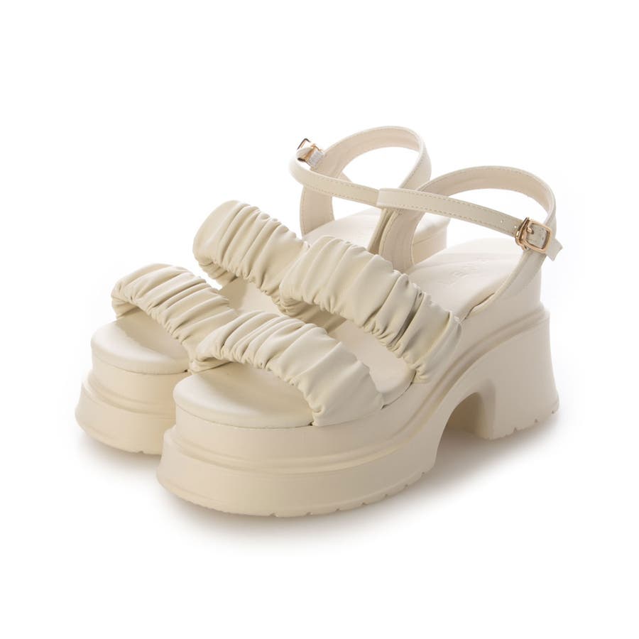 今トレンドのギャザー入りデザインで足元にアクセントを添える、主役級の厚底サンダル!!