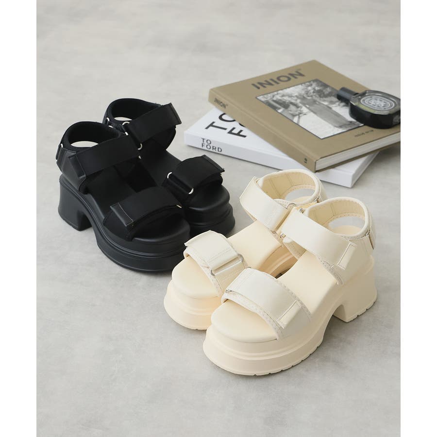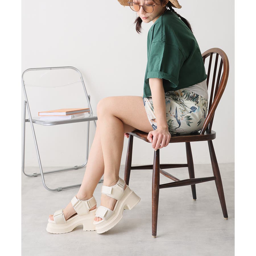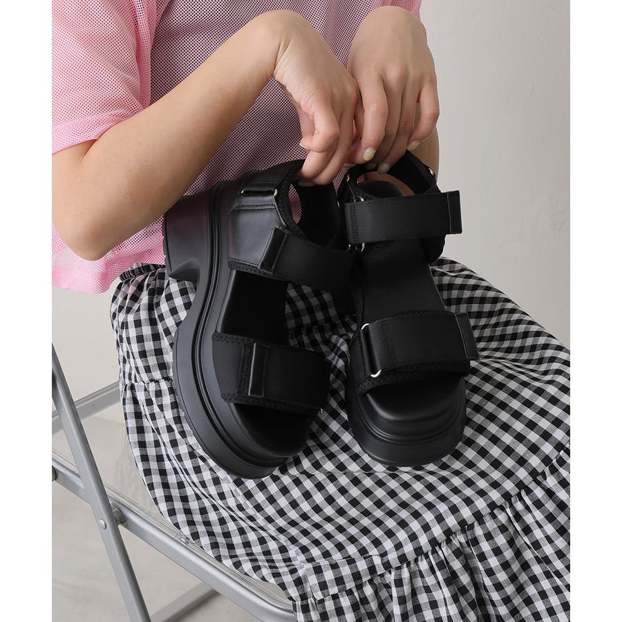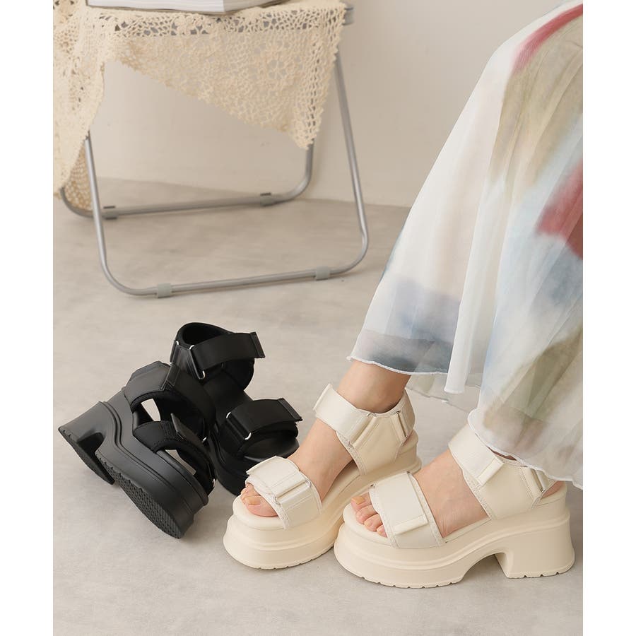 【25年春夏新作】厚底 プラットフォーム ベルクロ サンダル