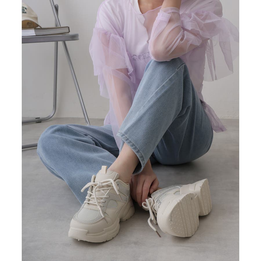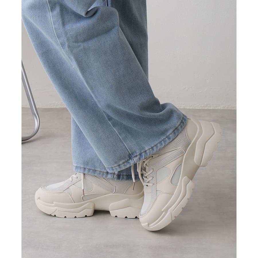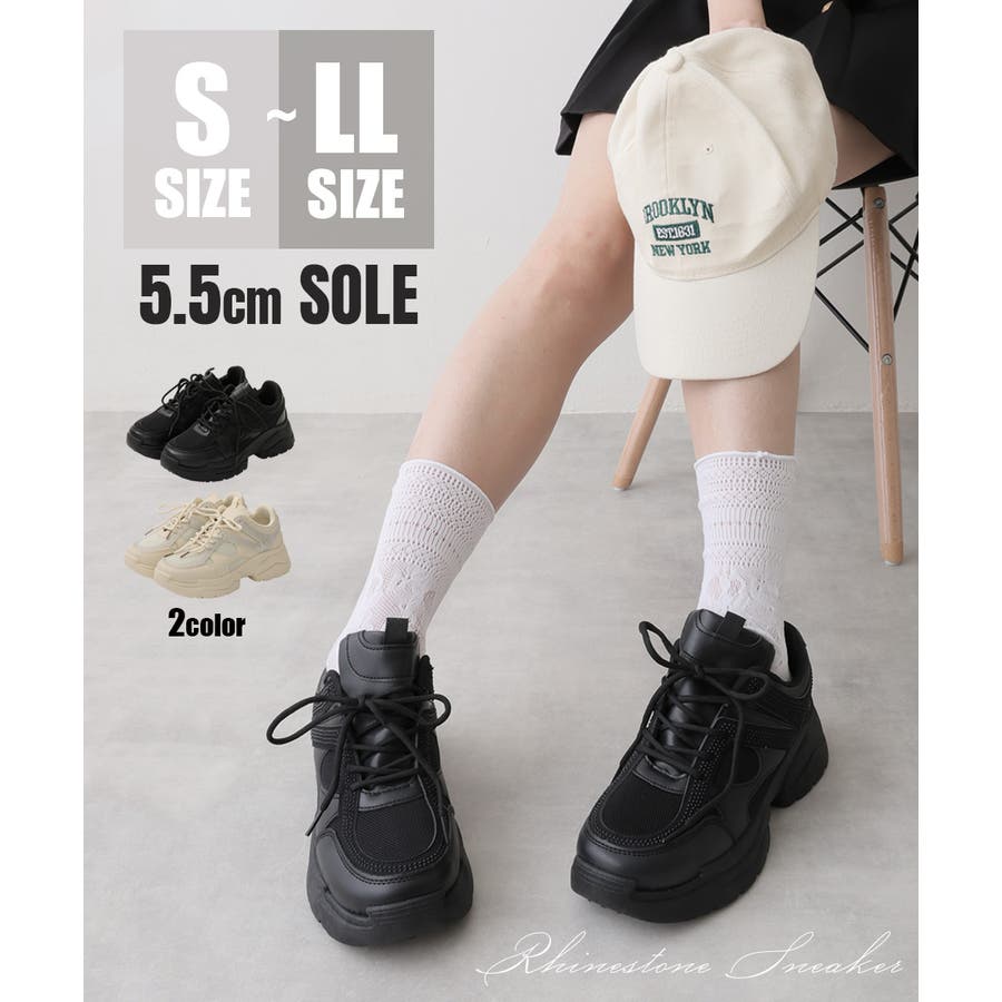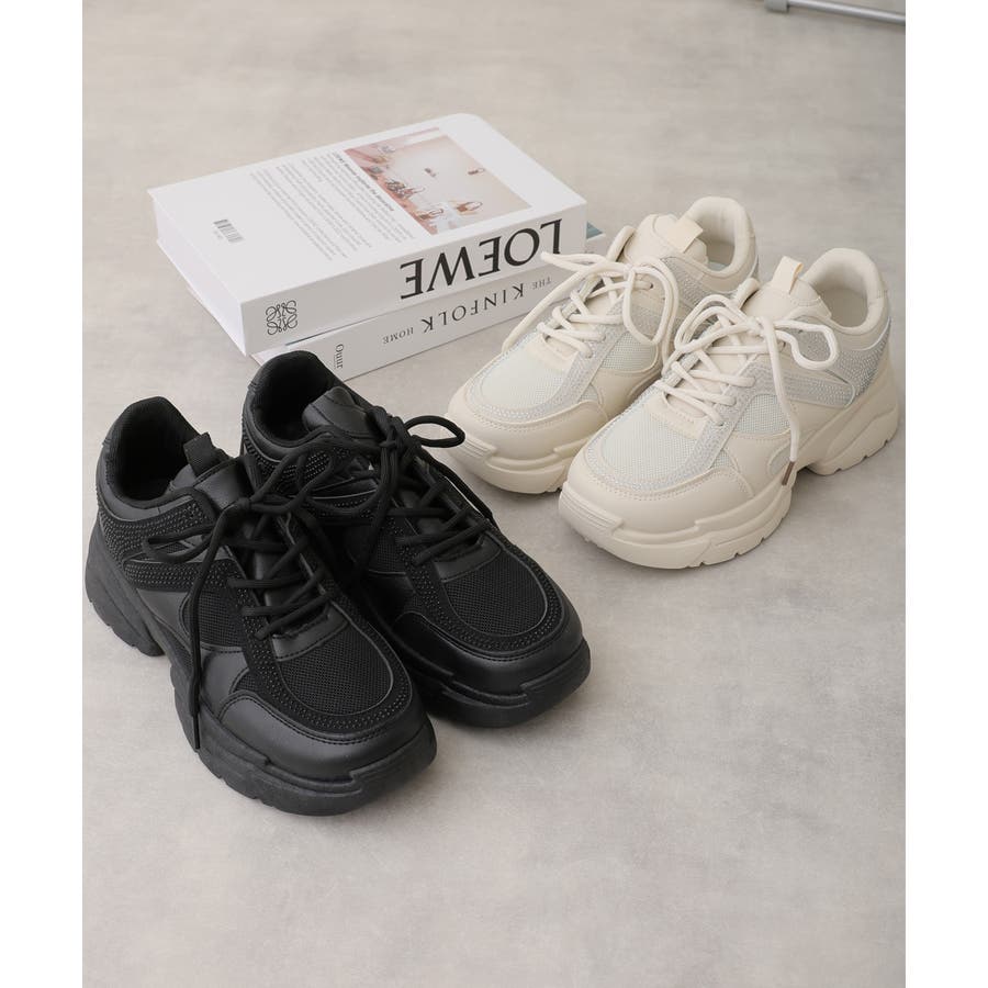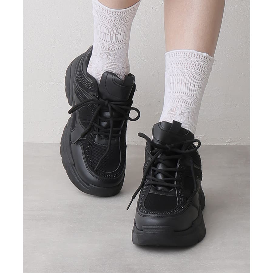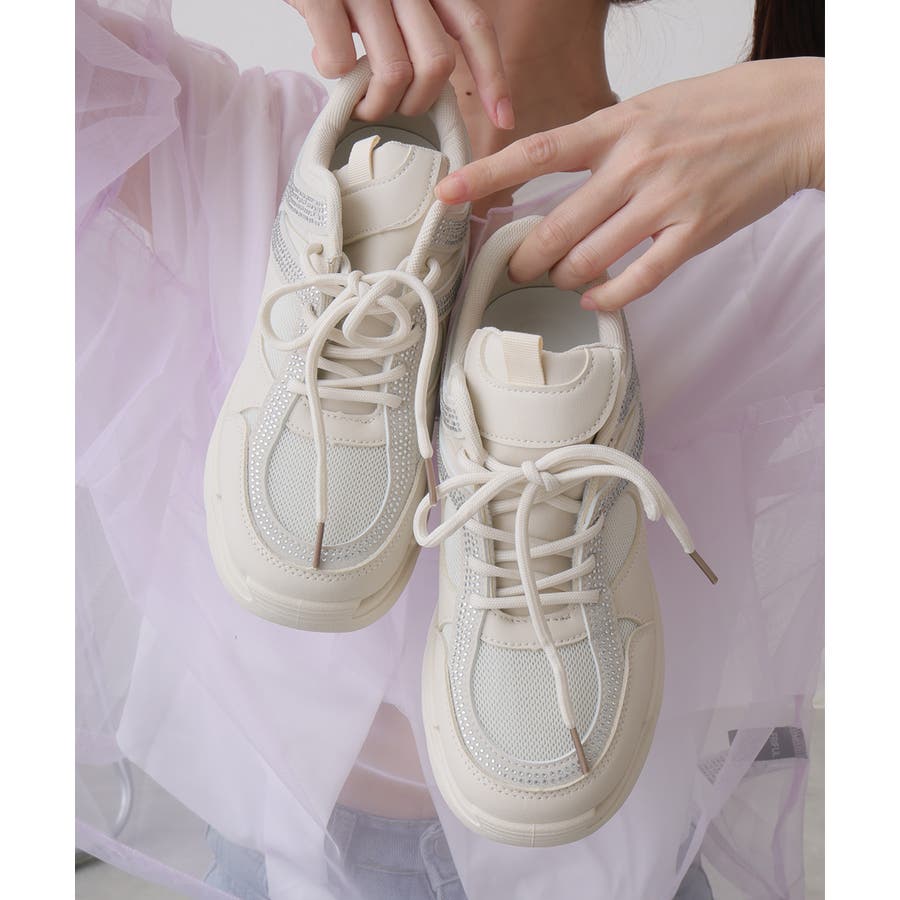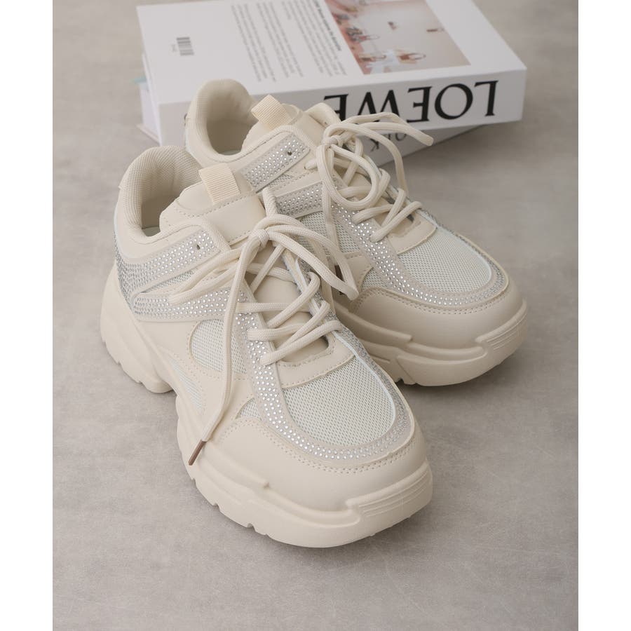 【25年春夏新作】厚底 ボリュームソール ラインストーン スニーカー