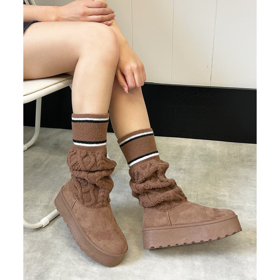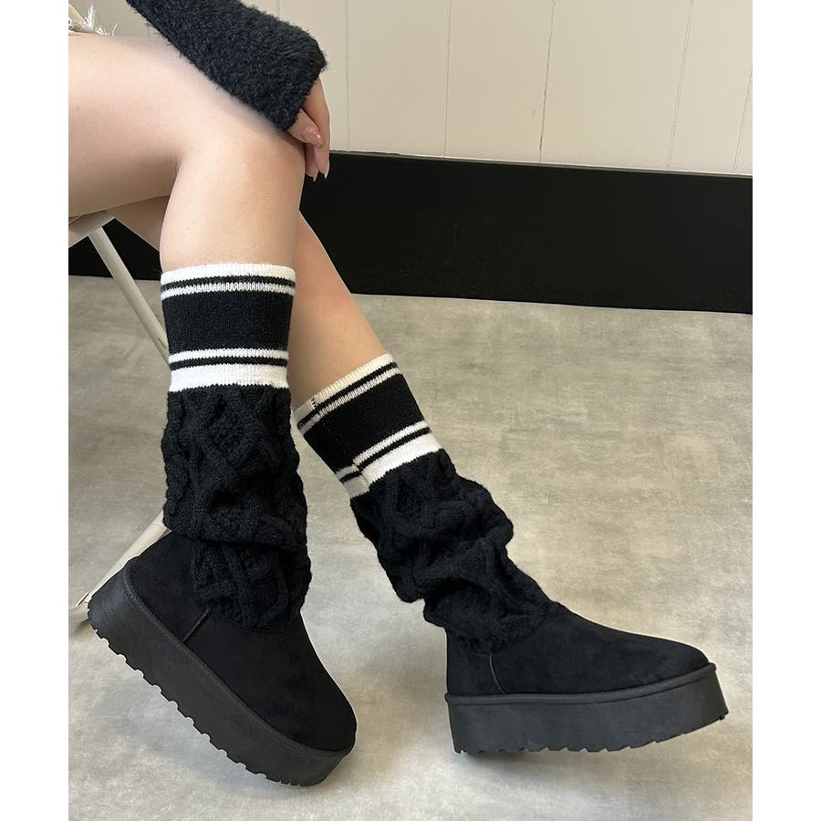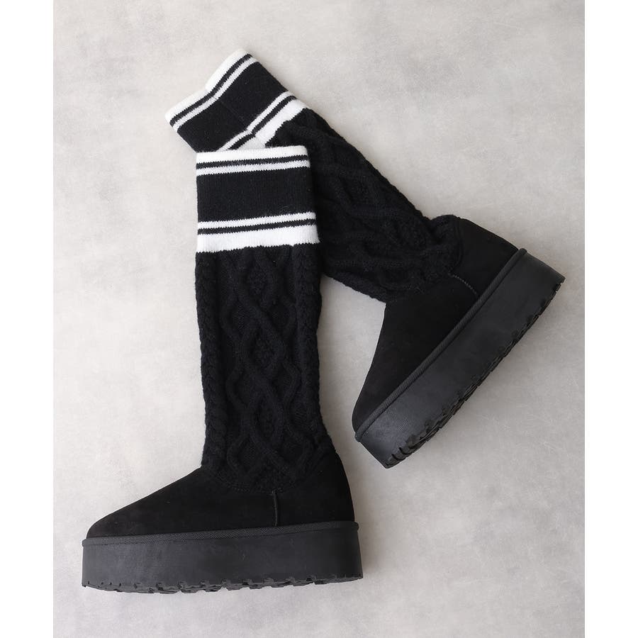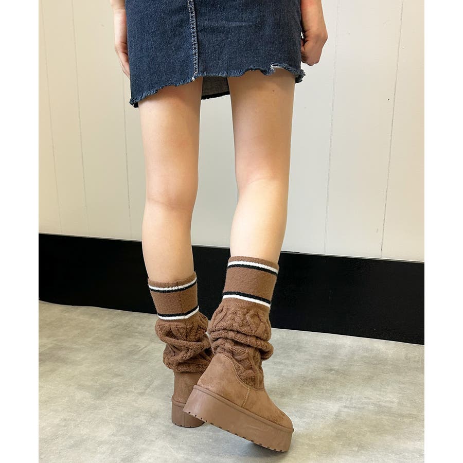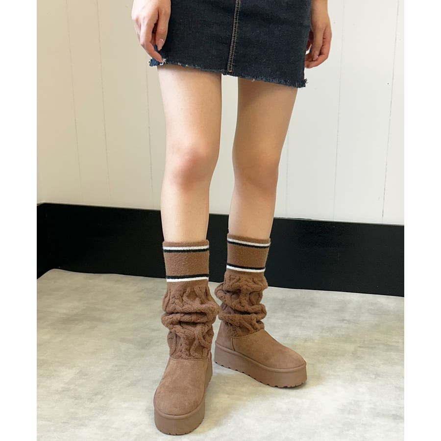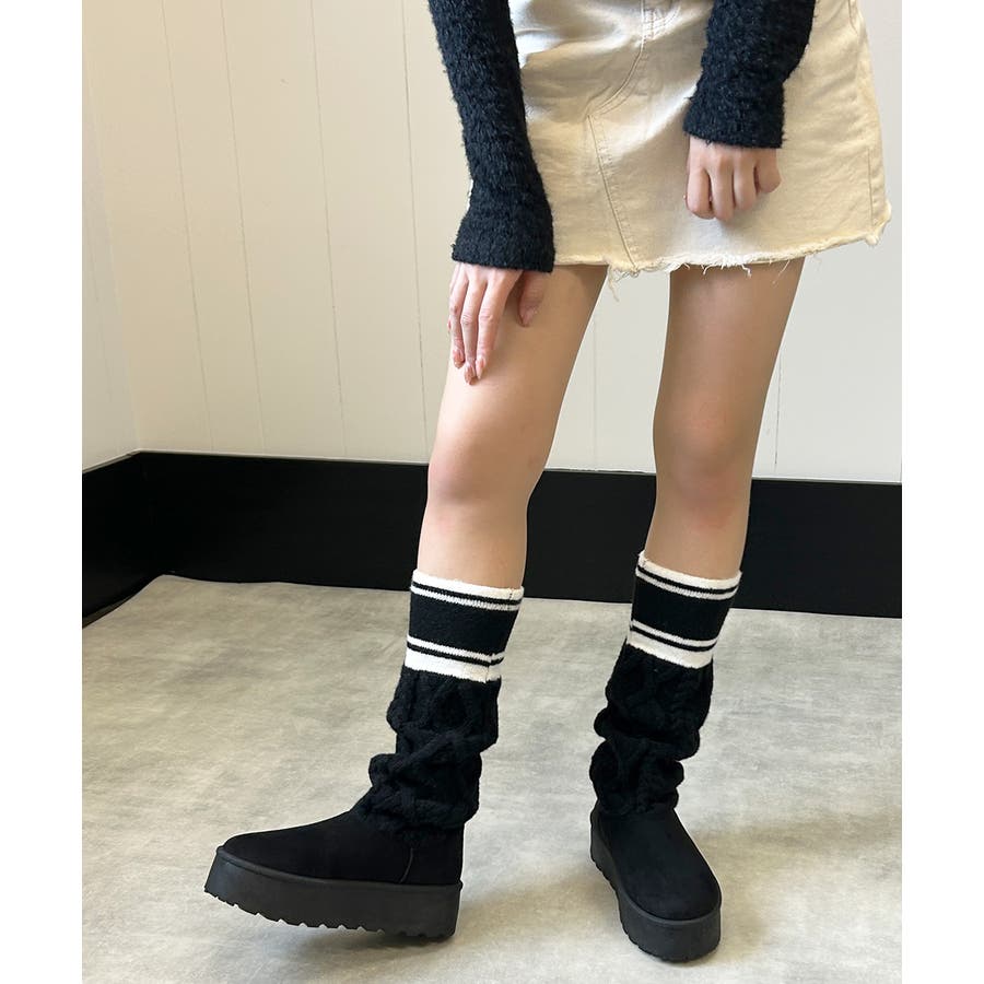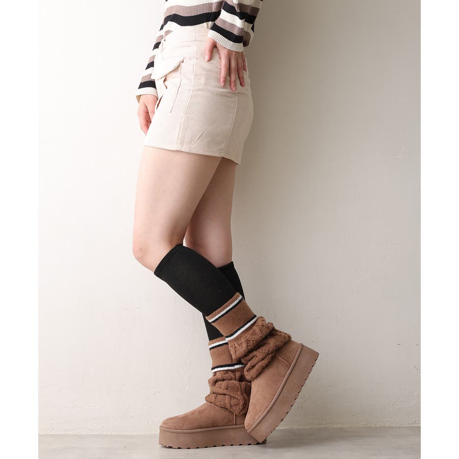【25年秋冬新作】厚底 リブニットソックス ムートンブーツ
