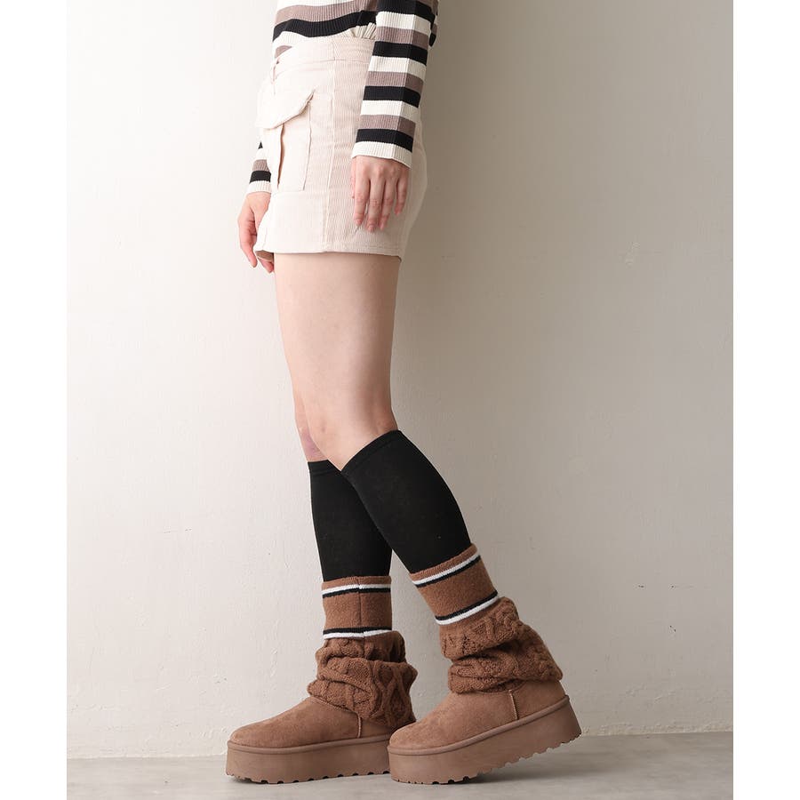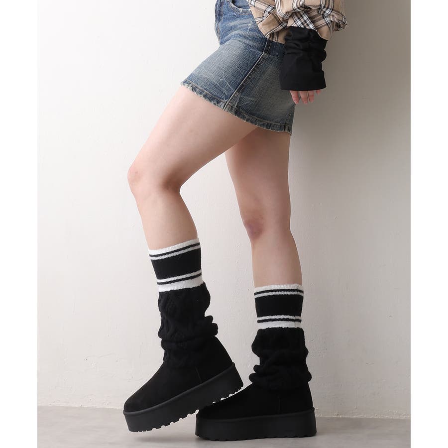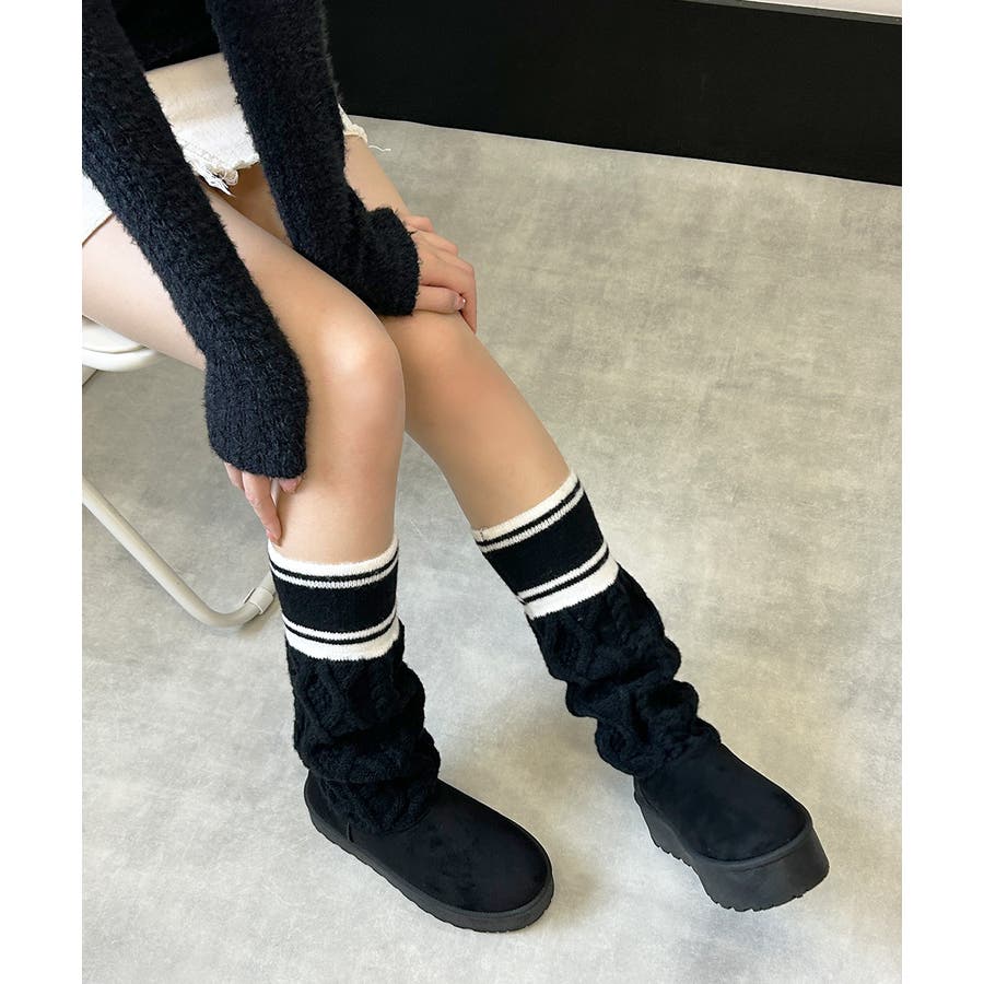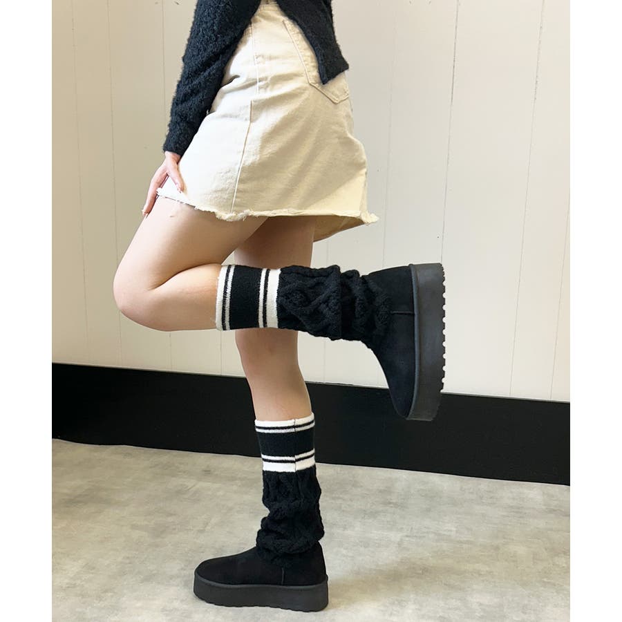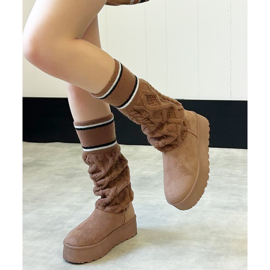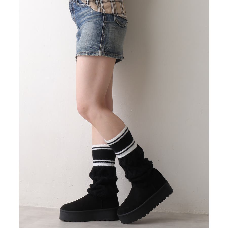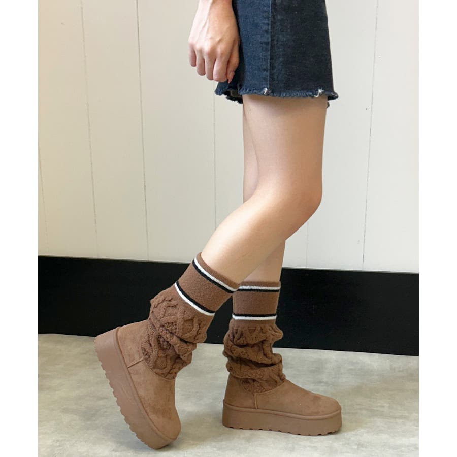 【25年秋冬新作】厚底 リブニットソックス ムートンブーツ