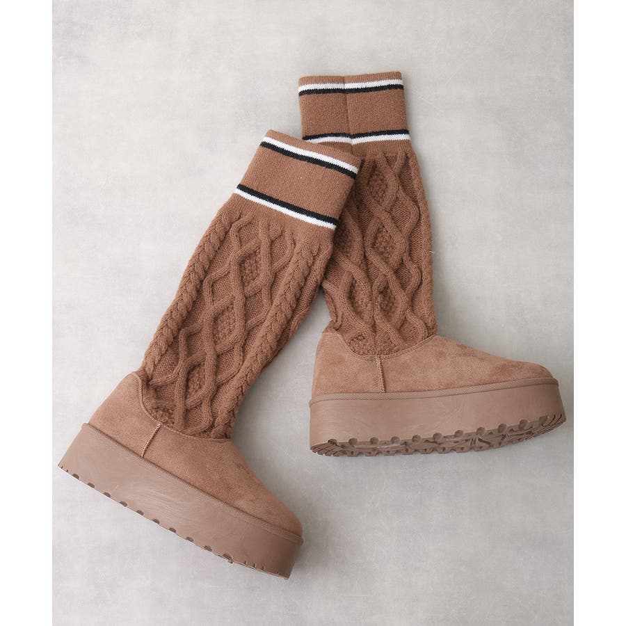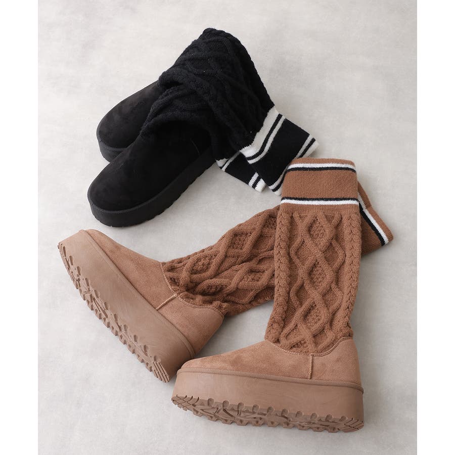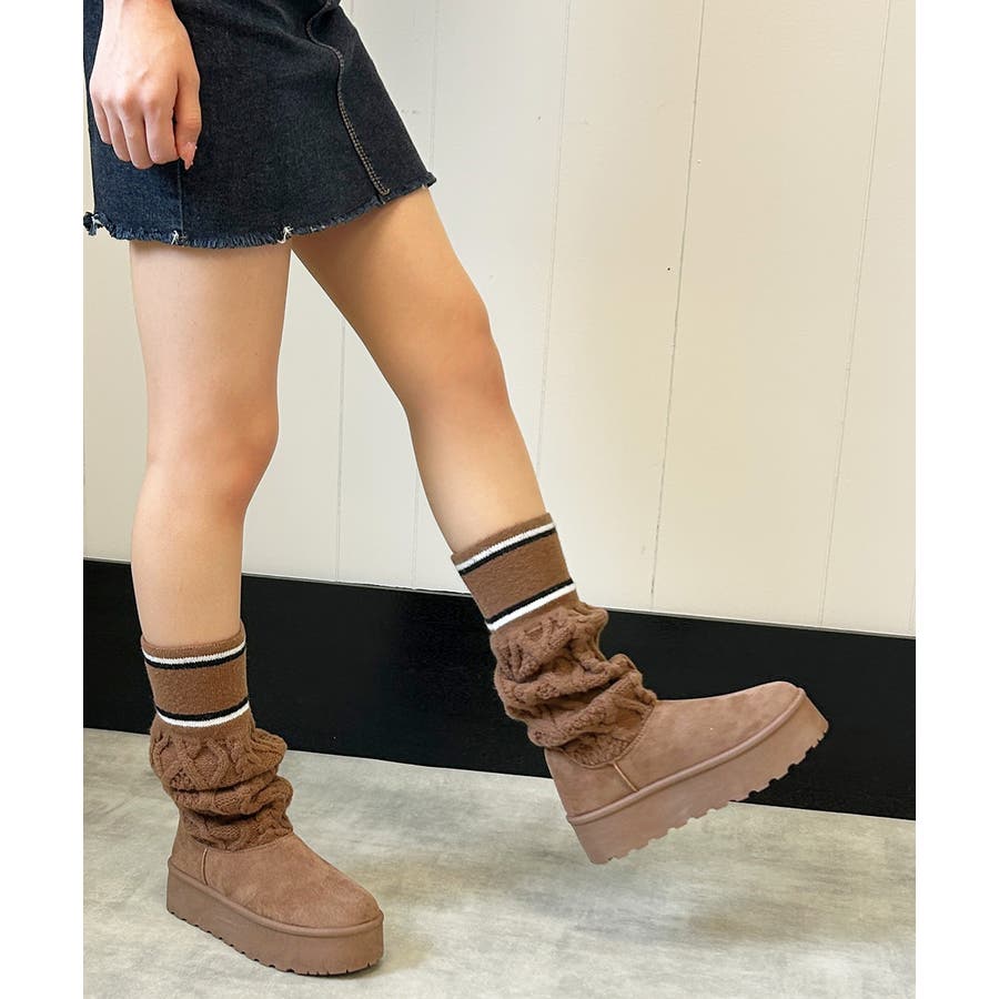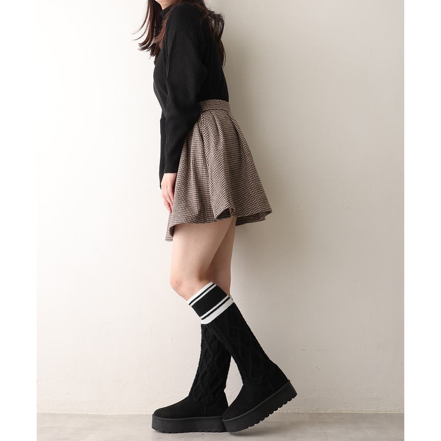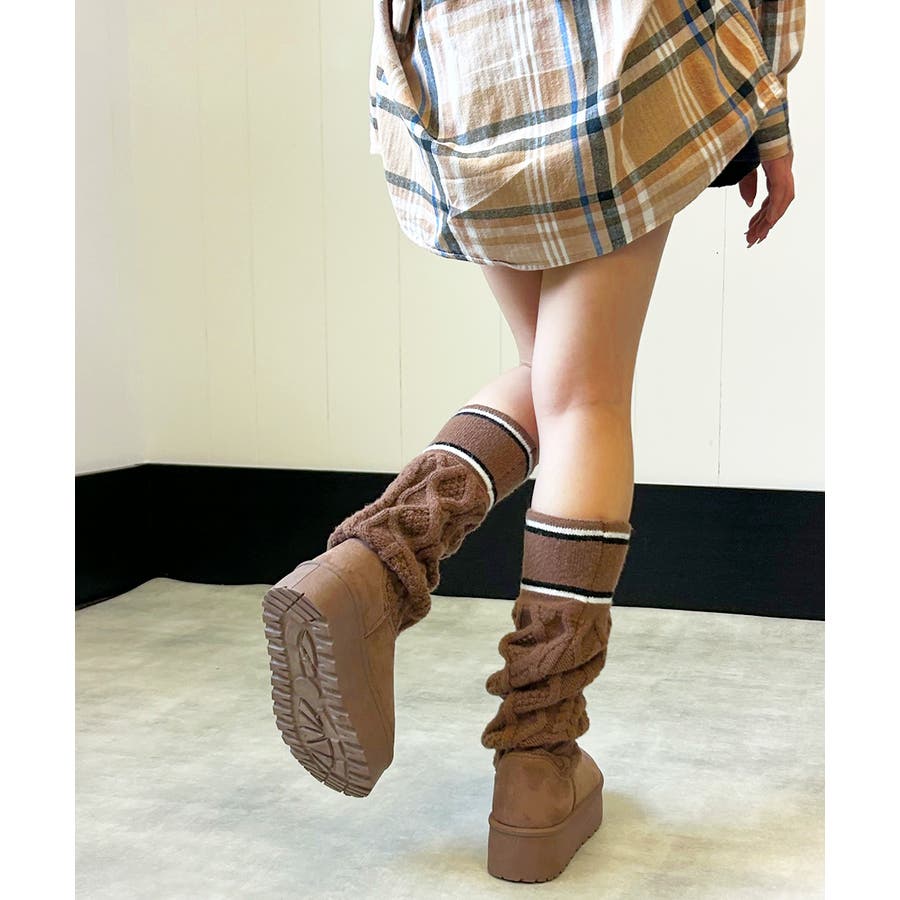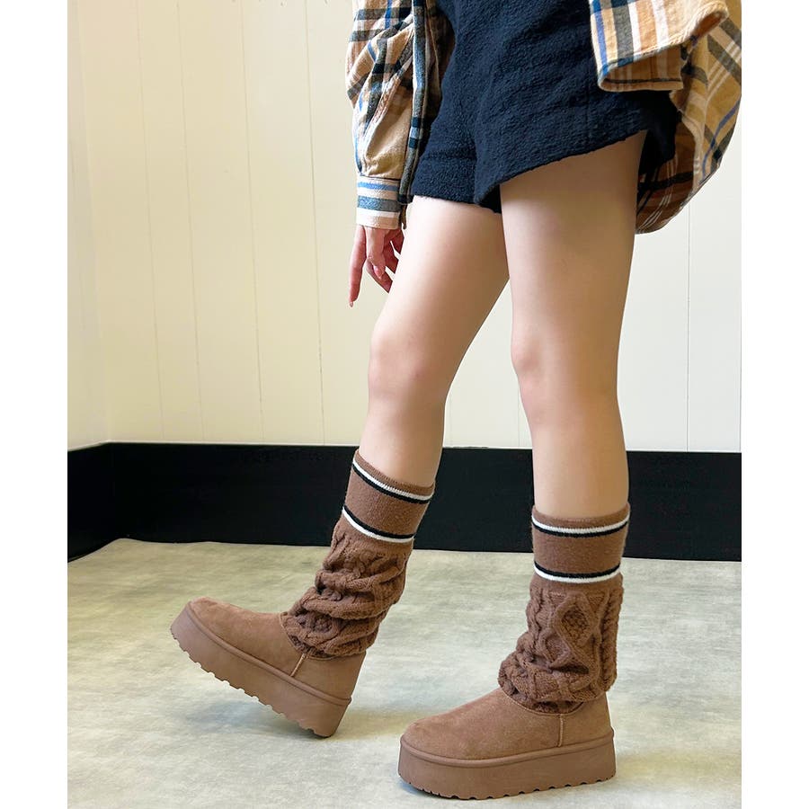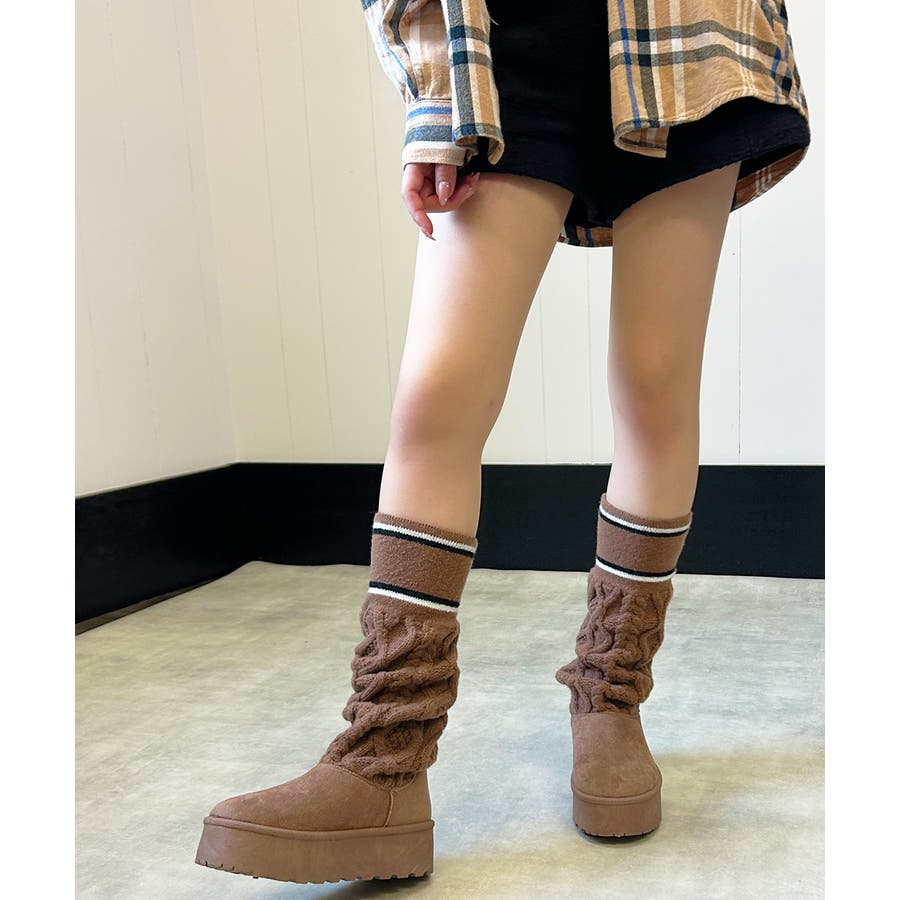 【25年秋冬新作】厚底 リブニットソックス ムートンブーツ