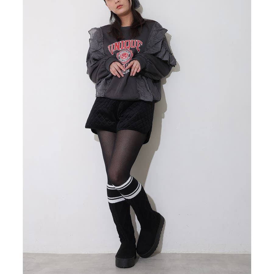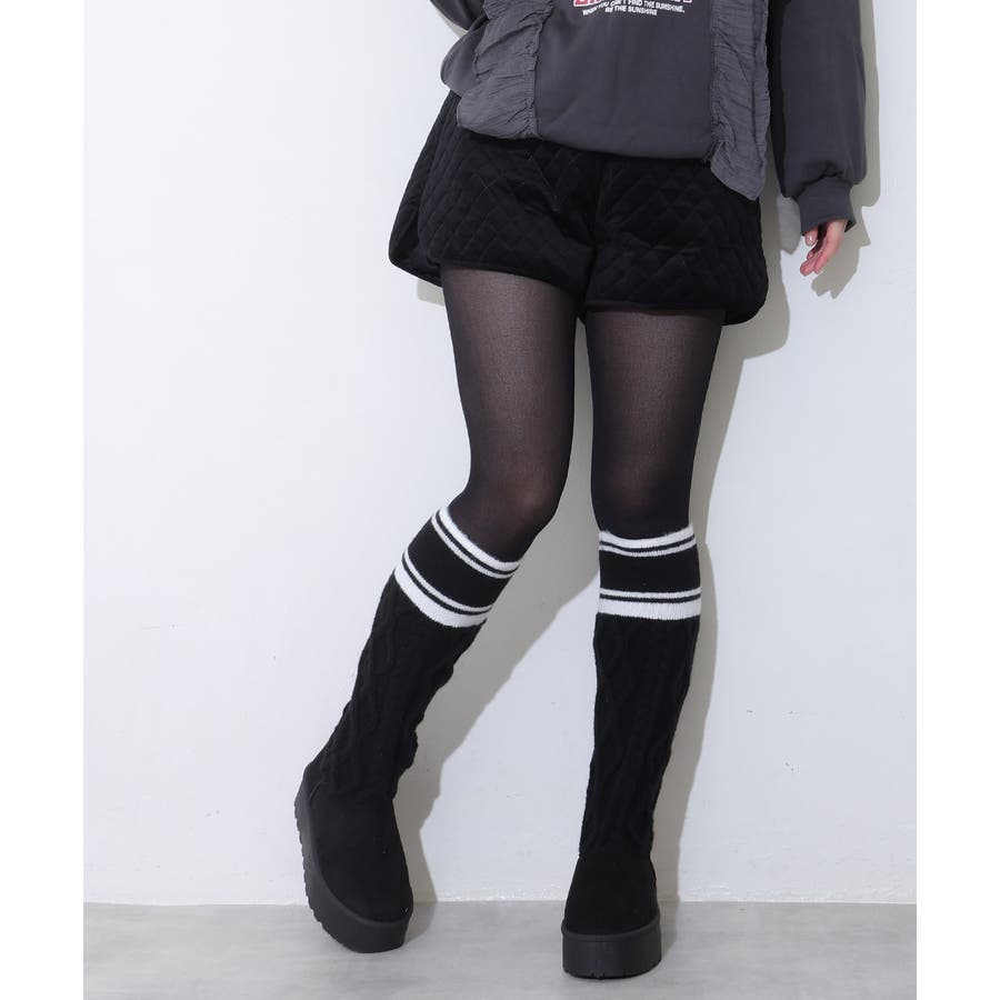 筒部分はリブ編みニット素材で仕上げ、ソックスを重ね履きしたような旬のスタイルに☆