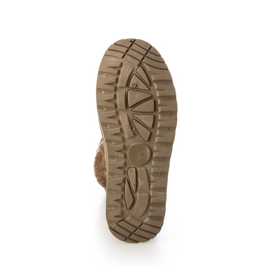 ムートン内側はふかふかのファー素材で足元をやさしく包み込み、あたたかく快適な履き心地に。