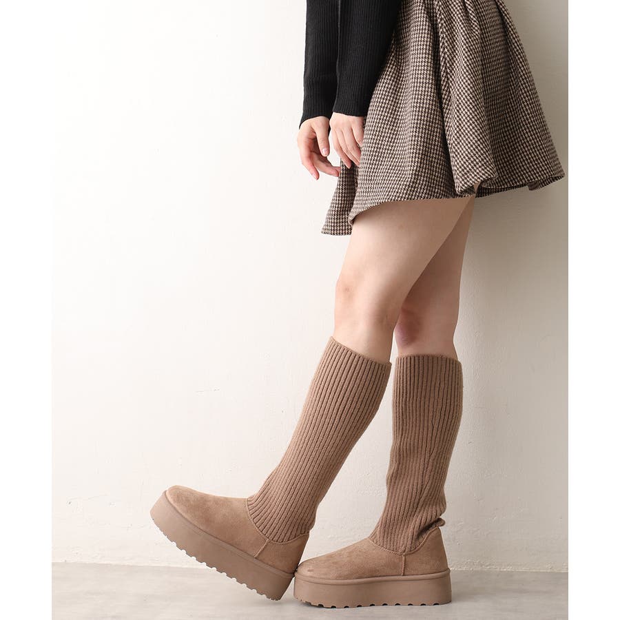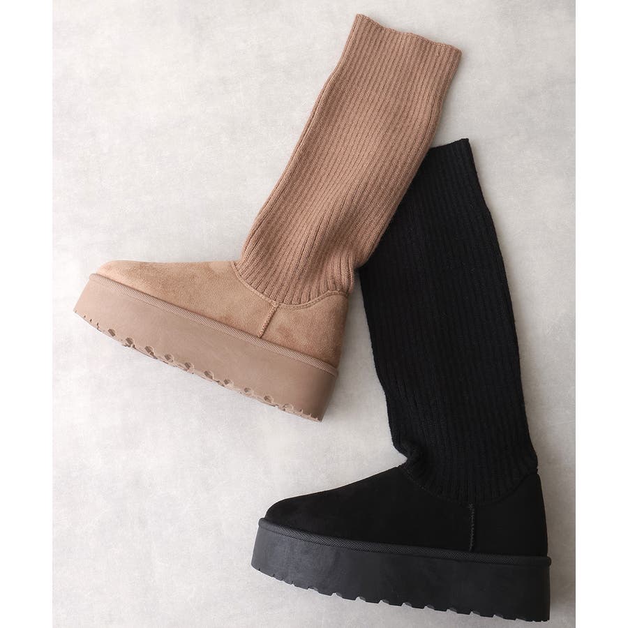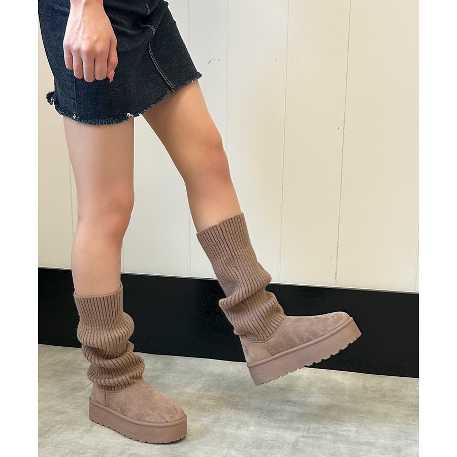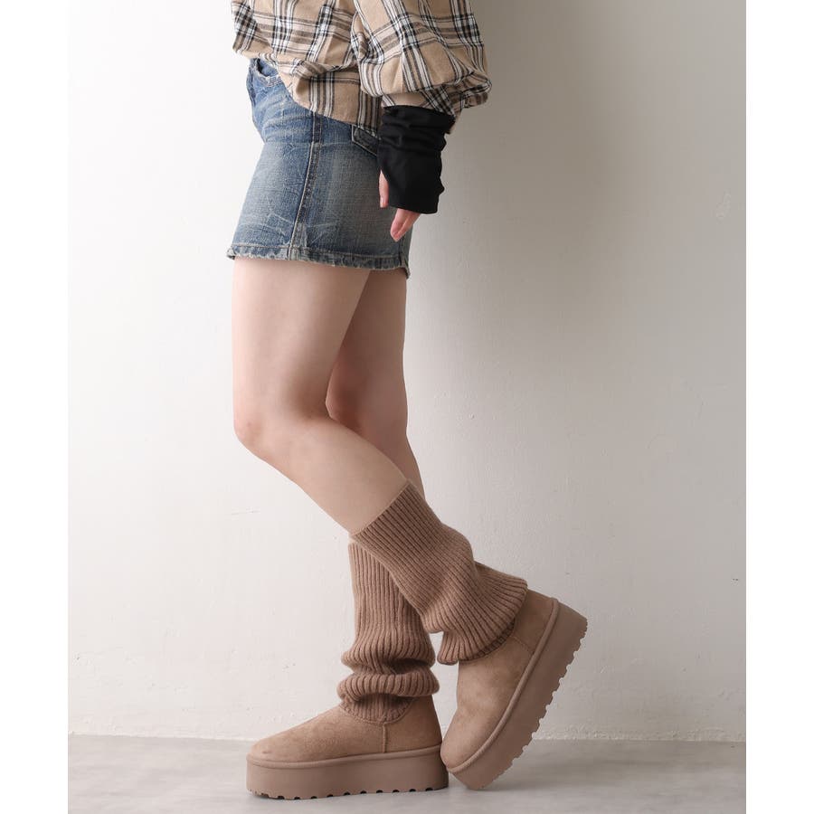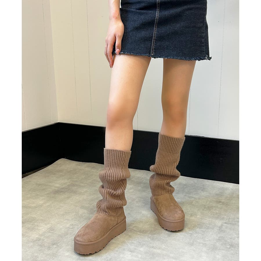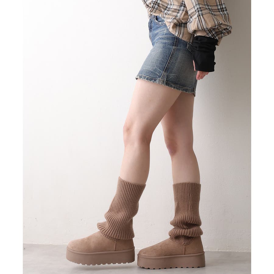 【25年秋冬新作】厚底 ニットソックス ムートンブーツ