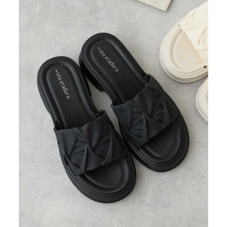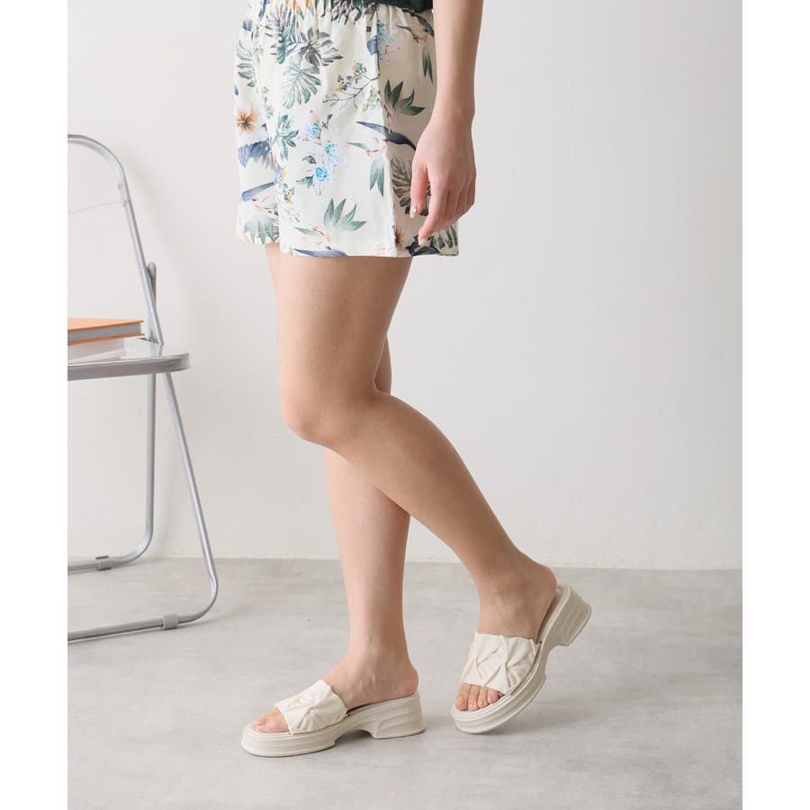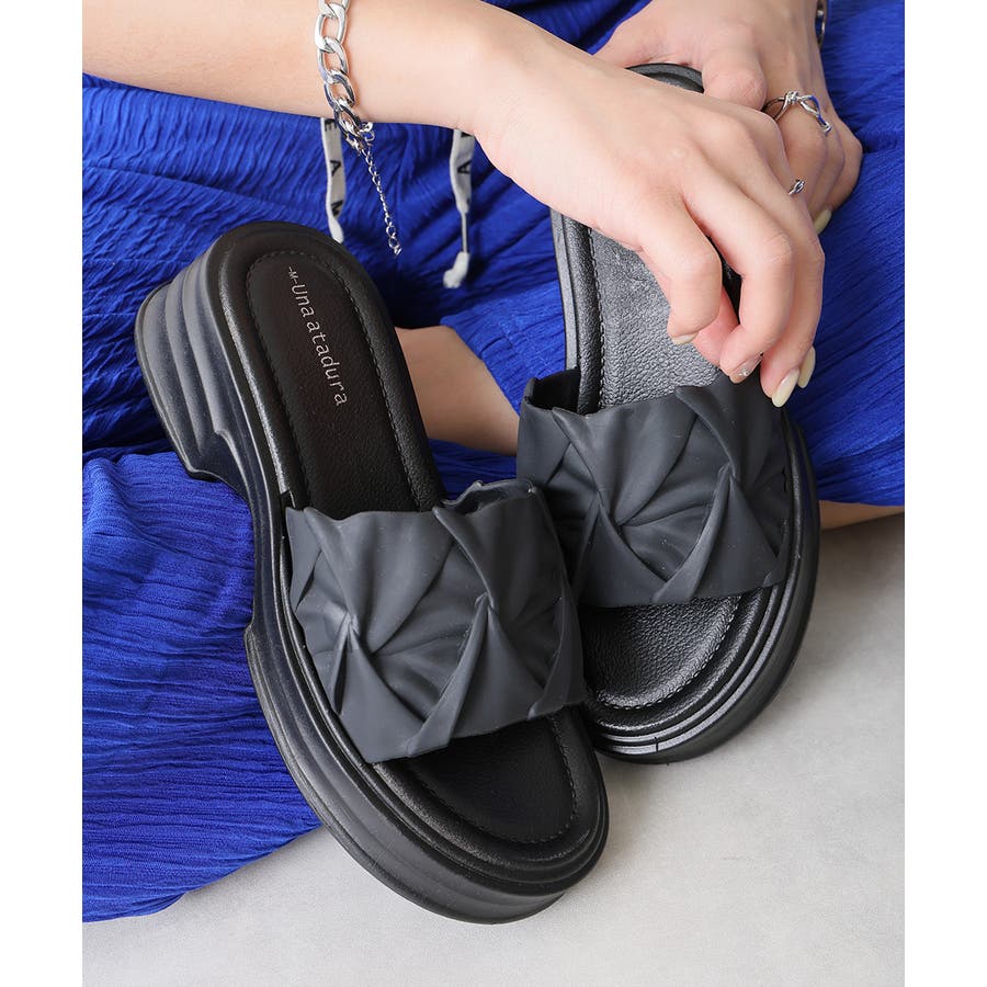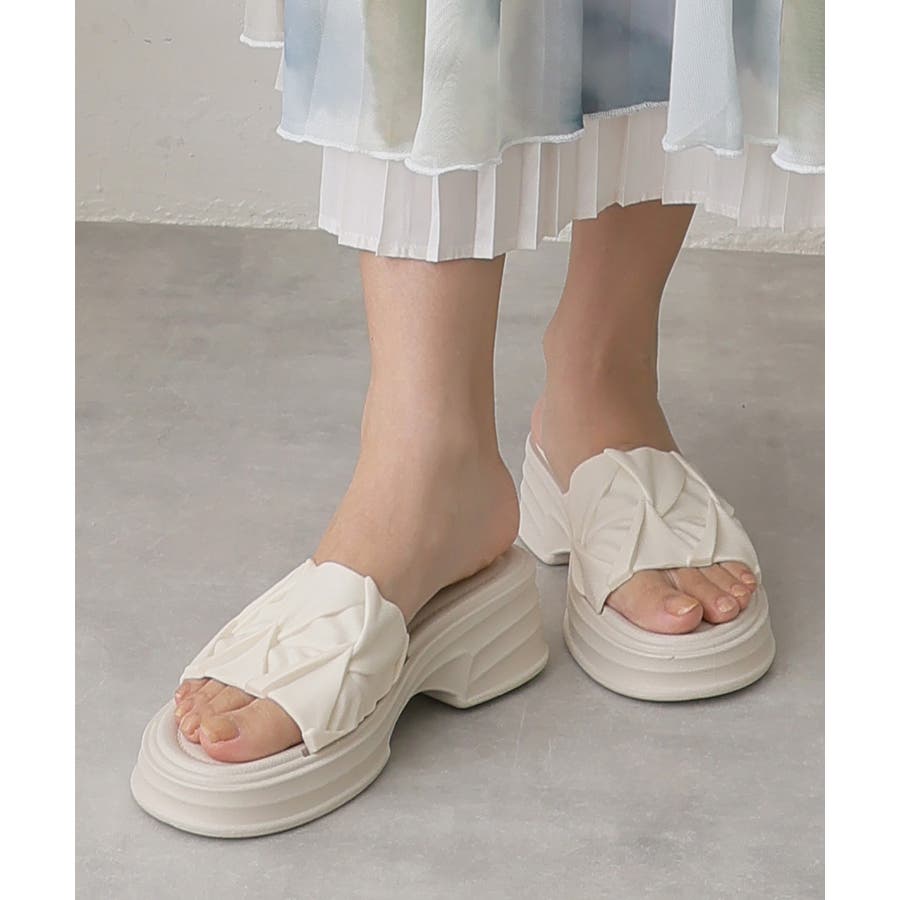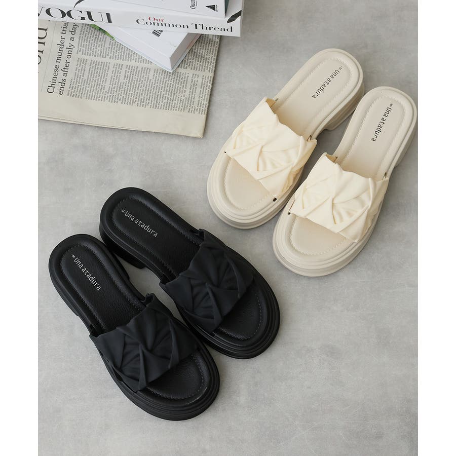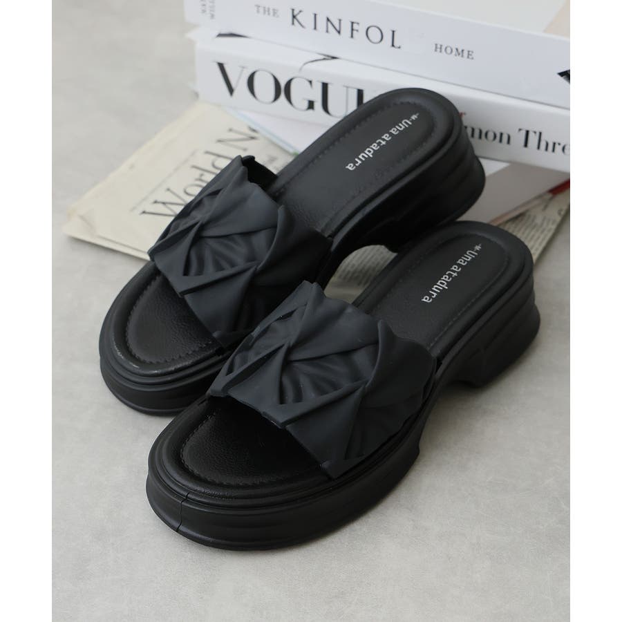 【25年春夏新作】厚底 デザインソール ギャザー調 ミュールサンダル