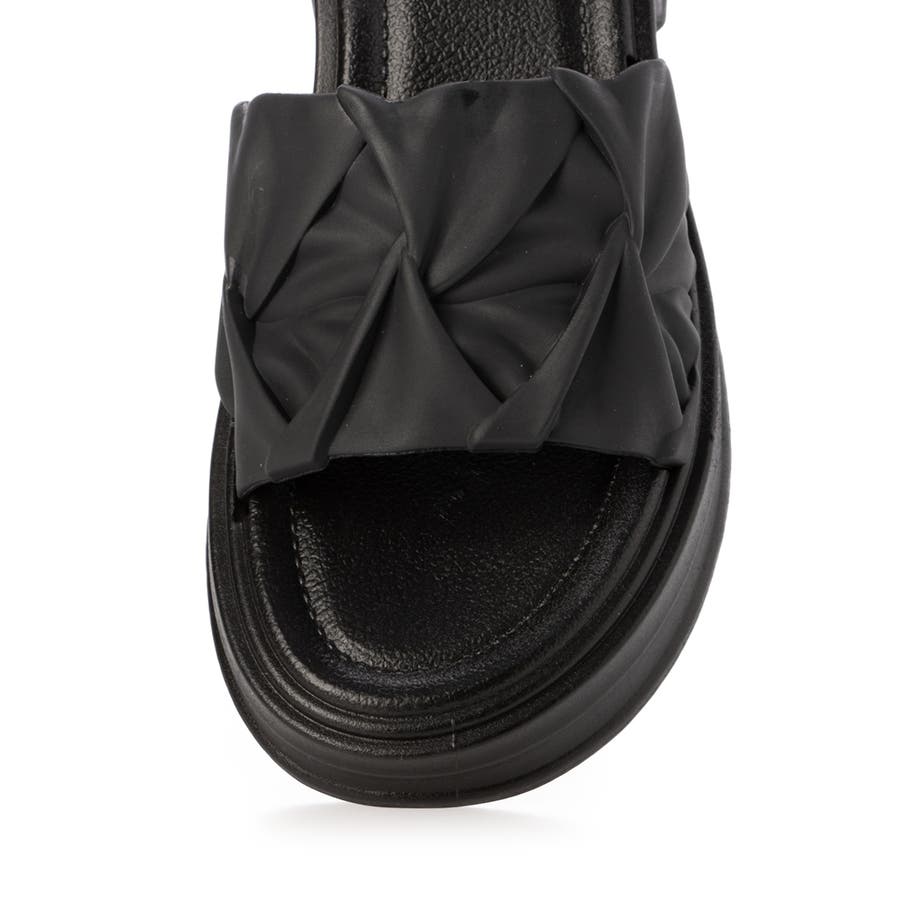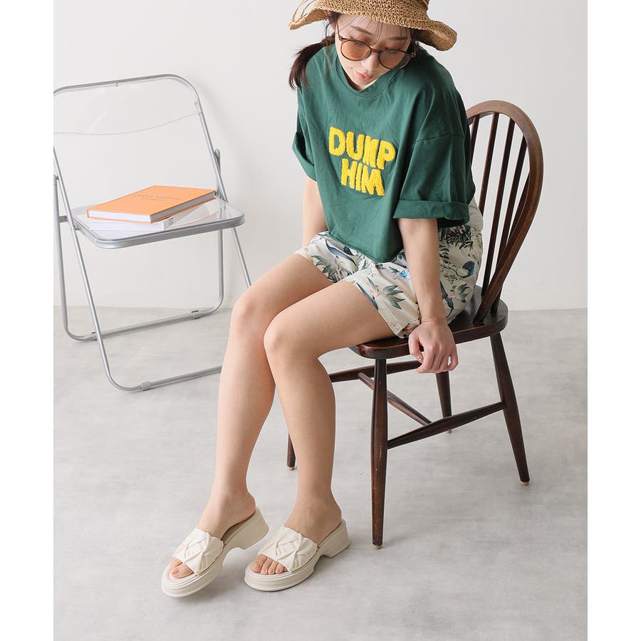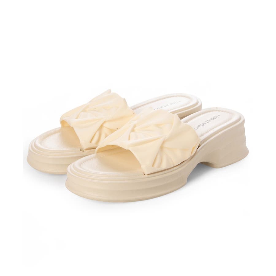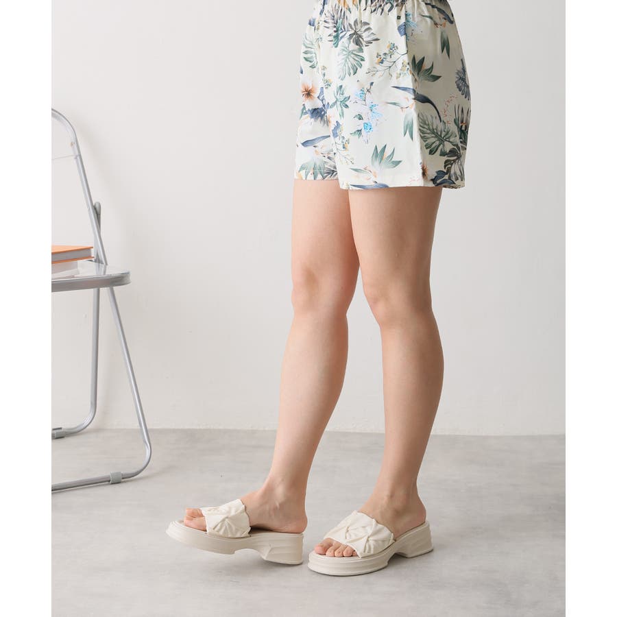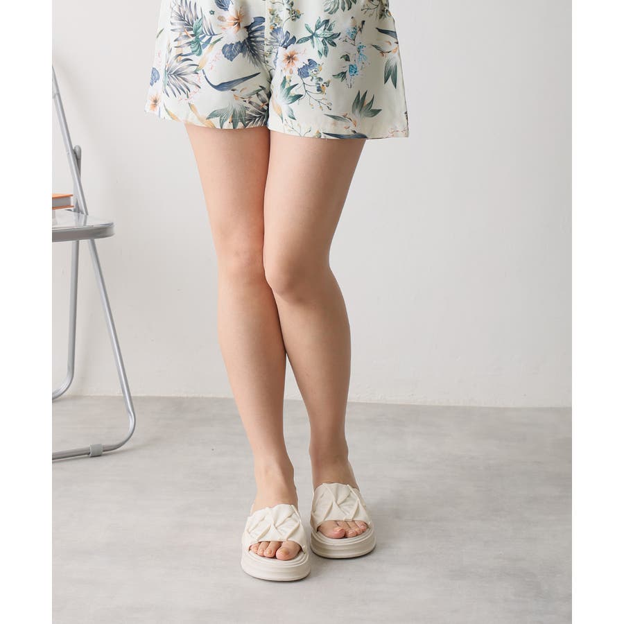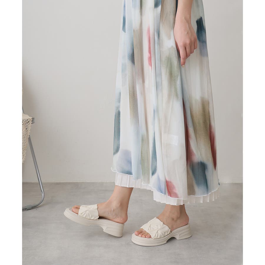 【25年春夏新作】厚底 デザインソール ギャザー調 ミュールサンダル