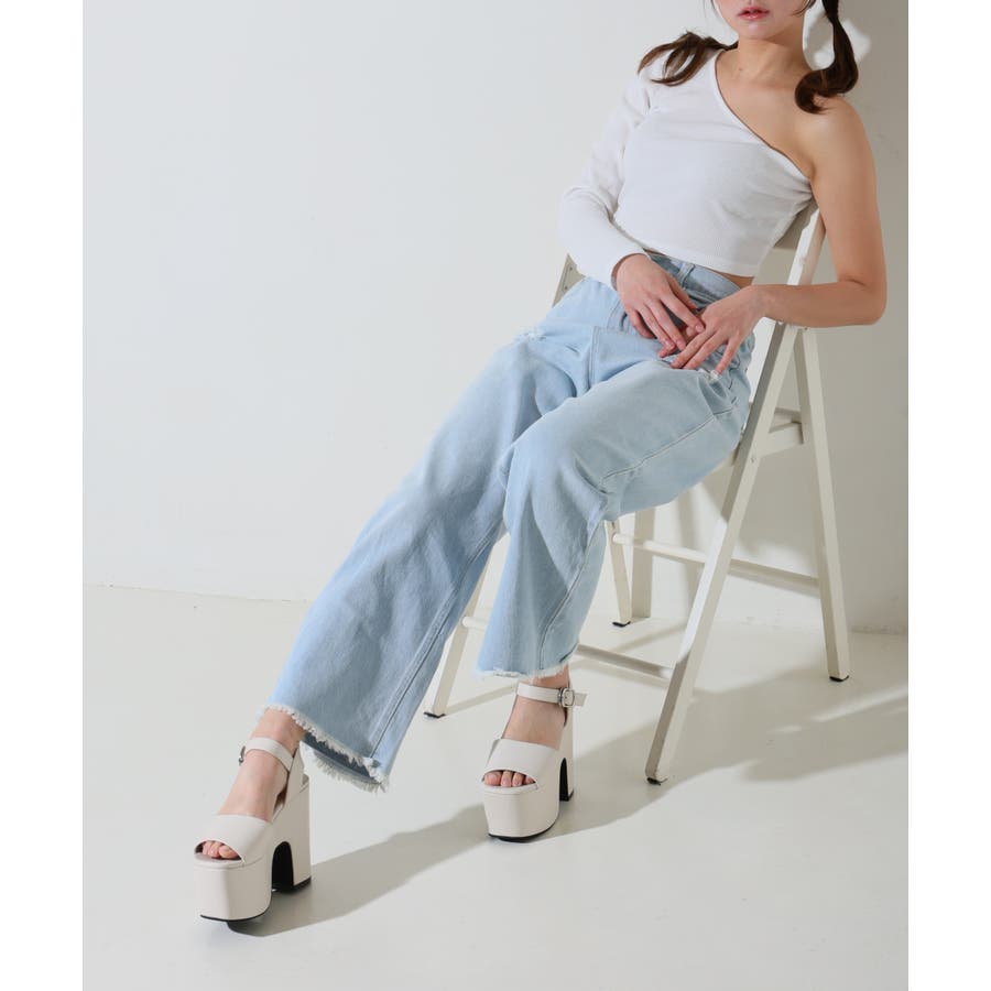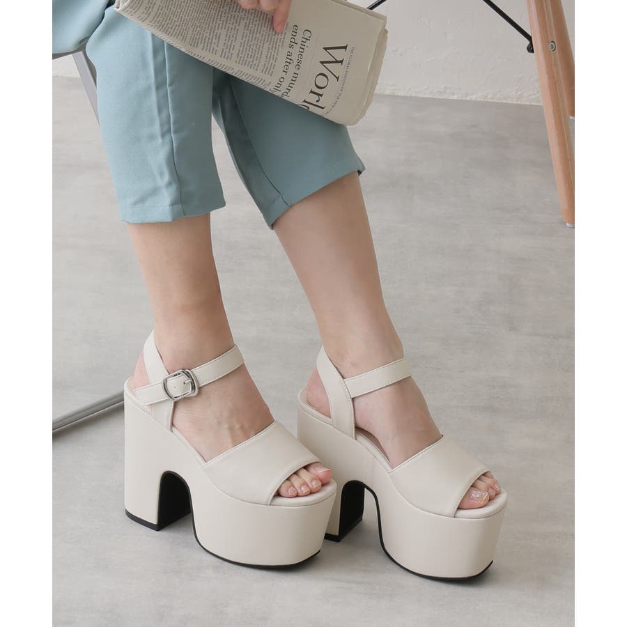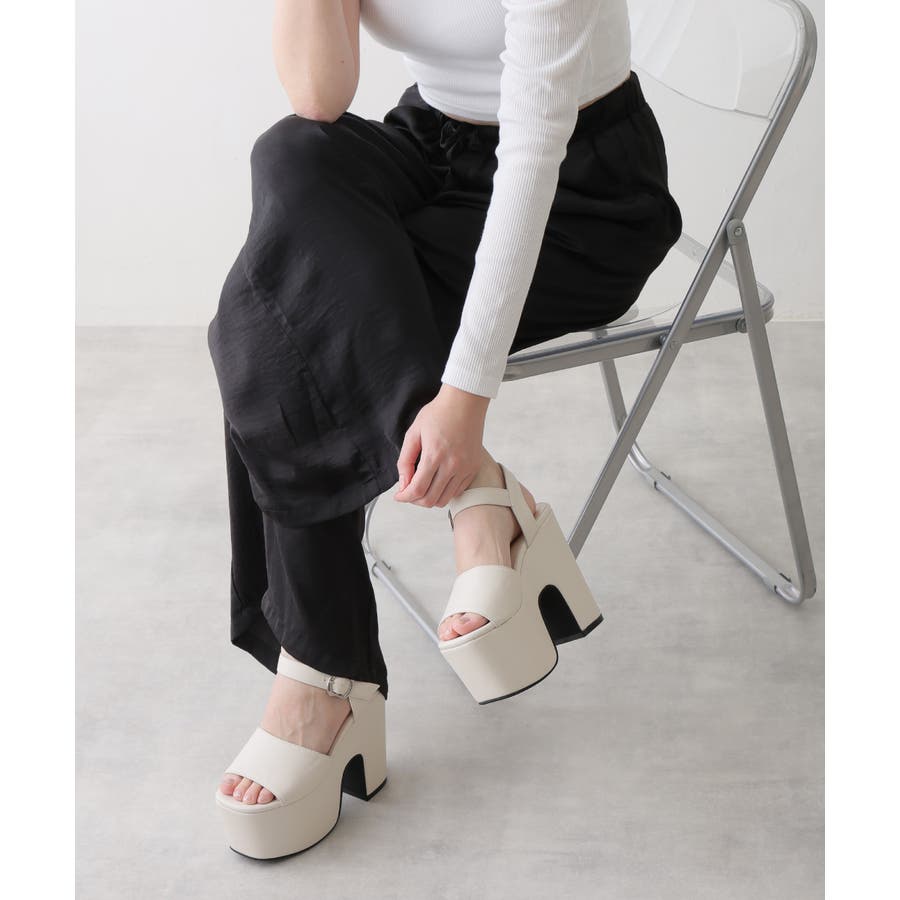厚底の変形ウェッジソールがシンプルデザインを今っぽいアイテムに♪