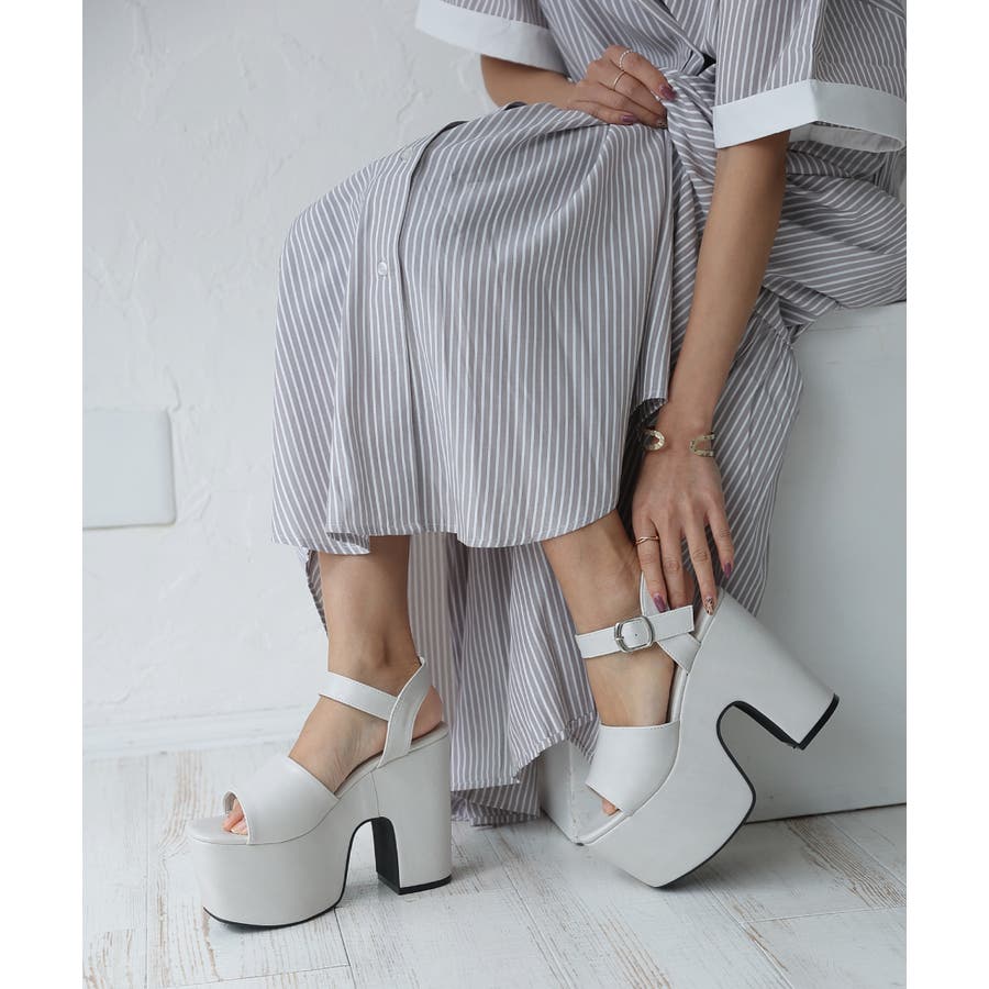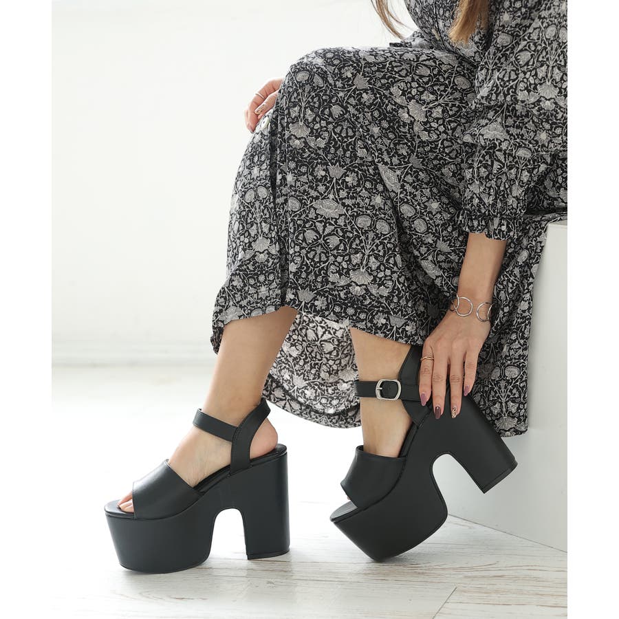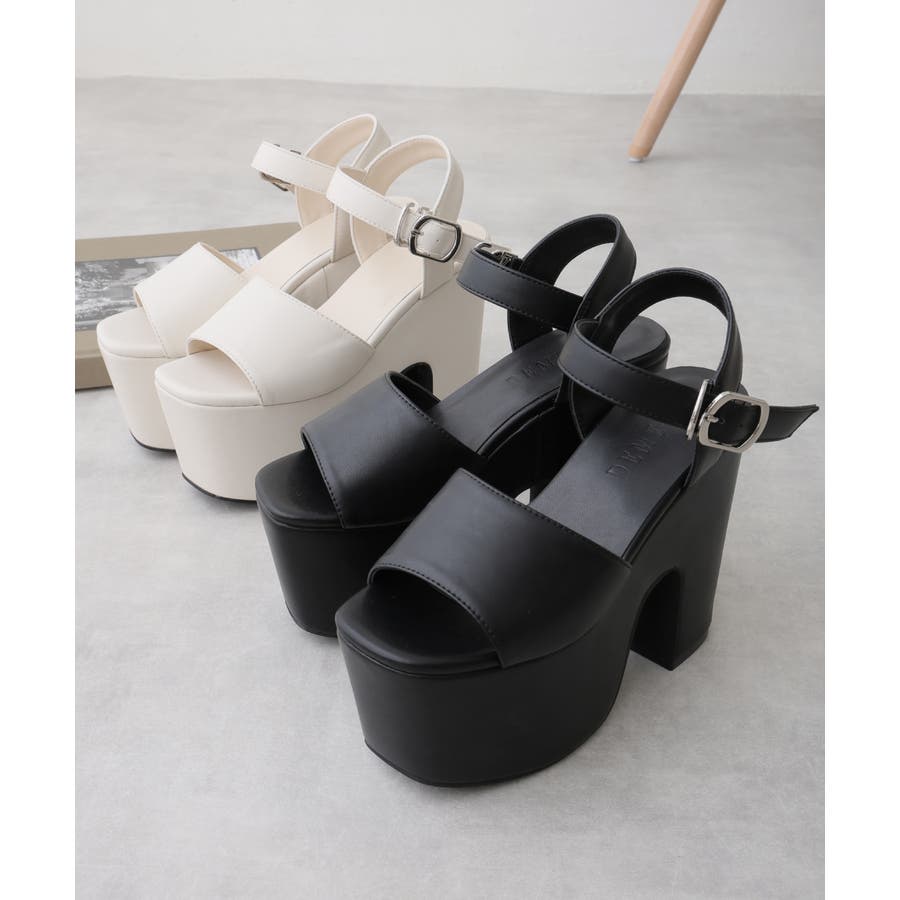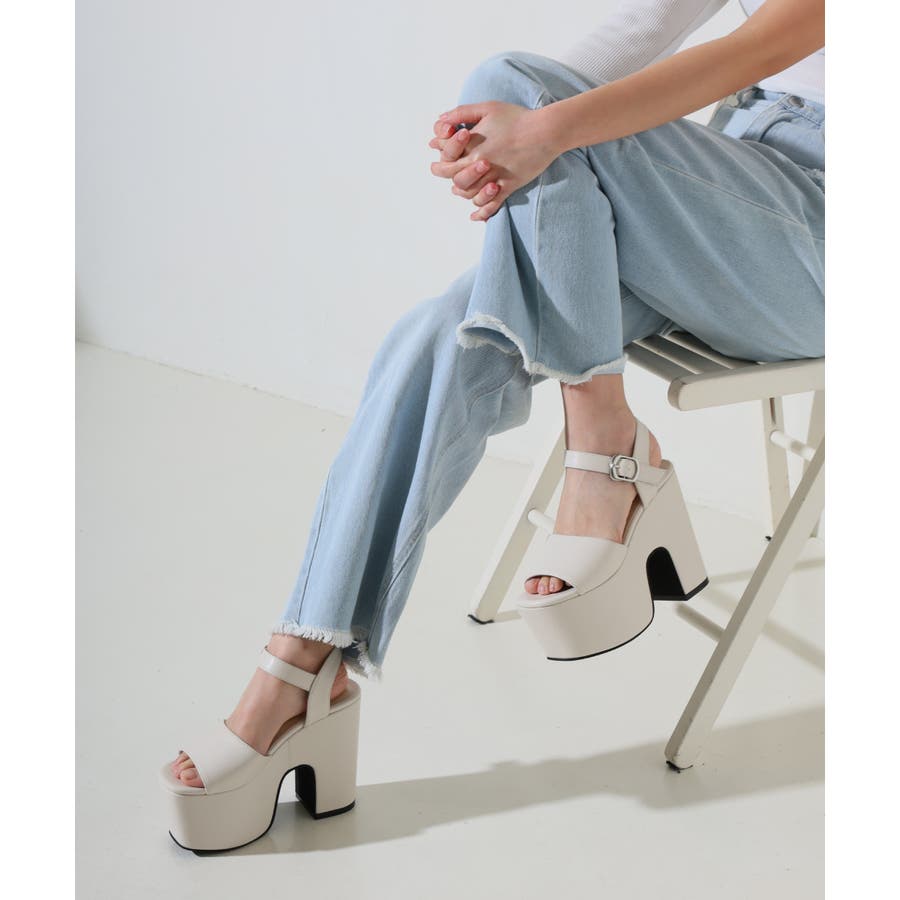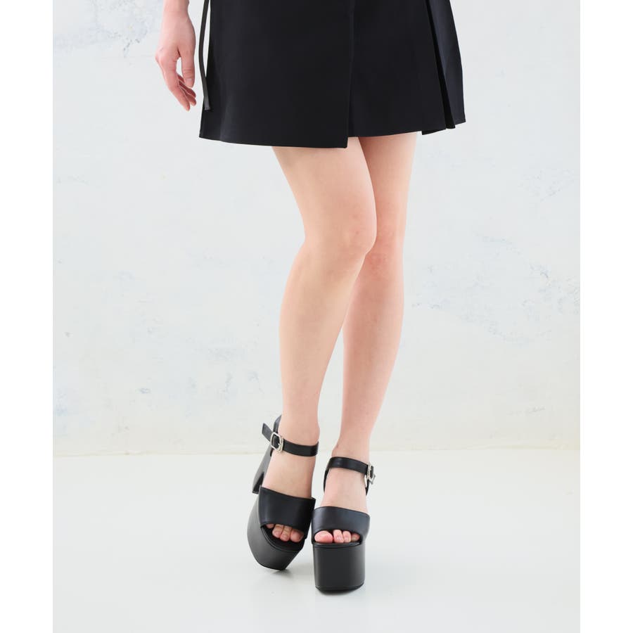 【25年春夏再販】厚底ソール スクエアトゥ アンクルストラップサンダル