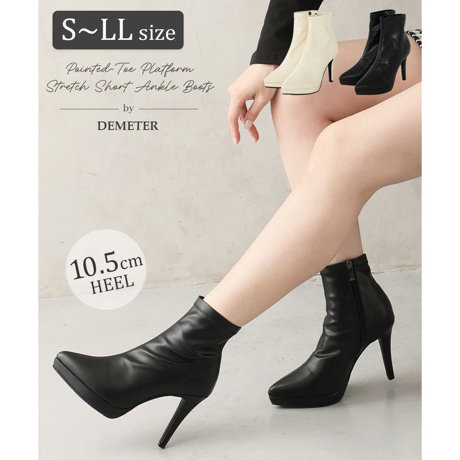レディース/DEMETER/デメテル/シューズ/パンプス/スニーカー/ダッドスニーカー/ボリュームスニーカー/厚底スニーカー/サンダル/ローファー/マニッシュ/ブーツ/ショートブーツ/ロングブーツ/ヒール/チャンキーヒール/太ヒール/厚底/厚底ソール/ボリュームソール/バルキー/美脚/脚長/人気/プチプラ/韓国/韓国ファッション/おすすめ/カジュアル/キレイめ/おしゃれ/オシャレ/お洒落/秋/冬/春/夏/秋冬/春夏/秋物/秋服/冬物/冬服/春物/春服/夏物/夏服/新作/AW/SS/セクシー/大人/ストリート/シンプル/軽量/ポインテッドトゥ/ピンヒール/ハイヒール/厚底ブーツ/プラットフォーム/ストレッチ/ストレッチブーツ/ストレッチショートブーツ/厚底ストレッチブーツ/S/M/L/LL/黒/ブラック/白/ホワイト/アイボリー/ベージュ