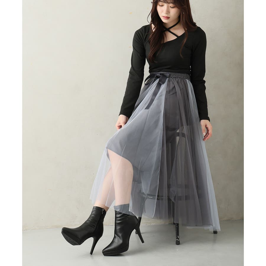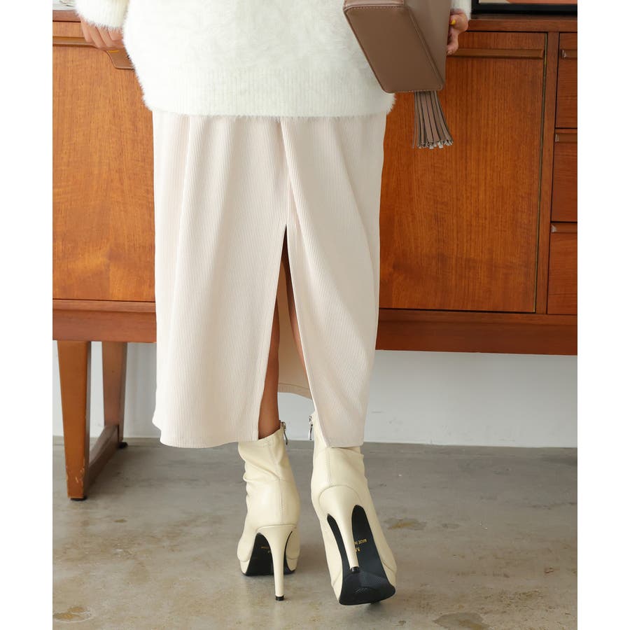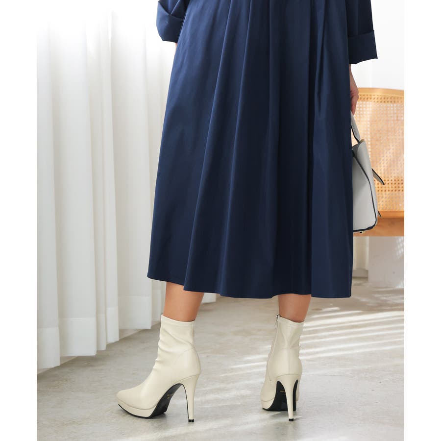 ストレッチ素材なので履き口は細めの設計。すっきりとしたキレイめフォルムで大人っぽく、足元をぐっと女性らしく見せてくれます♪