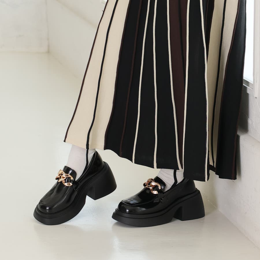 厚底ソール☆チェーンモチーフ ローファーシューズ
