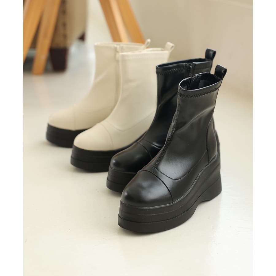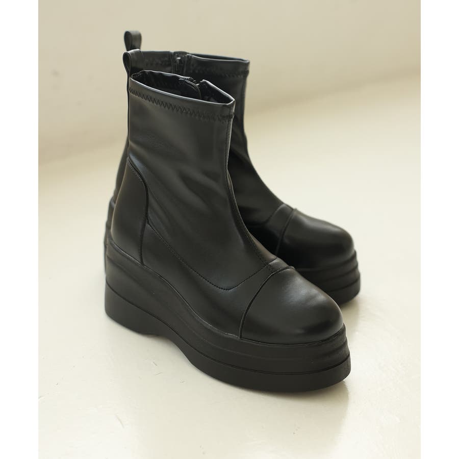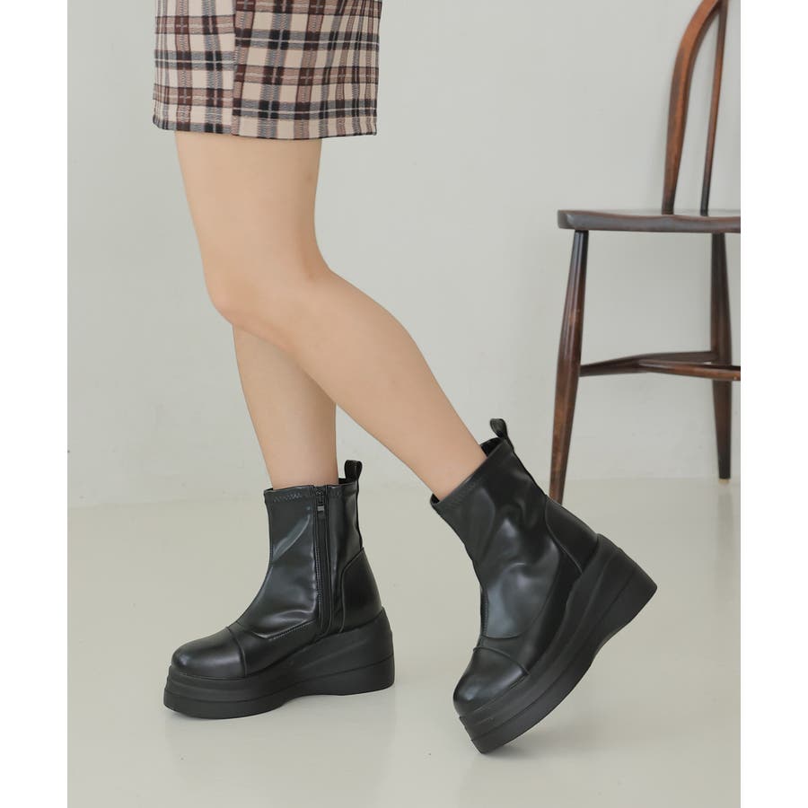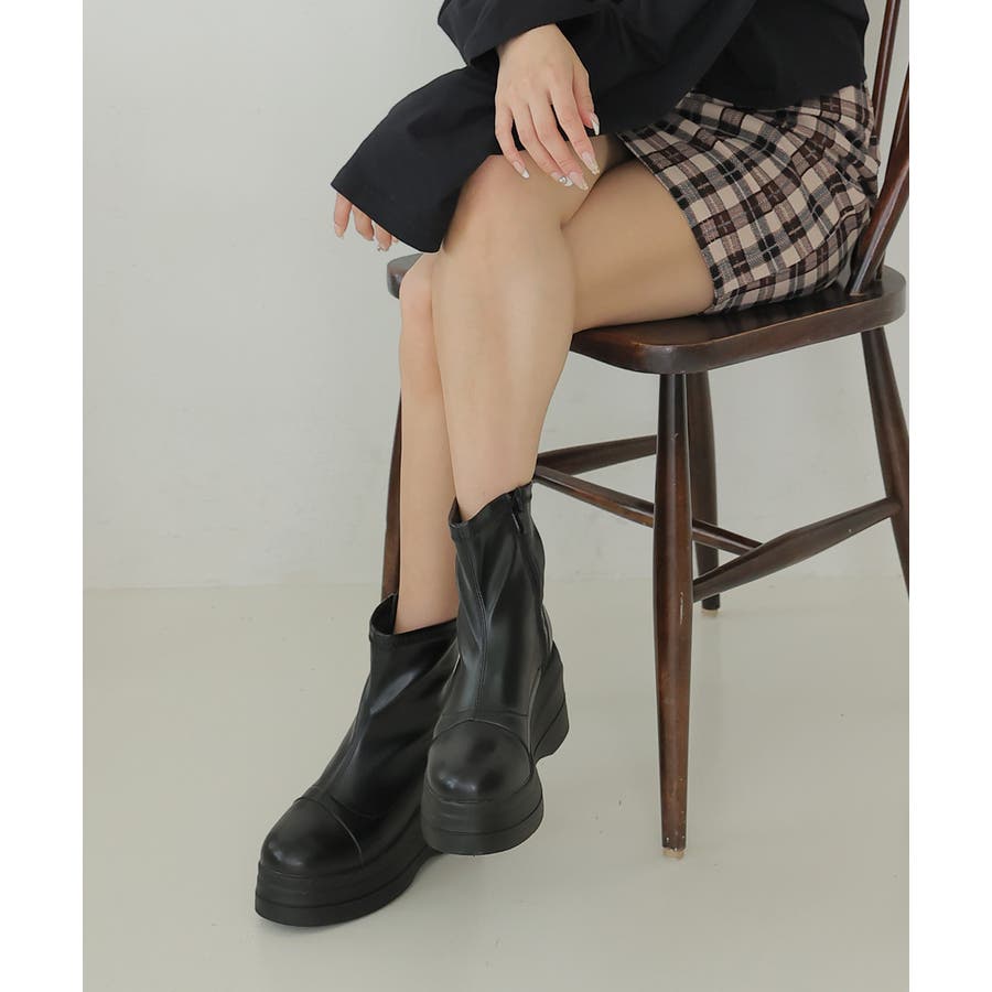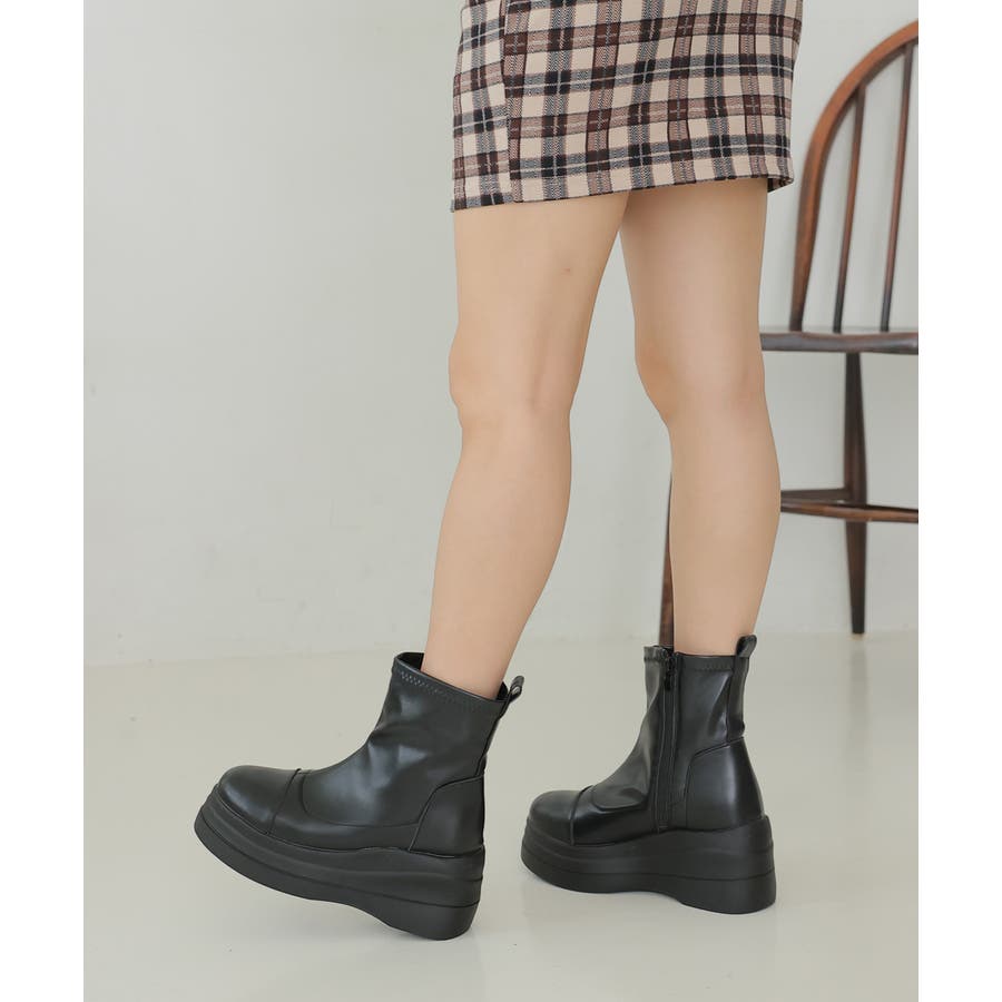 【24年秋冬再販】厚底ソール☆ストレッチ ショートブーツ