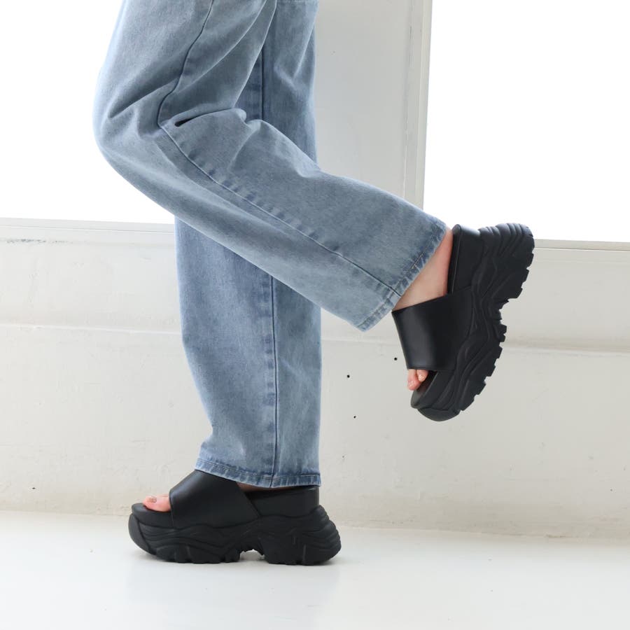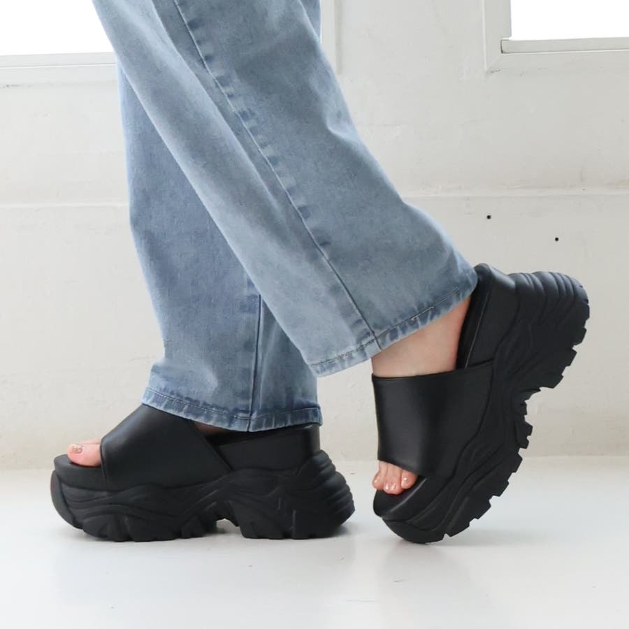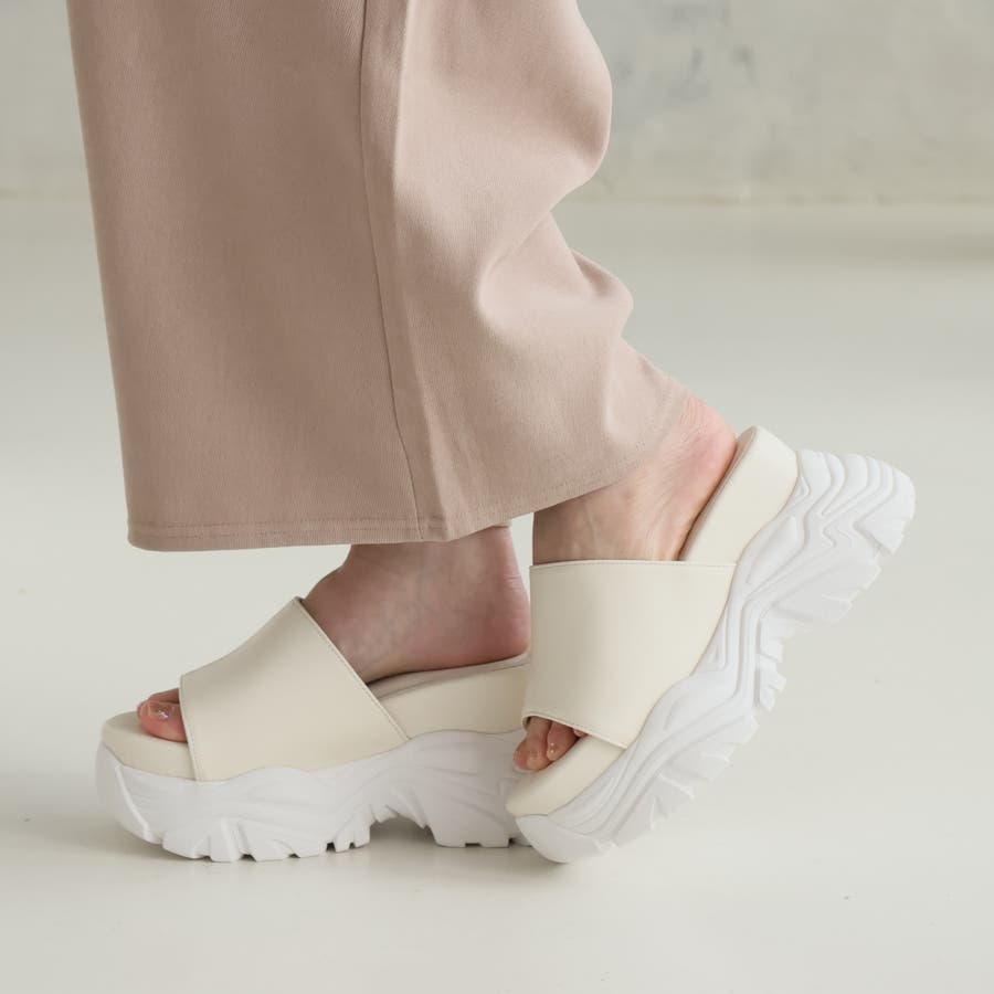【厚底 2段ボリュームソール スポーツMIX ミュールサンダル】