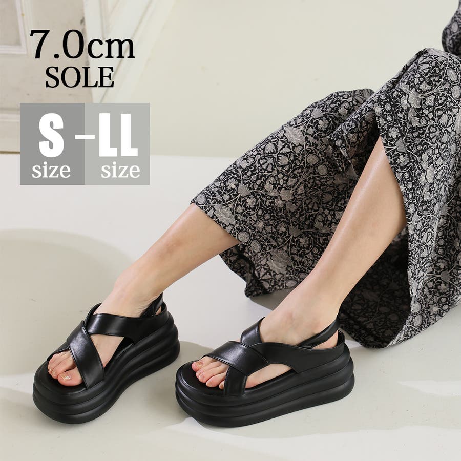 目を惹く厚底3段ソールが抜群の存在感♪これからの春夏シーズンにかかせない厚底クロスベルトサンダルです!