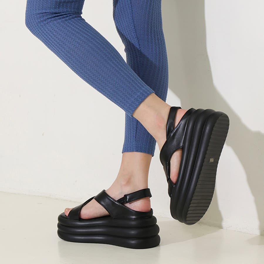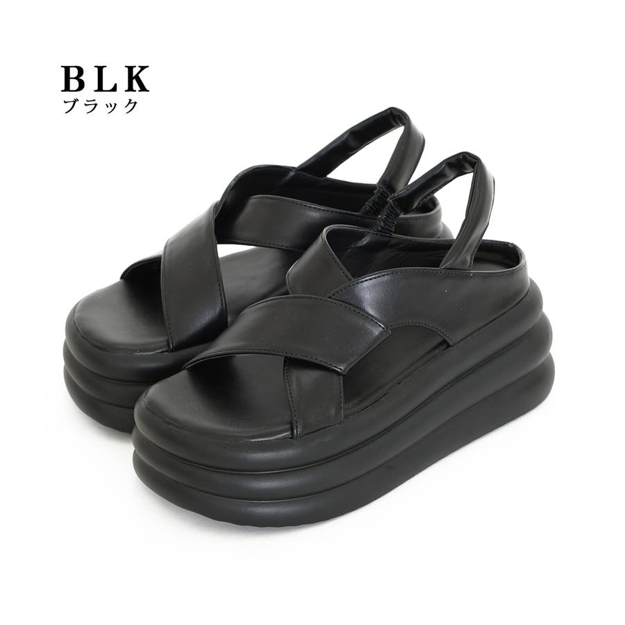 【厚底 3段ソール バックバンド クロスベルトサンダル】