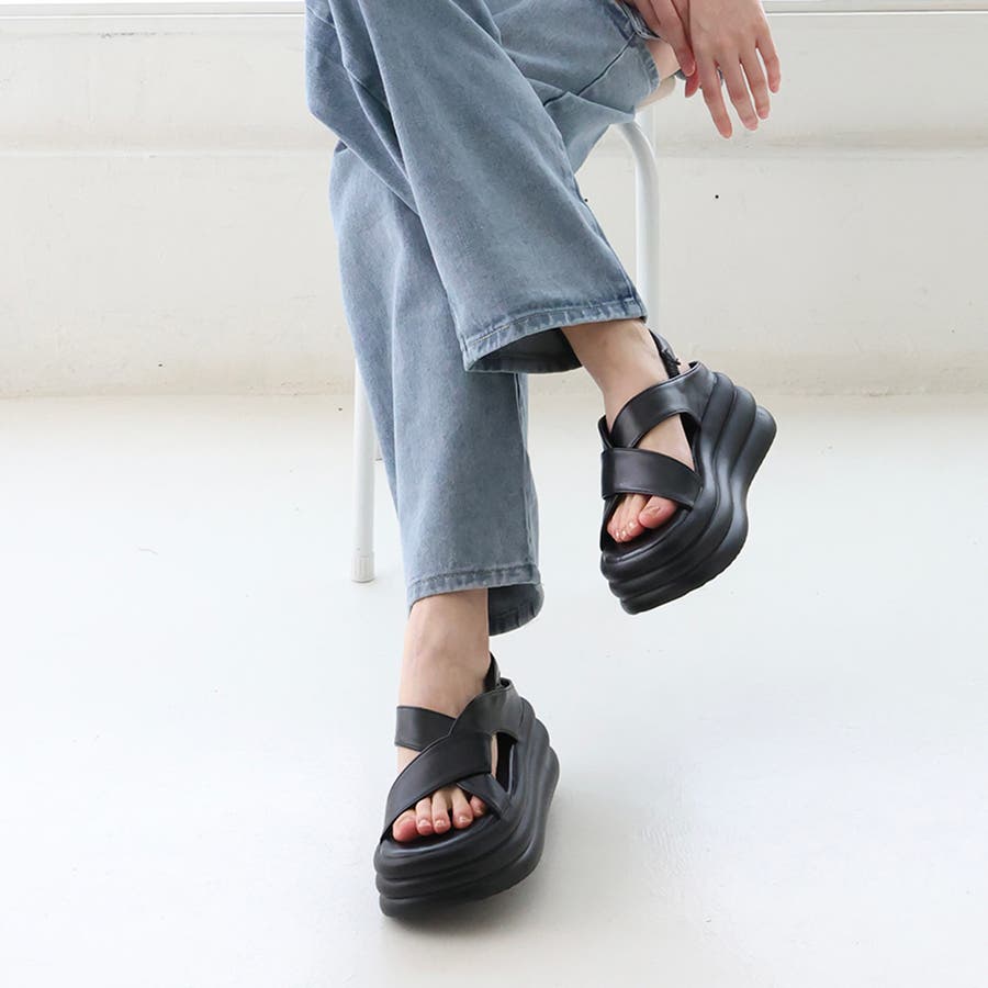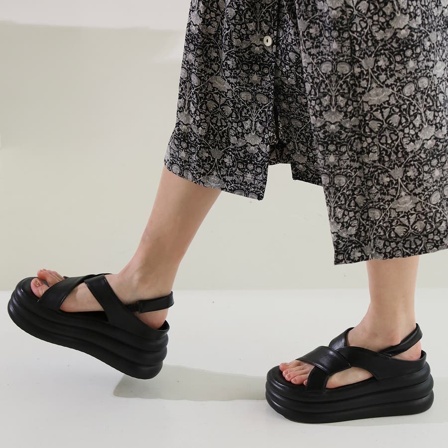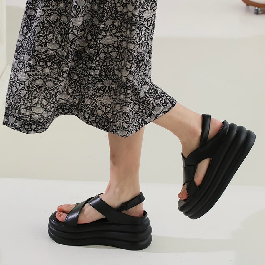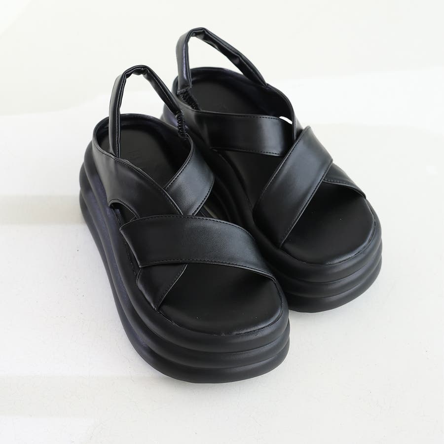【24年春夏新作】厚底 3段ソール バックバンド クロスベルトサンダル