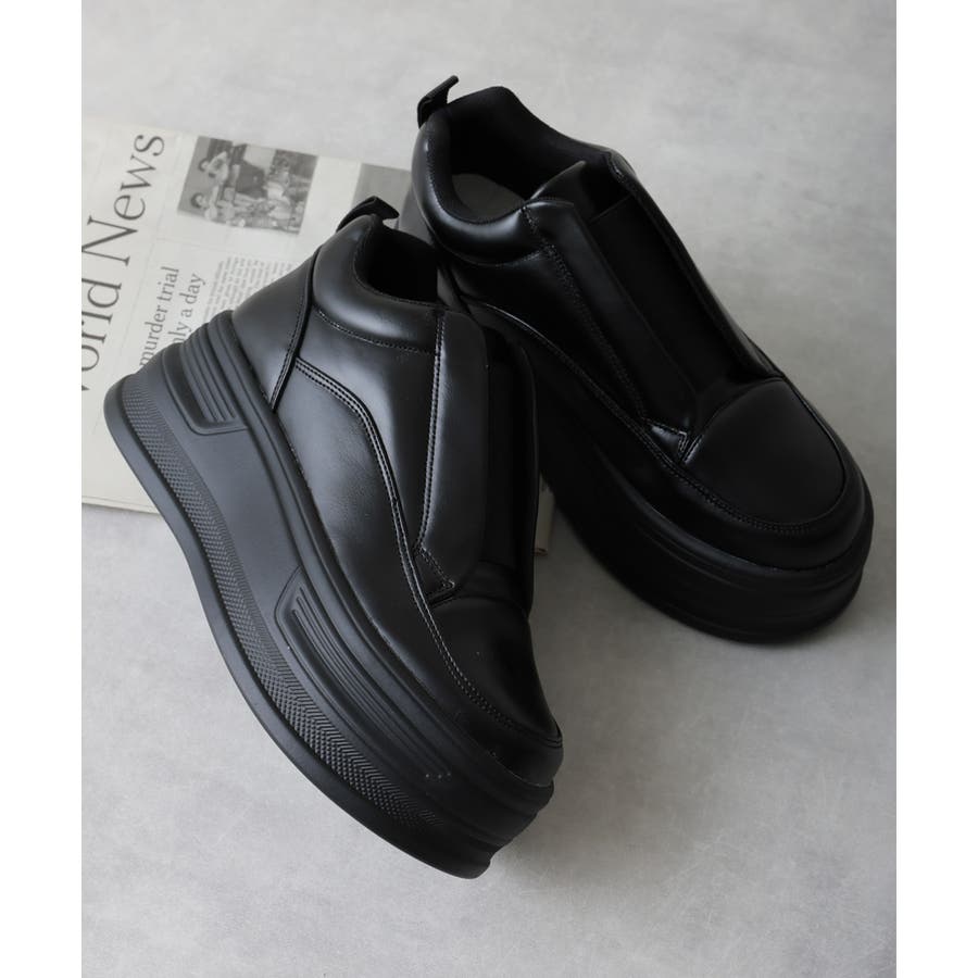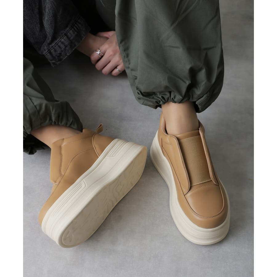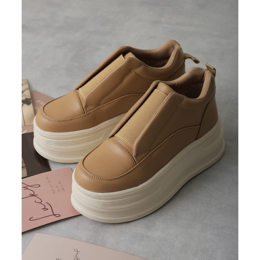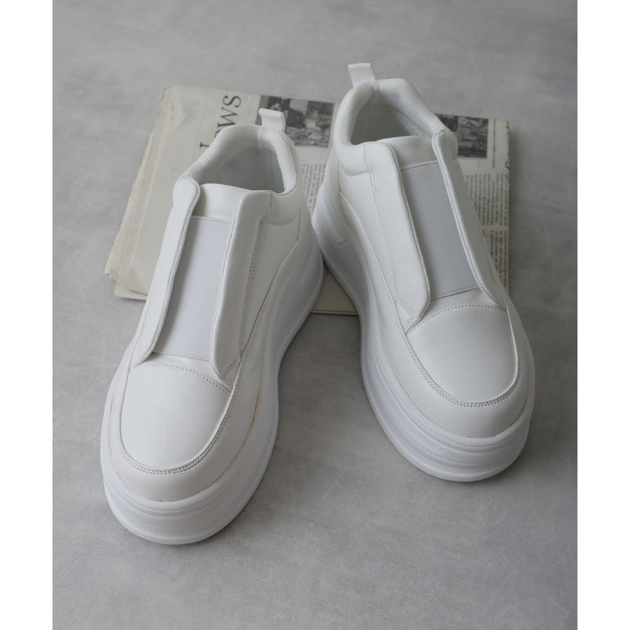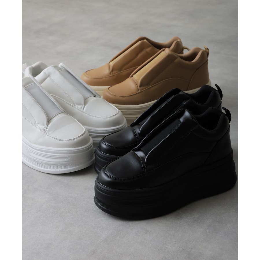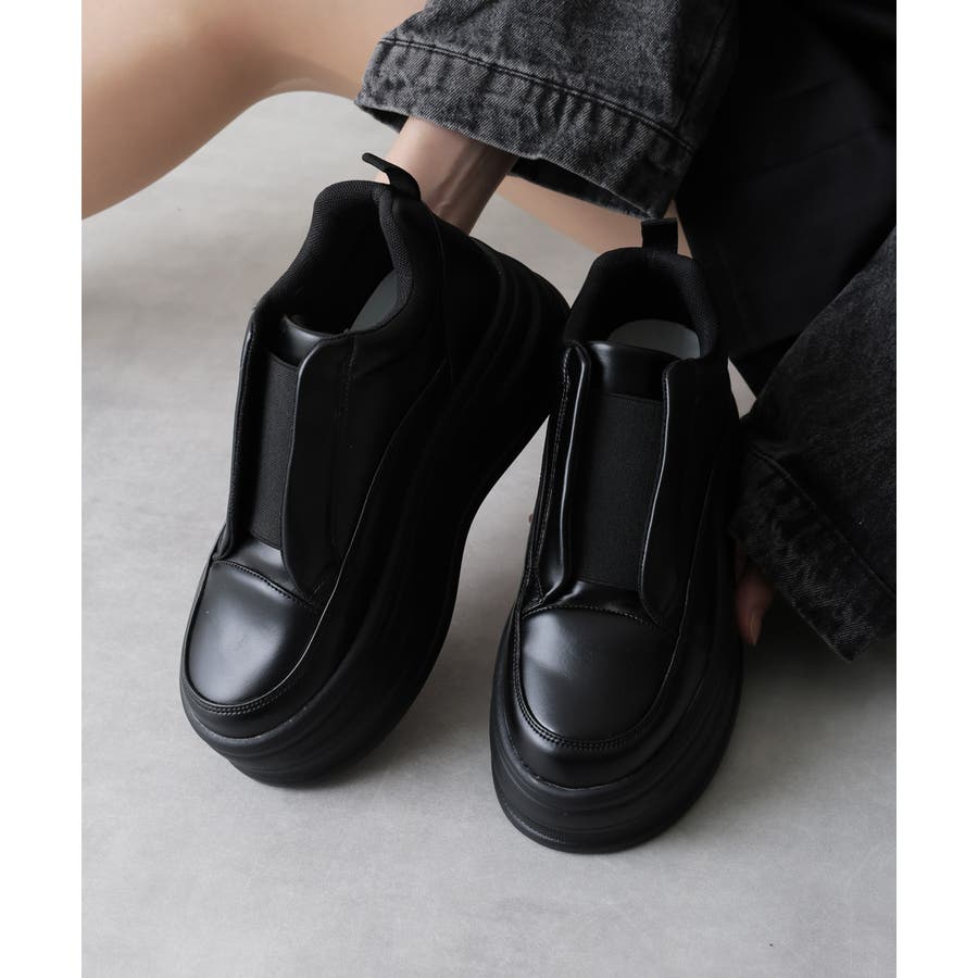 【25年春夏再販】厚底 ボリュームソール 甲ゴム スリッポンスニーカー