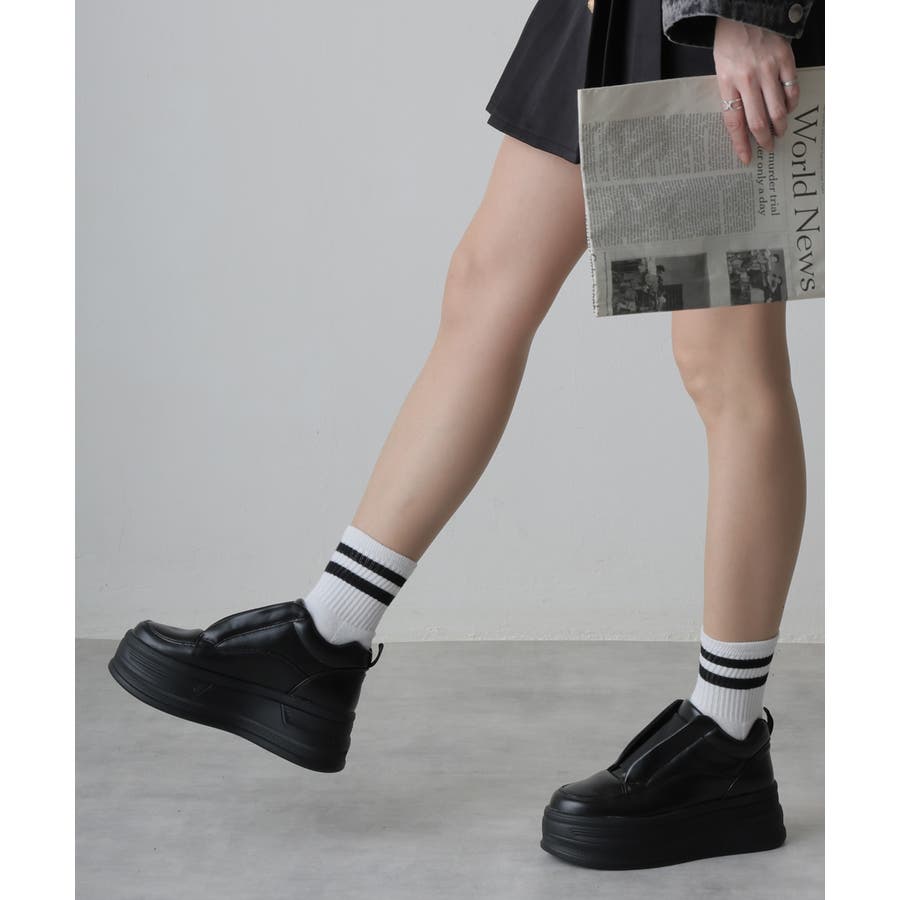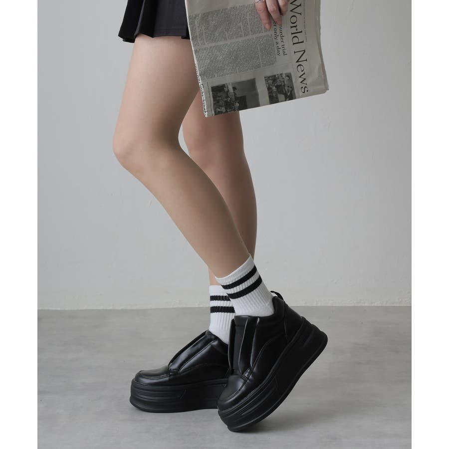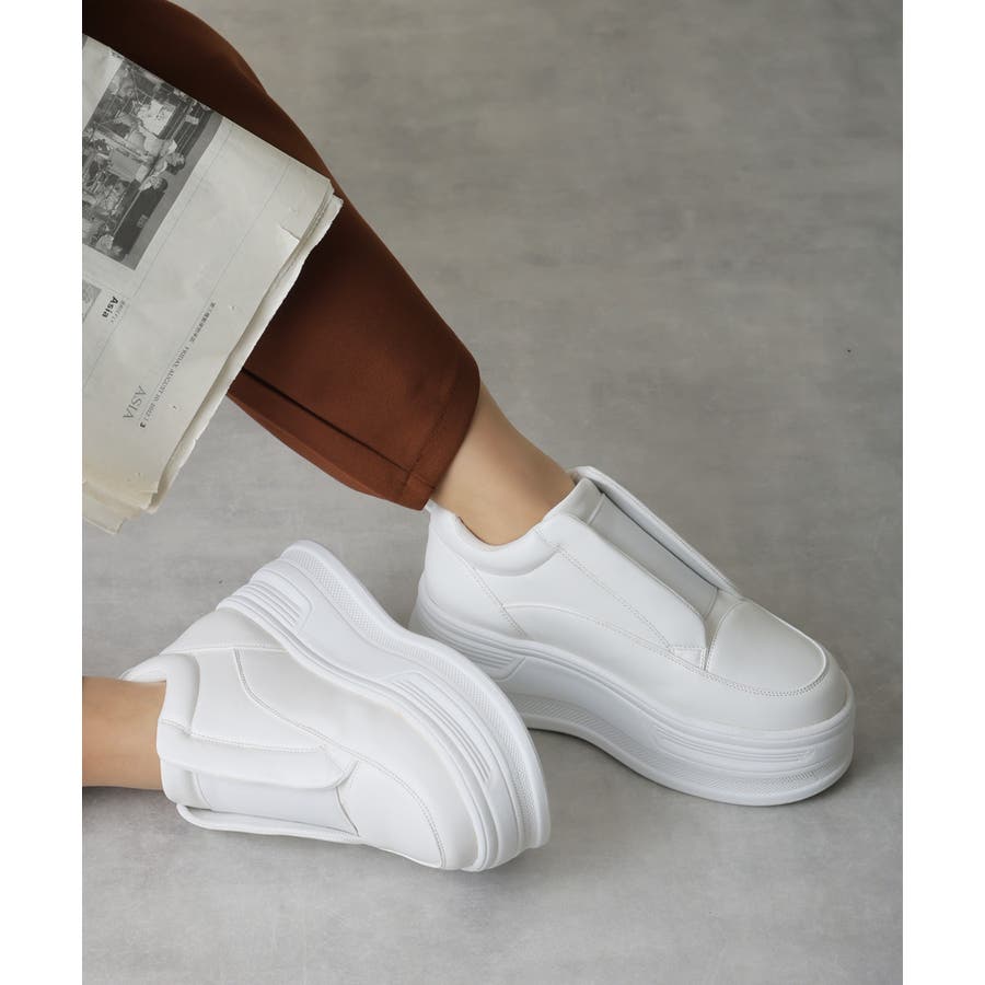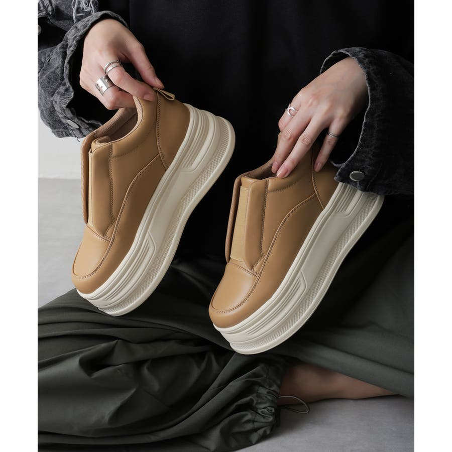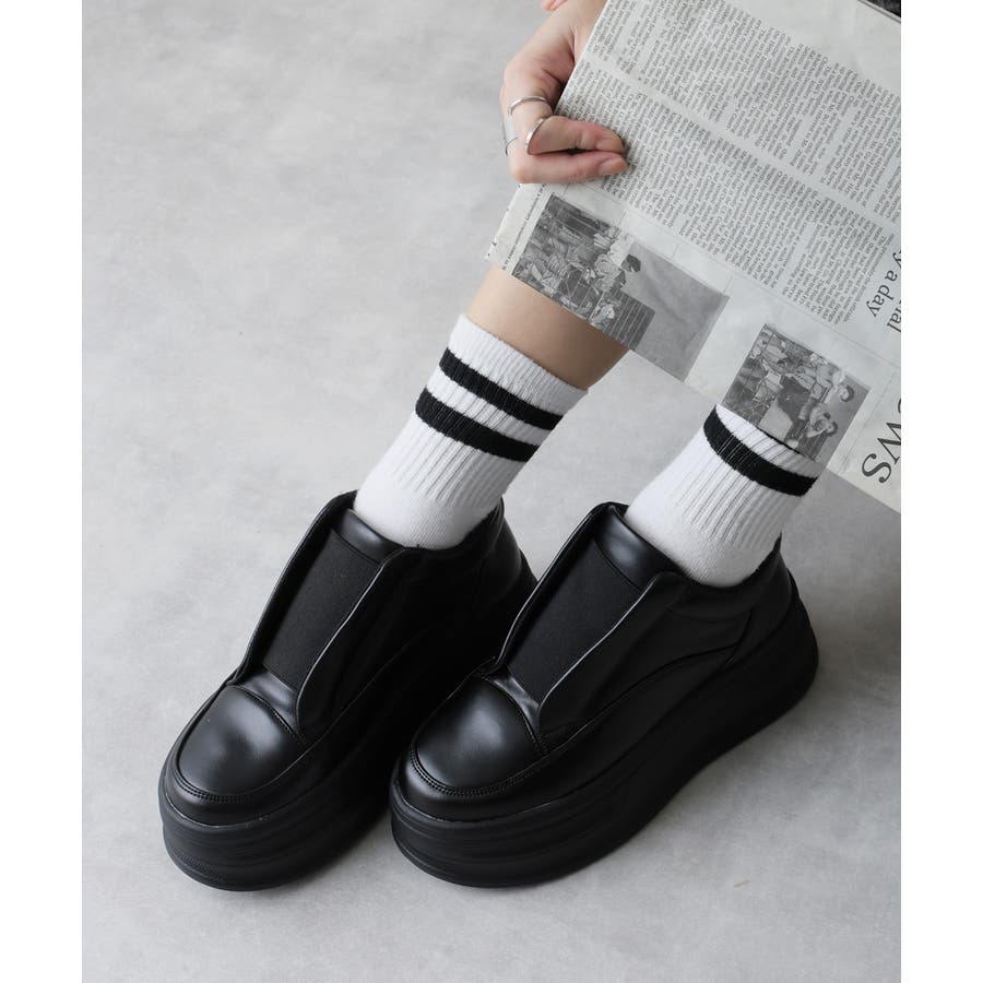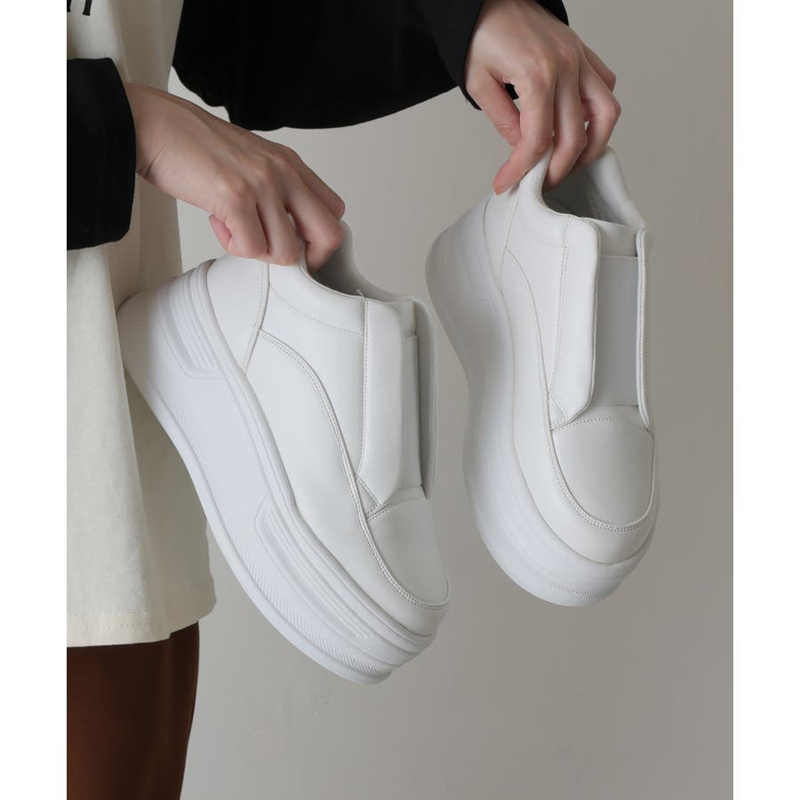 【25年春夏再販】厚底 ボリュームソール 甲ゴム スリッポンスニーカー
