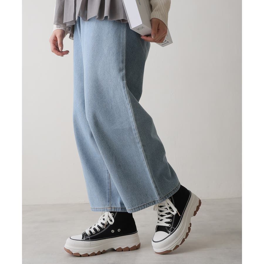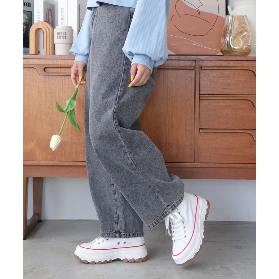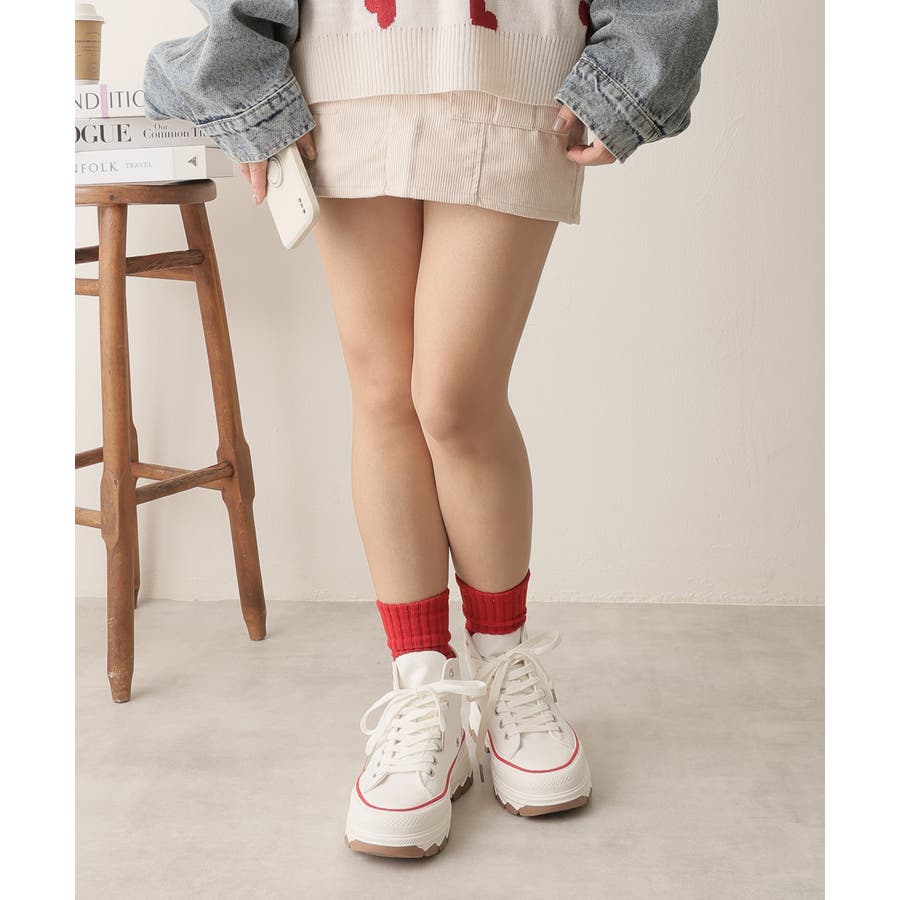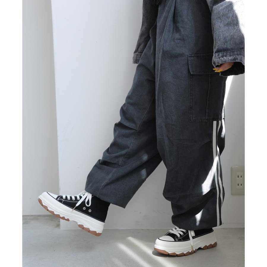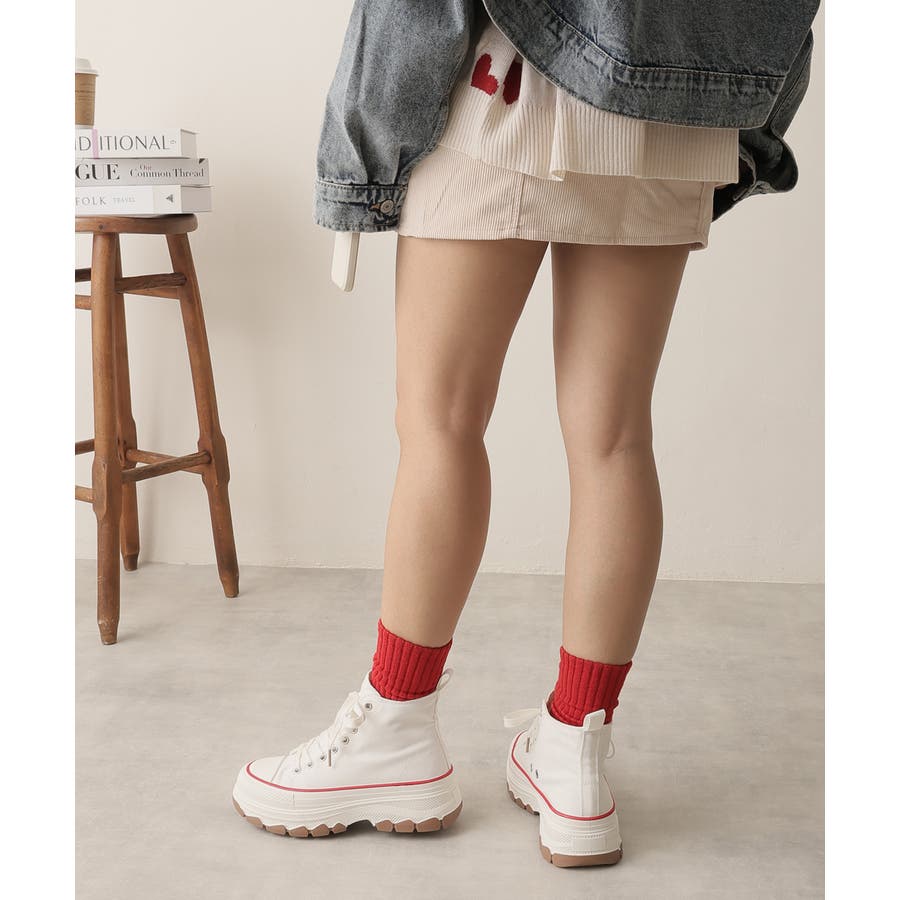 ハイカットなので、ミニ丈のアイテムとの相性も抜群♪デニムに合わせれば王道スポーティースタイル!