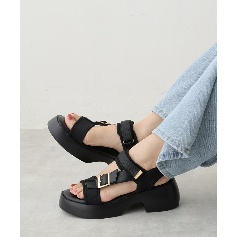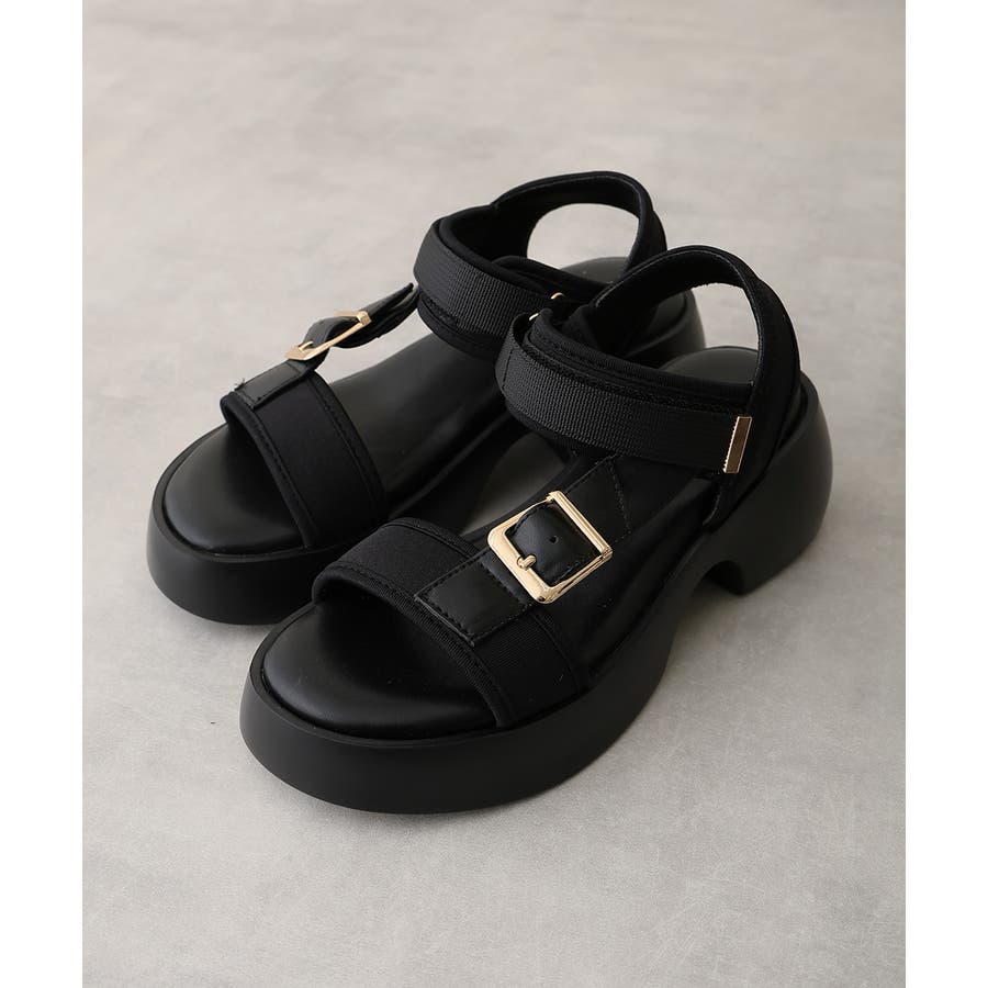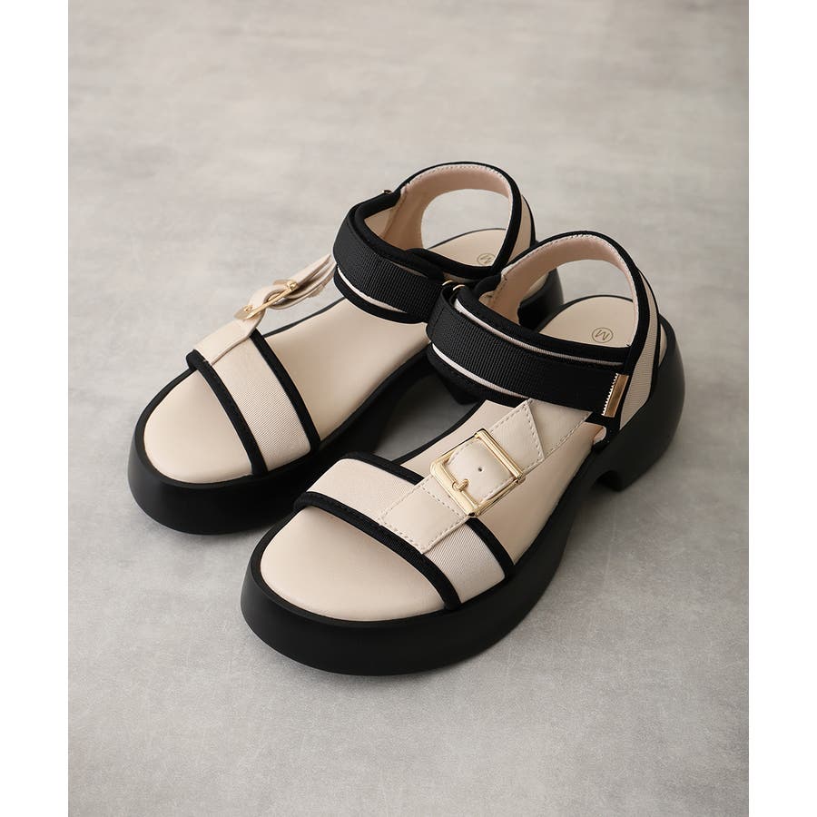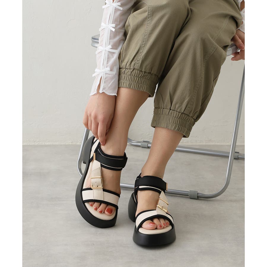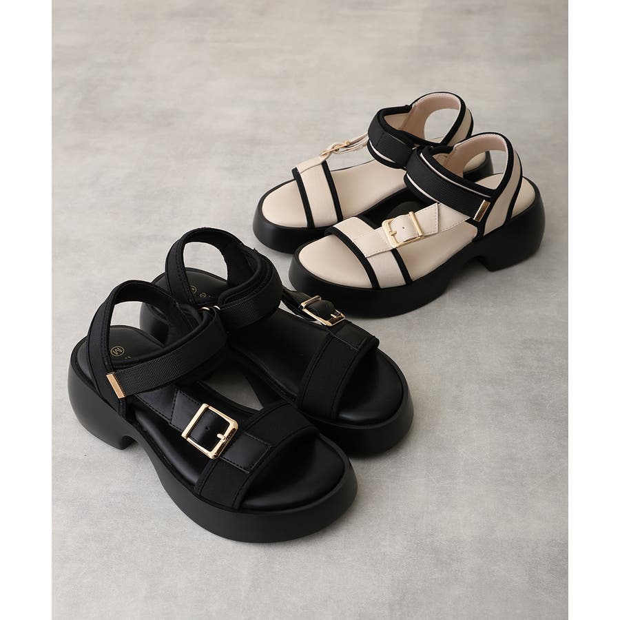 【25年春夏再販】厚底 変形ソール 素材MIX ベルクロサンダル