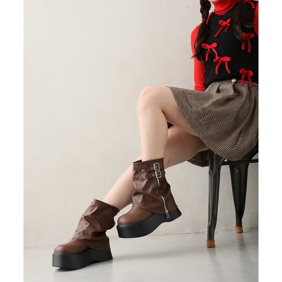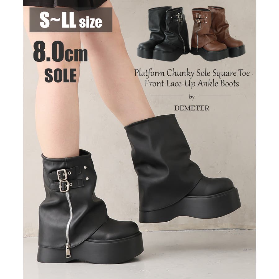 レディース/DMTR/DEMETER/デメテル/シューズ/靴/パンプス/スニーカー/ダッドスニーカー/ボリュームスニーカー/サンダル/ローファー/マニッシュ/ブーツ/ショートブーツ/ロングブーツ/ヒール/チャンキーヒール/太ヒール/厚底/厚底ソール/ボリュームソール/プラットフォーム/バルキー/美脚/脚長/人気/プチプラ/韓国/韓国ファッション/おすすめ/カジュアル/キレイめ/おしゃれ/オシャレ/お洒落/秋/冬/秋冬/秋物/冬物/春/夏/春夏/春物/夏物/新作/AW/SS/セクシー/大人/ストリート/シンプル/ベルト/ダブルベルト/バックル/バックルベルト/調節可能/カバーブーツ/カバー/ジッパーデザイン/ルーズ/サイドジッパー/厚底ブーツ/モード感/デイリー/トレンド/定番/安定感/歩きやすい/履きやすい/S/M/L/LL/黒/BLACK/ブラック/茶色/ブラウン/BROWN/スムース
