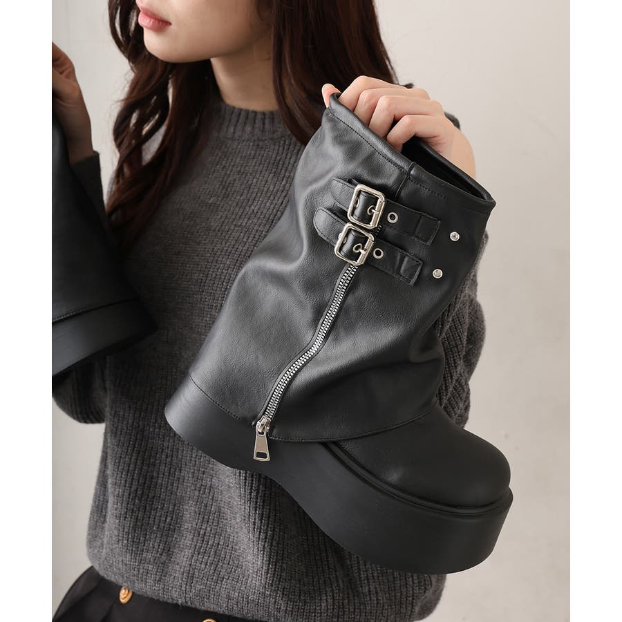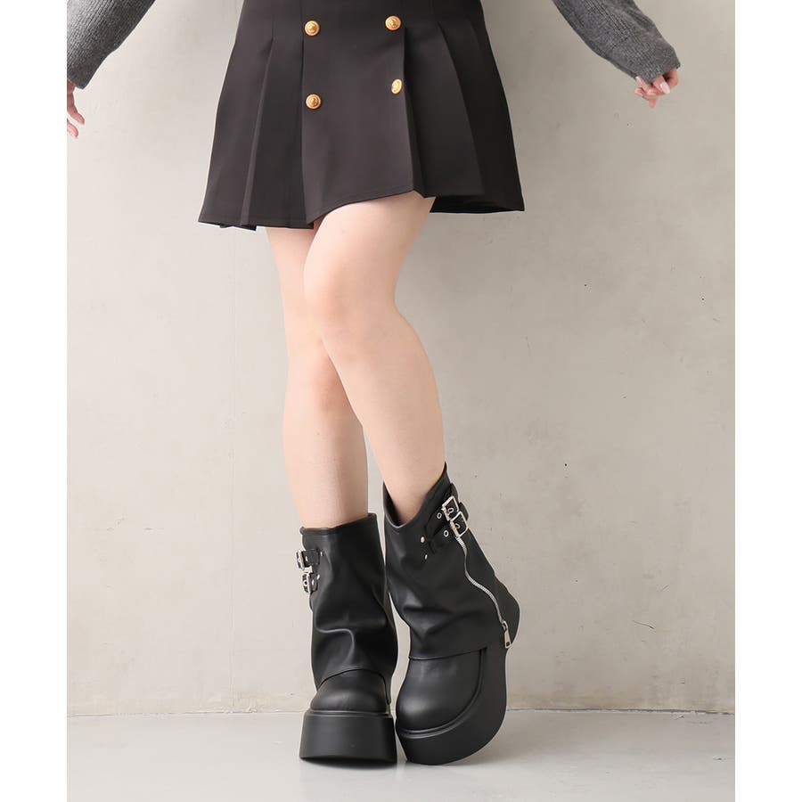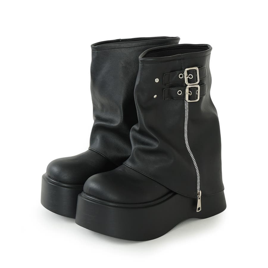 【25年秋冬新作】厚底 ボリュームソール ダブルベルト カバーブーツ