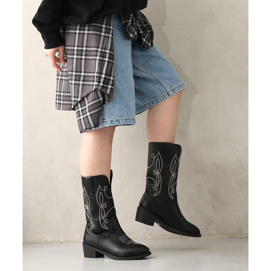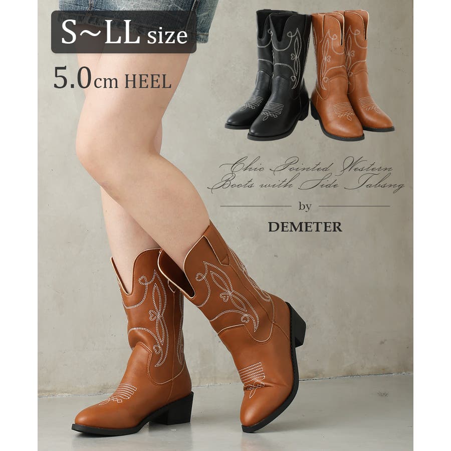 レディース/DMTR/DEMETER/デメテル/シューズ/靴/パンプス/スニーカー/ダッドスニーカー/ボリュームスニーカー/サンダル/ローファー/マニッシュ/ブーツ/ショートブーツ/ロングブーツ/ヒール/チャンキーヒール/太ヒール/厚底/厚底ソール/ボリュームソール/プラットフォーム/バルキー/美脚/脚長/人気/プチプラ/韓国/韓国ファッション/おすすめ/カジュアル/キレイめ/おしゃれ/オシャレ/お洒落/秋/冬/秋冬/秋物/冬物/春/夏/春夏/春物/夏物/新作/AW/SS/セクシー/大人/ストリート/シンプル/ミドル丈/ミドルブーツ/アメカジブーツ/アメカジ/ポインテッドトゥ/刺繍/ステッチ/ウエスタンブーツ/ウエスタン/デイリー/トレンド/安定感/歩きやすい/履きやすい/S/M/L/LL/黒/BLACK/ブラック/茶色/ブラウン/BROWN