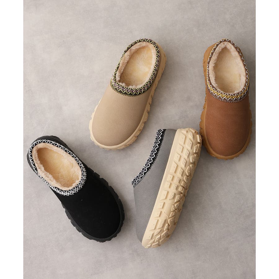 存在感のある凸凹厚底ソールが目を惹くムートンシューズ!