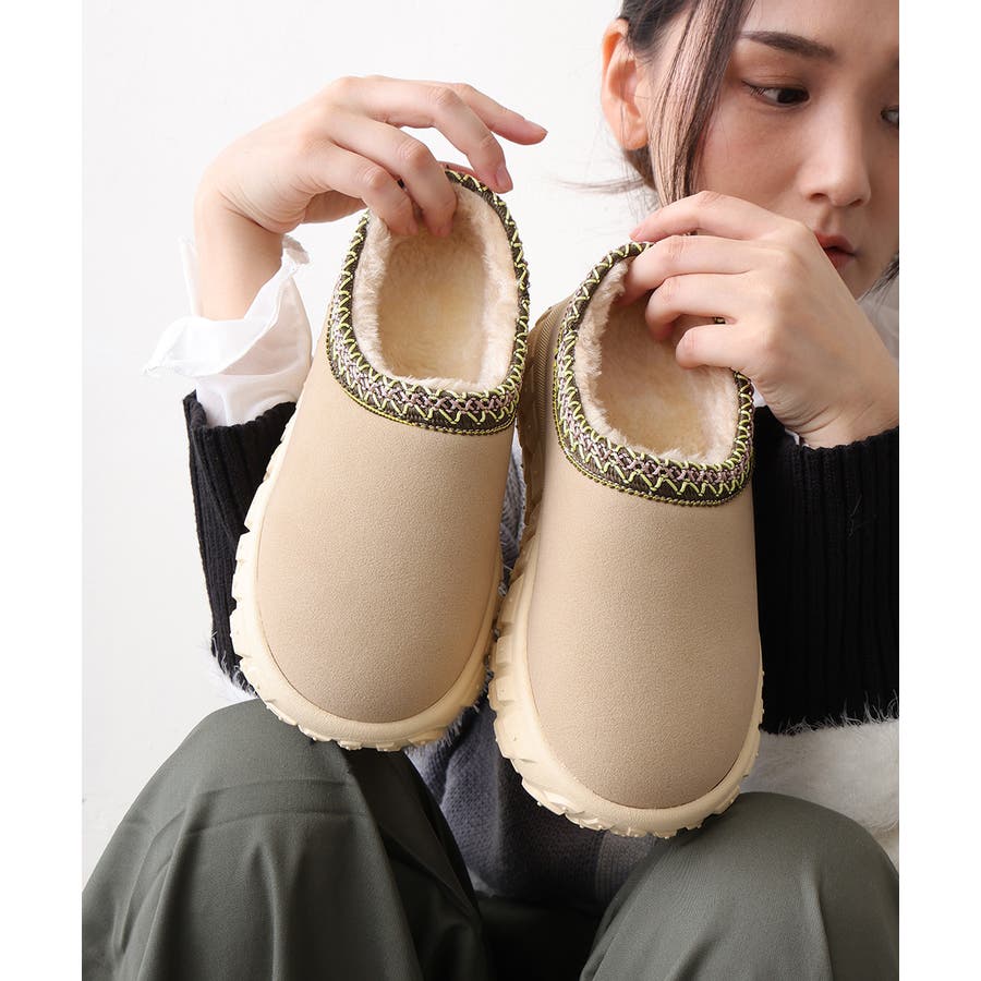 内側はふかふかのファー素材で足元をやさしく包み込み、あたたかく快適な履き心地を実現。