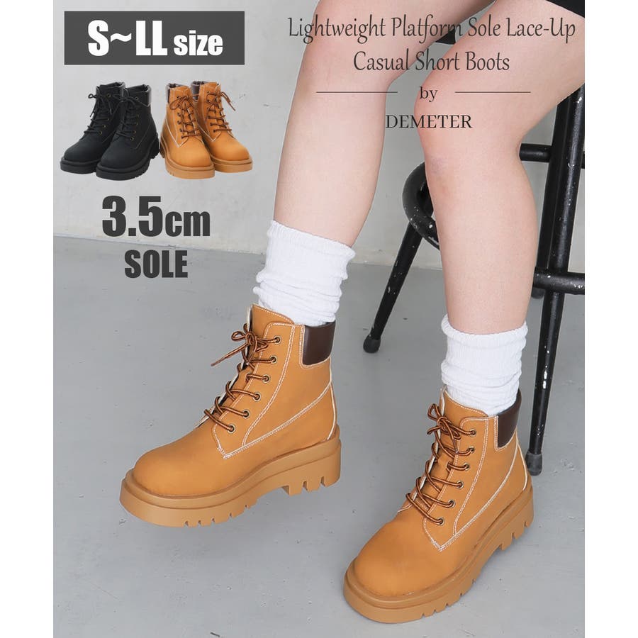 レディース/DMTR/DEMETER/デメテル/シューズ/靴/パンプス/スニーカー/ダッドスニーカー/ボリュームスニーカー/サンダル/ローファー/マニッシュ/ブーツ/ショートブーツ/ロングブーツ/ヒール/チャンキーヒール/太ヒール/厚底/厚底ソール/ボリュームソール/プラットフォーム/バルキー/美脚/脚長/人気/プチプラ/韓国/韓国ファッション/おすすめ/カジュアル/キレイめ/おしゃれ/オシャレ/お洒落/秋/冬/秋冬/秋物/冬物/春/夏/春夏/春物/夏物/新作/AW/SS/セクシー/大人/ストリート/シンプル/6ホール/6ホールブーツ/レースアップ/レースアップブーツ/厚底レースアップ/厚底ブーツ/厚底ショートブーツ/デザインソール/ショートブーツ/クール/モード/ストリート/スタイルアップ/オールシーズン/トレンド/デイリー/軽量/軽い/安定感/歩きやすい/履きやすい/S/M/L/LL/黒/BLACK/ブラック/キャメル/CAMEL/スムース