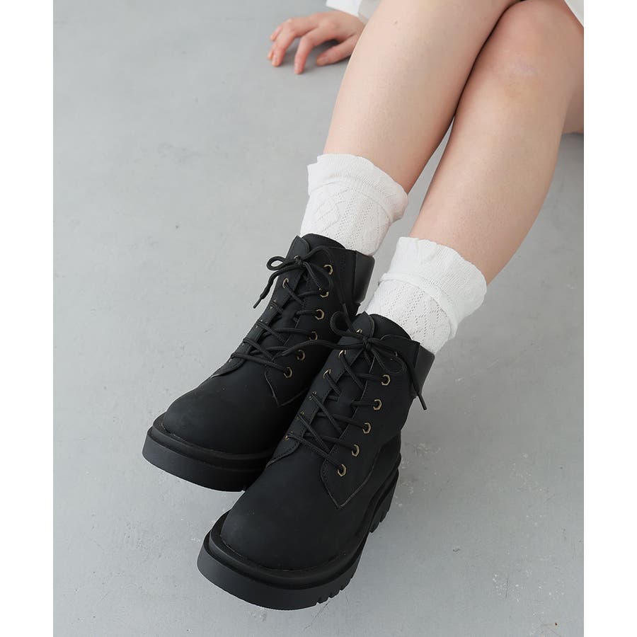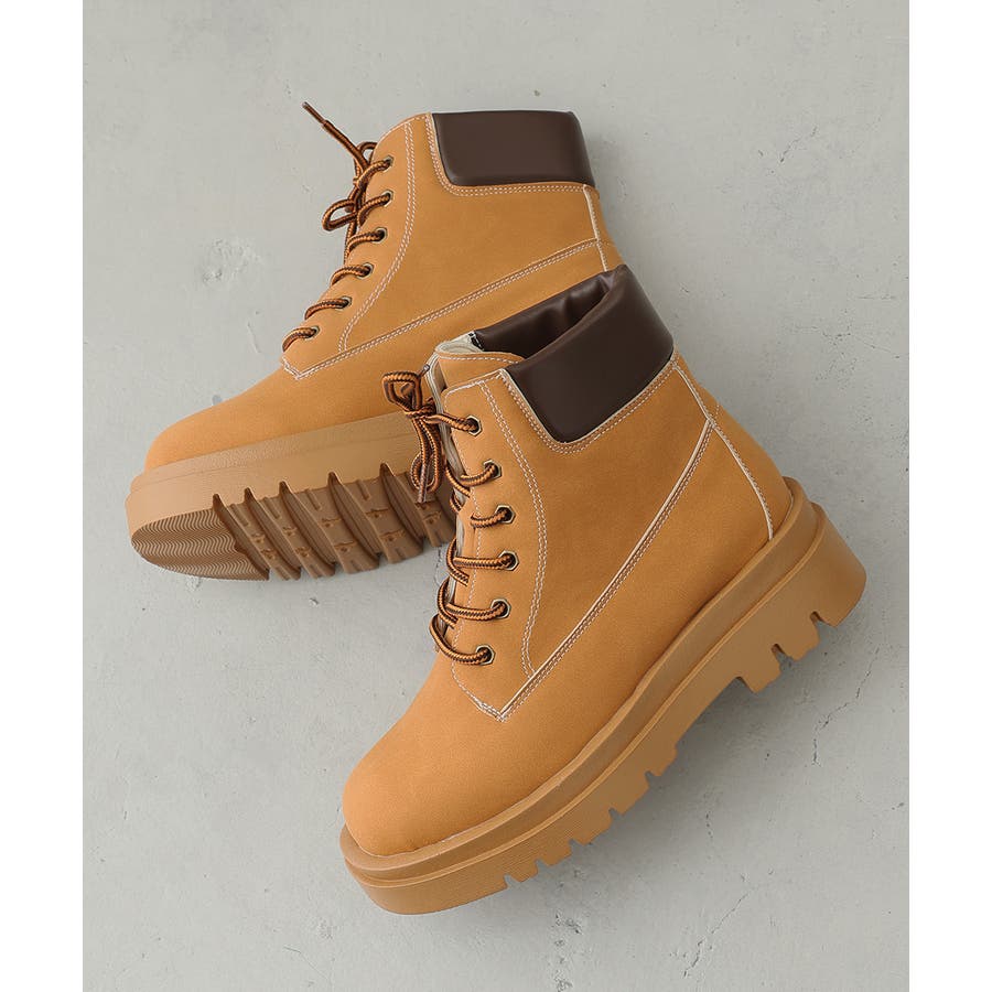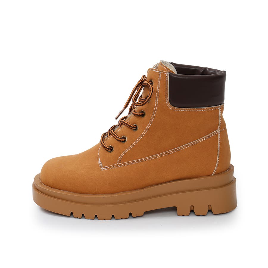 【26年春夏新作】軽量 厚底ソール レースアップ ショートブーツ