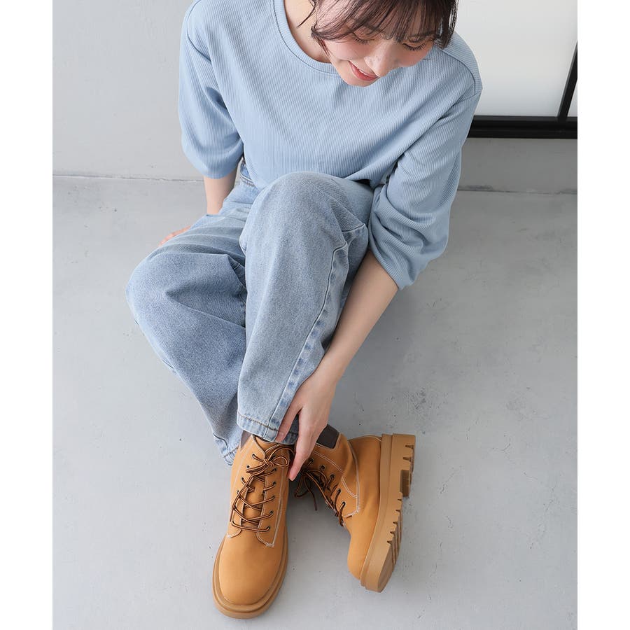6ホール仕様で足元がすっきりまとまり、パンツにもスカートにも合わせやすい♪
