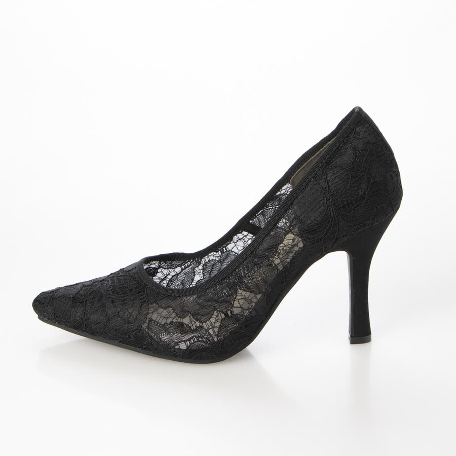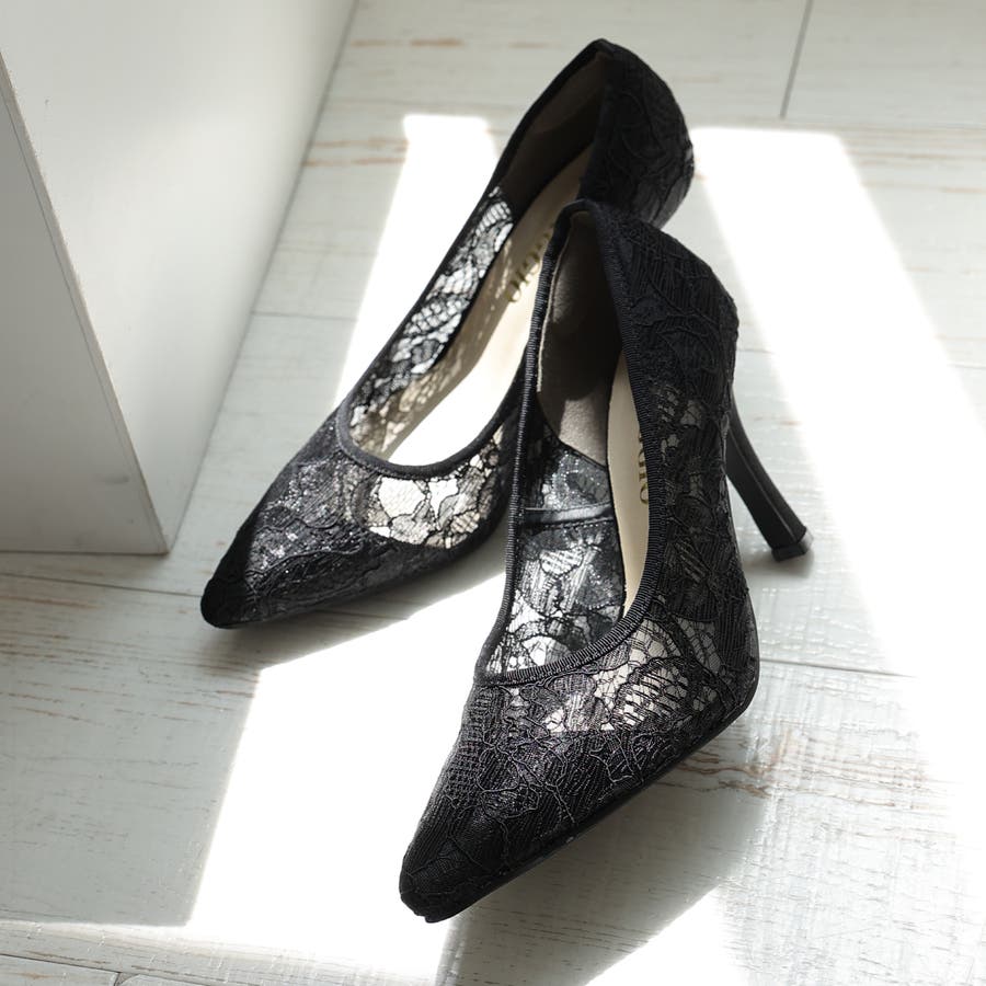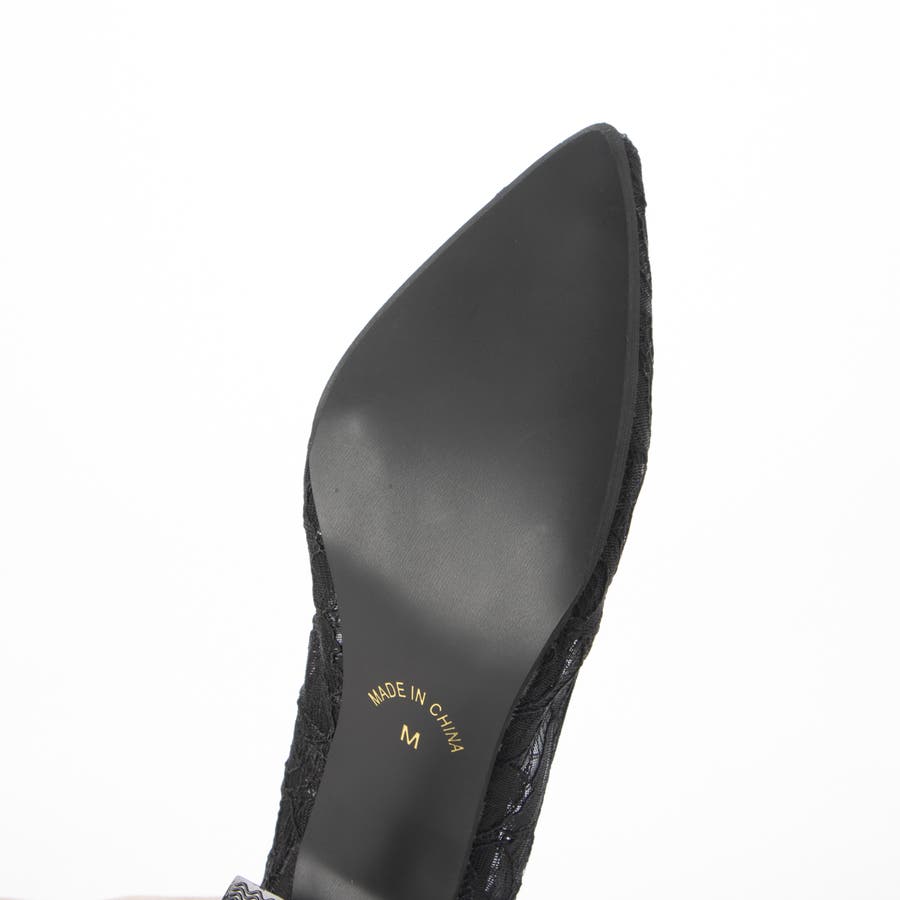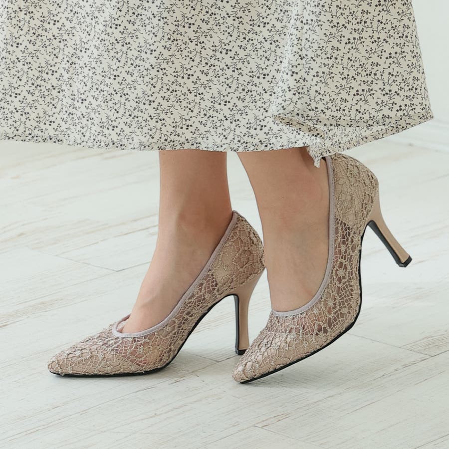 9.0cm☆ポインテッドトゥ チュールレース ピンヒール パンプス