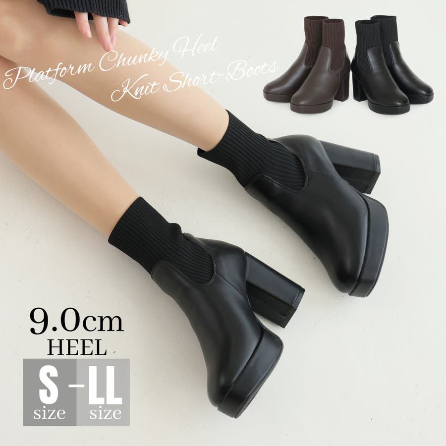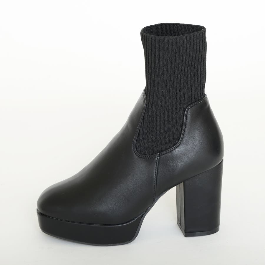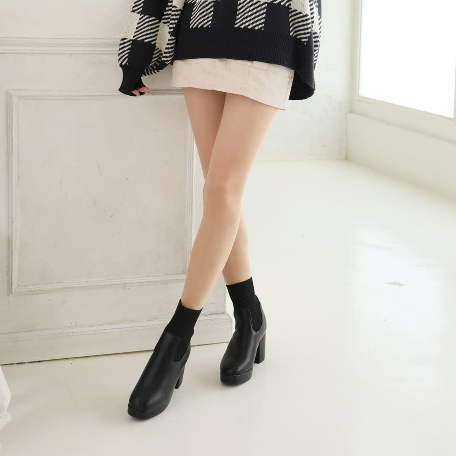 【厚底 プラットフォーム 太ヒール ニット ショートブーツ】