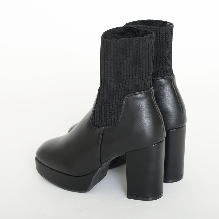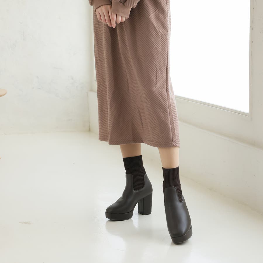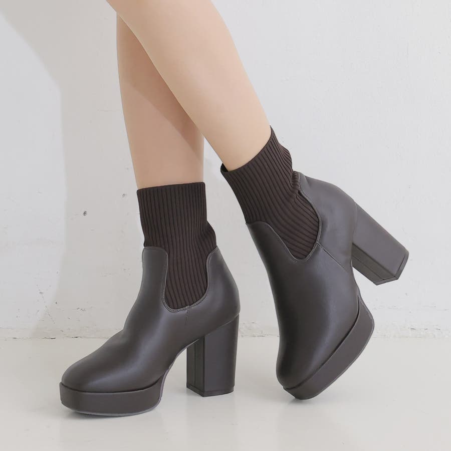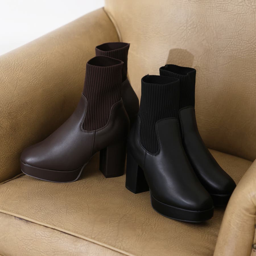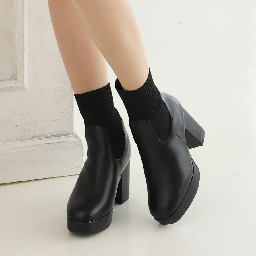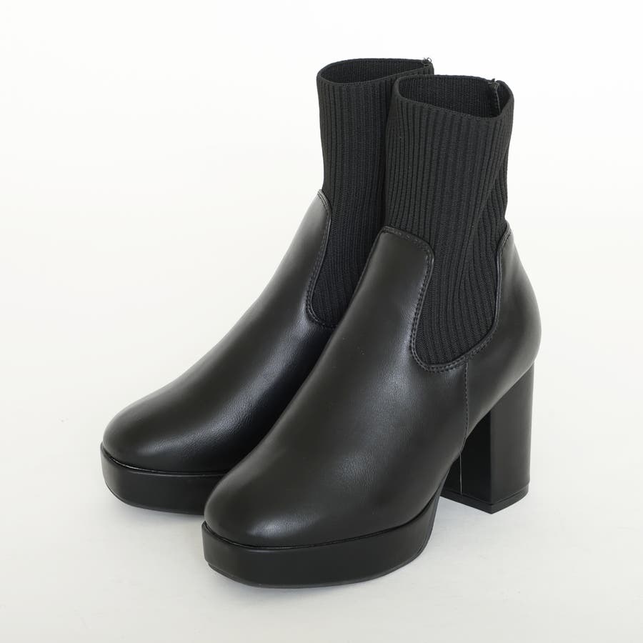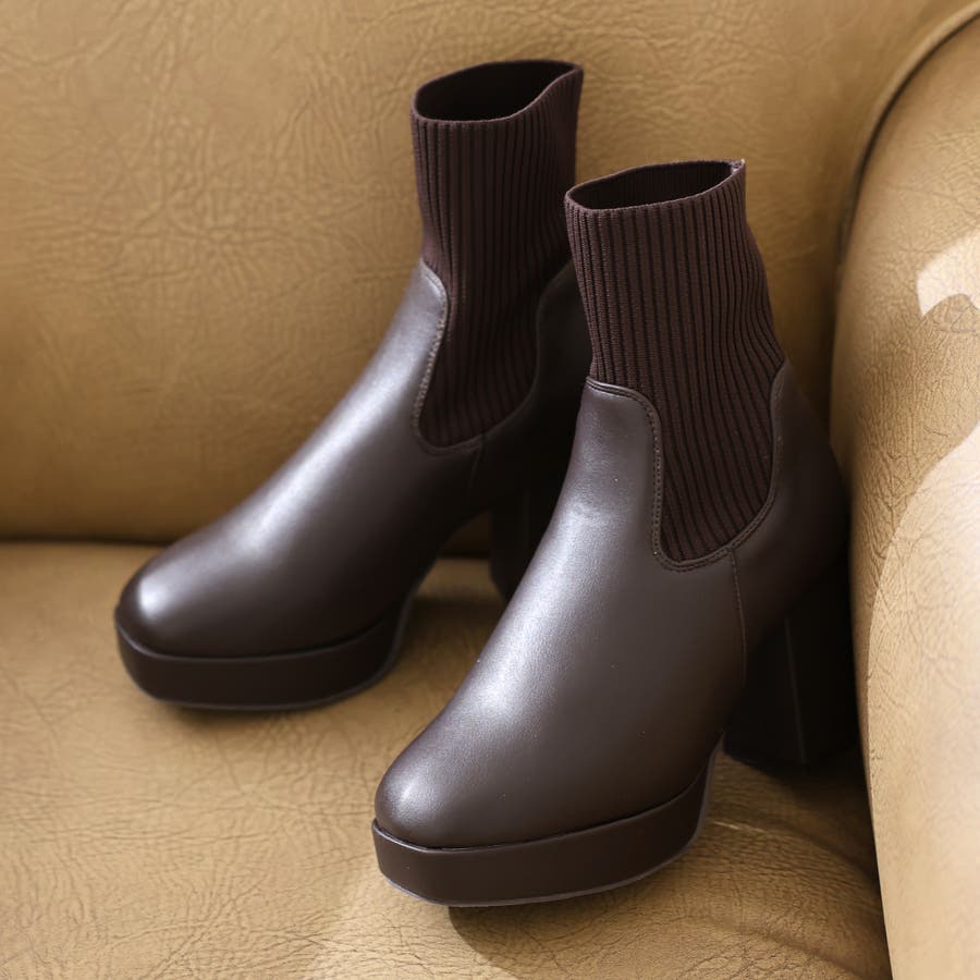 スムース素材にトレンドのリブニットをドッキングした足元も盛れる厚底ニットブーツ♪